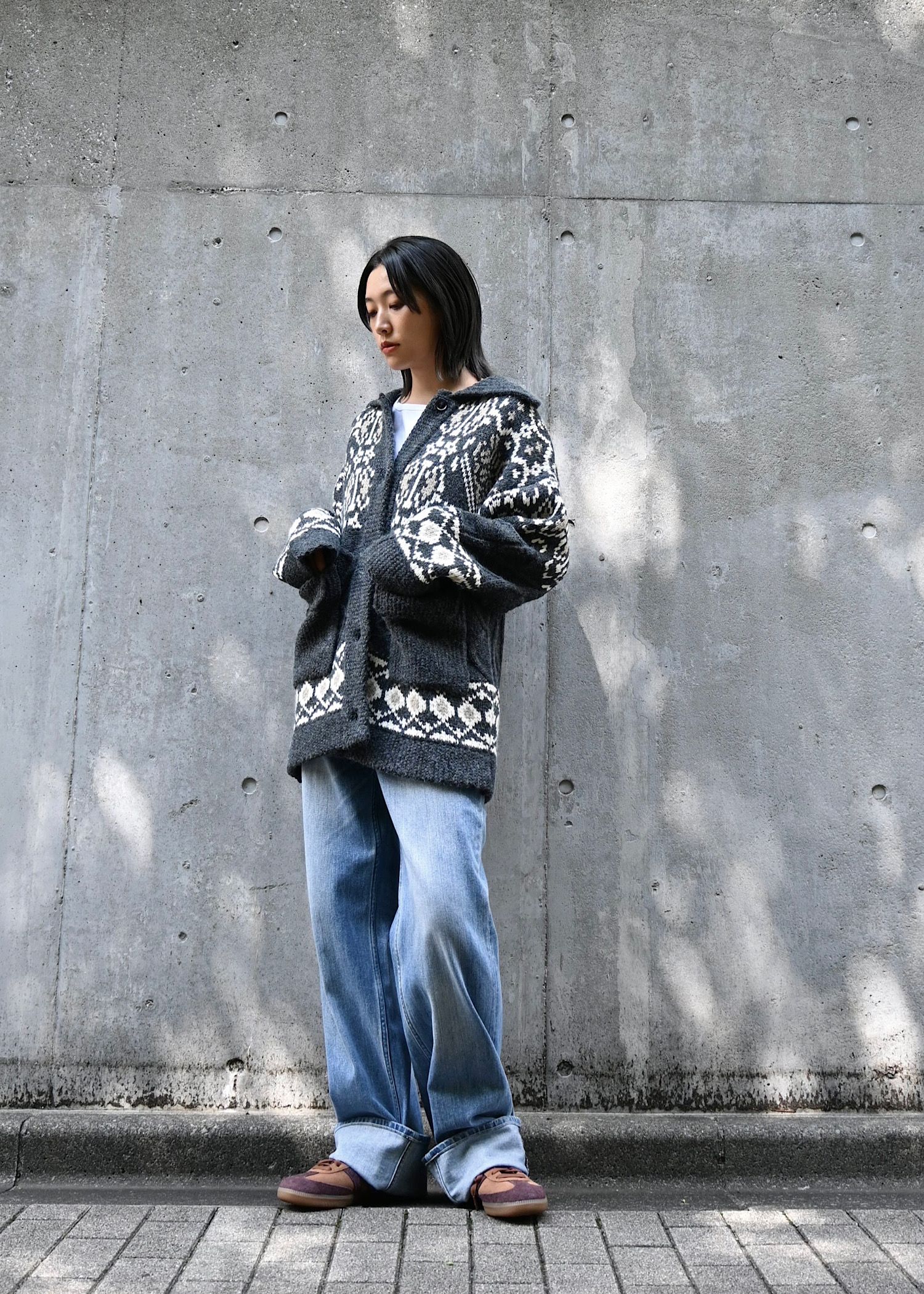 nordic pattern knit cowichan jacket