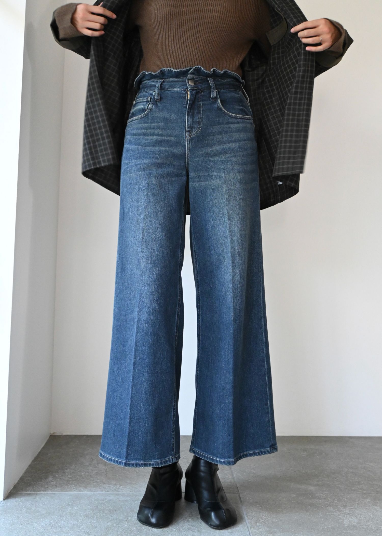 【Healthy DENIM × WILLFULLY】"Harmonia" waist frill wide denim PT