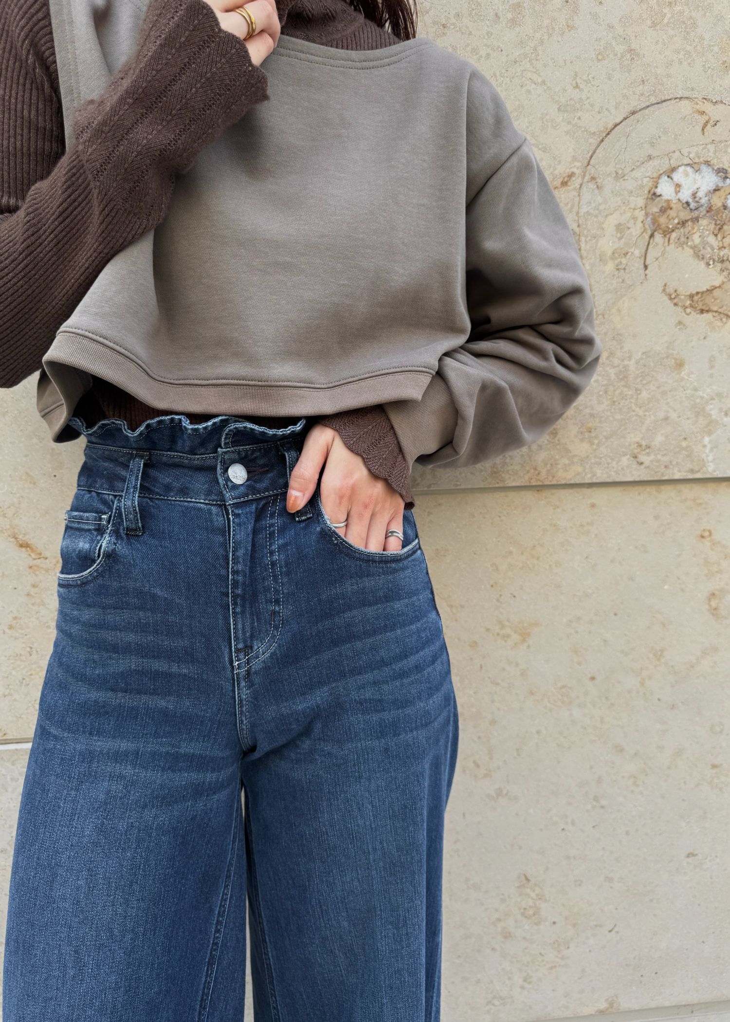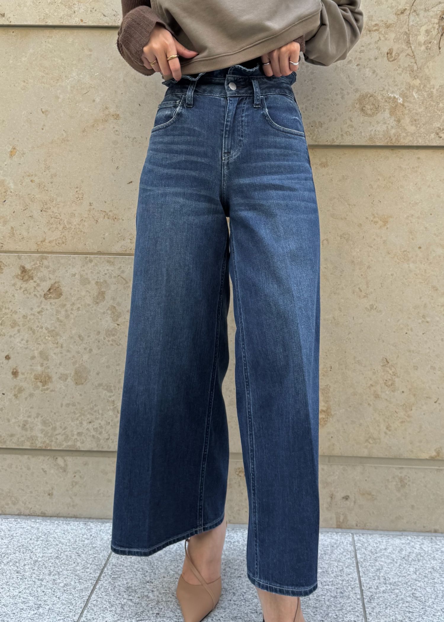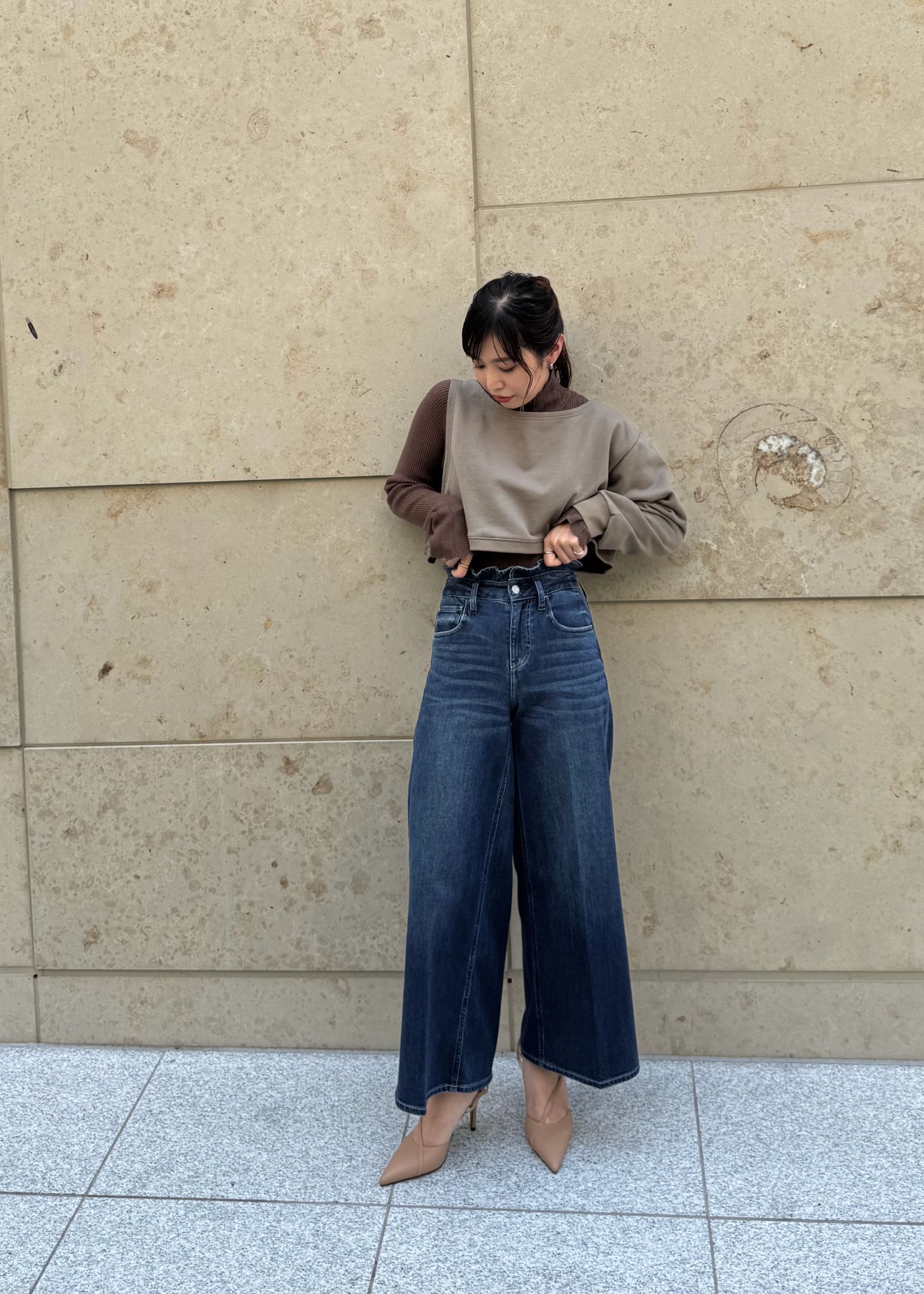 【Healthy DENIM × WILLFULLY】"Harmonia" waist frill wide denim PT