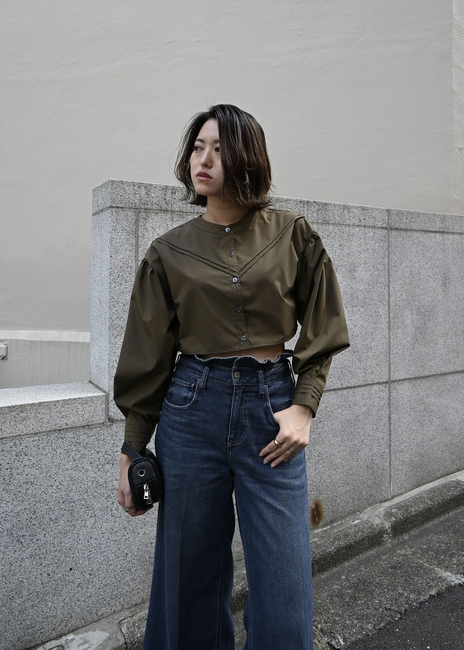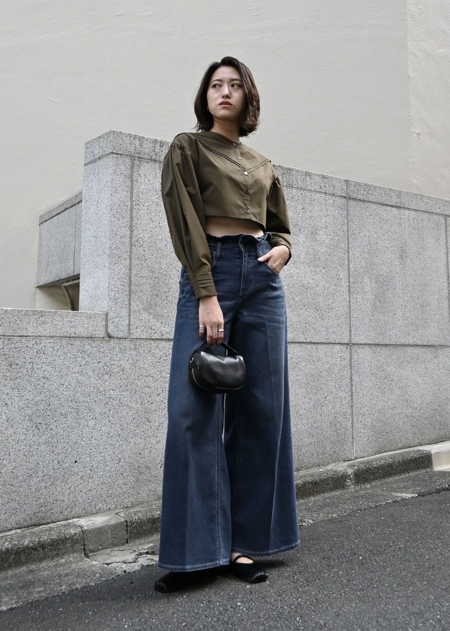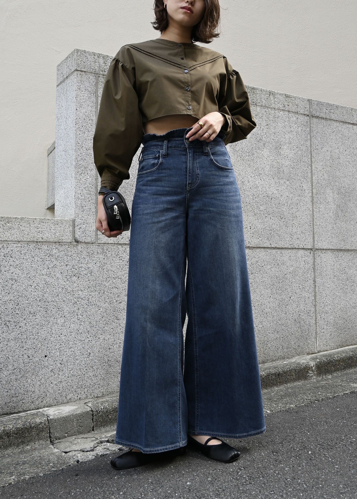 【Healthy DENIM × WILLFULLY】"Harmonia" waist frill wide denim PT