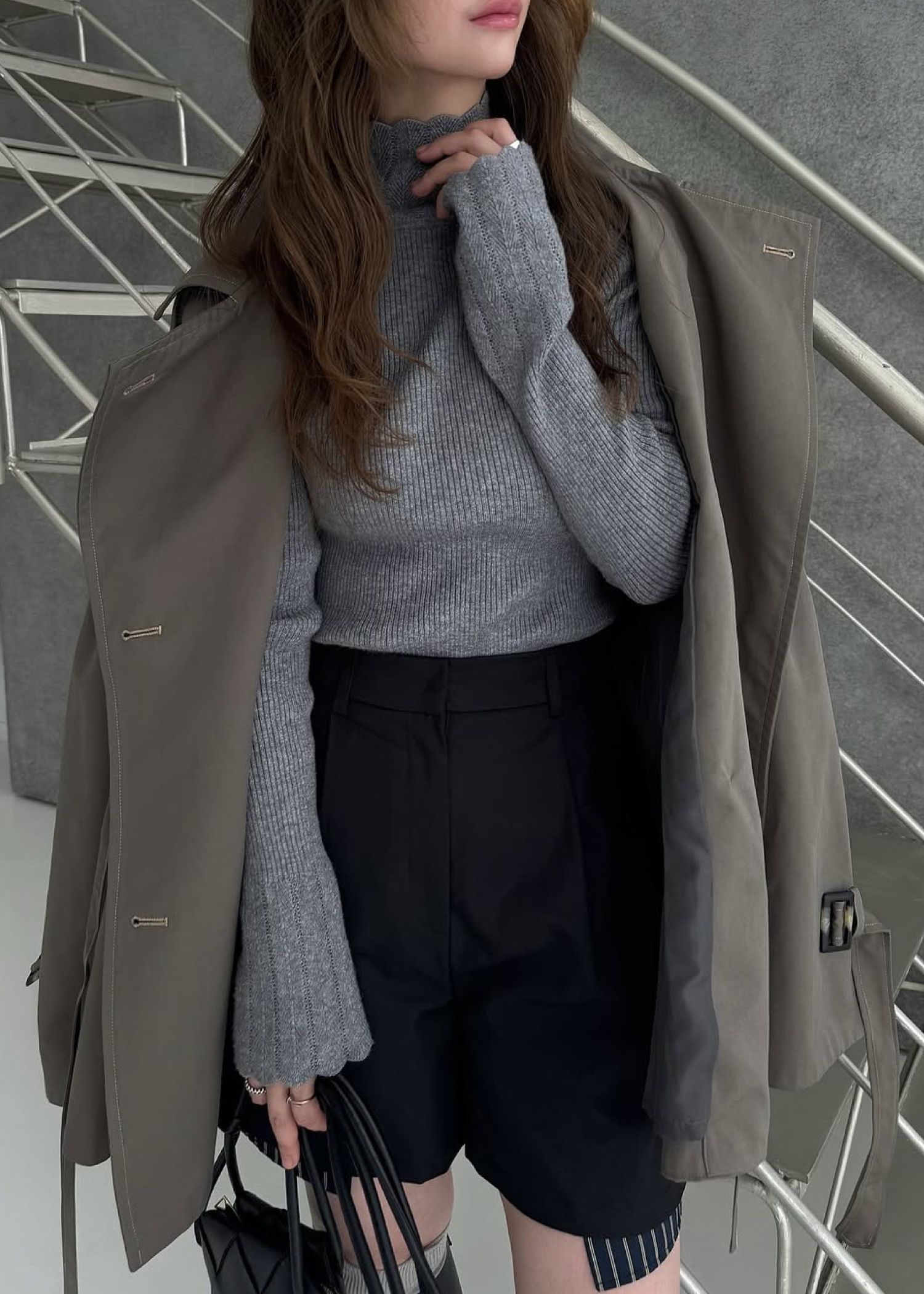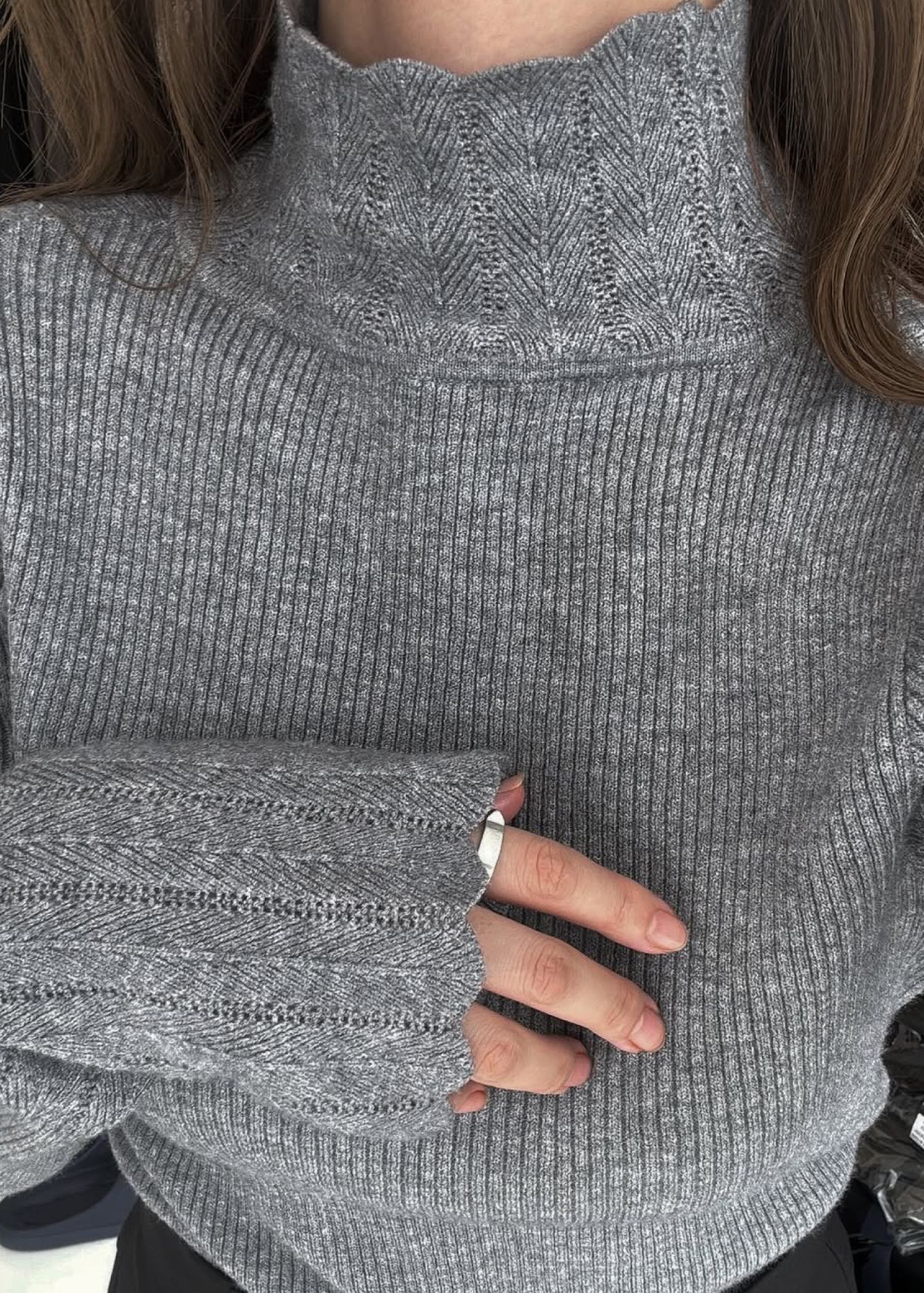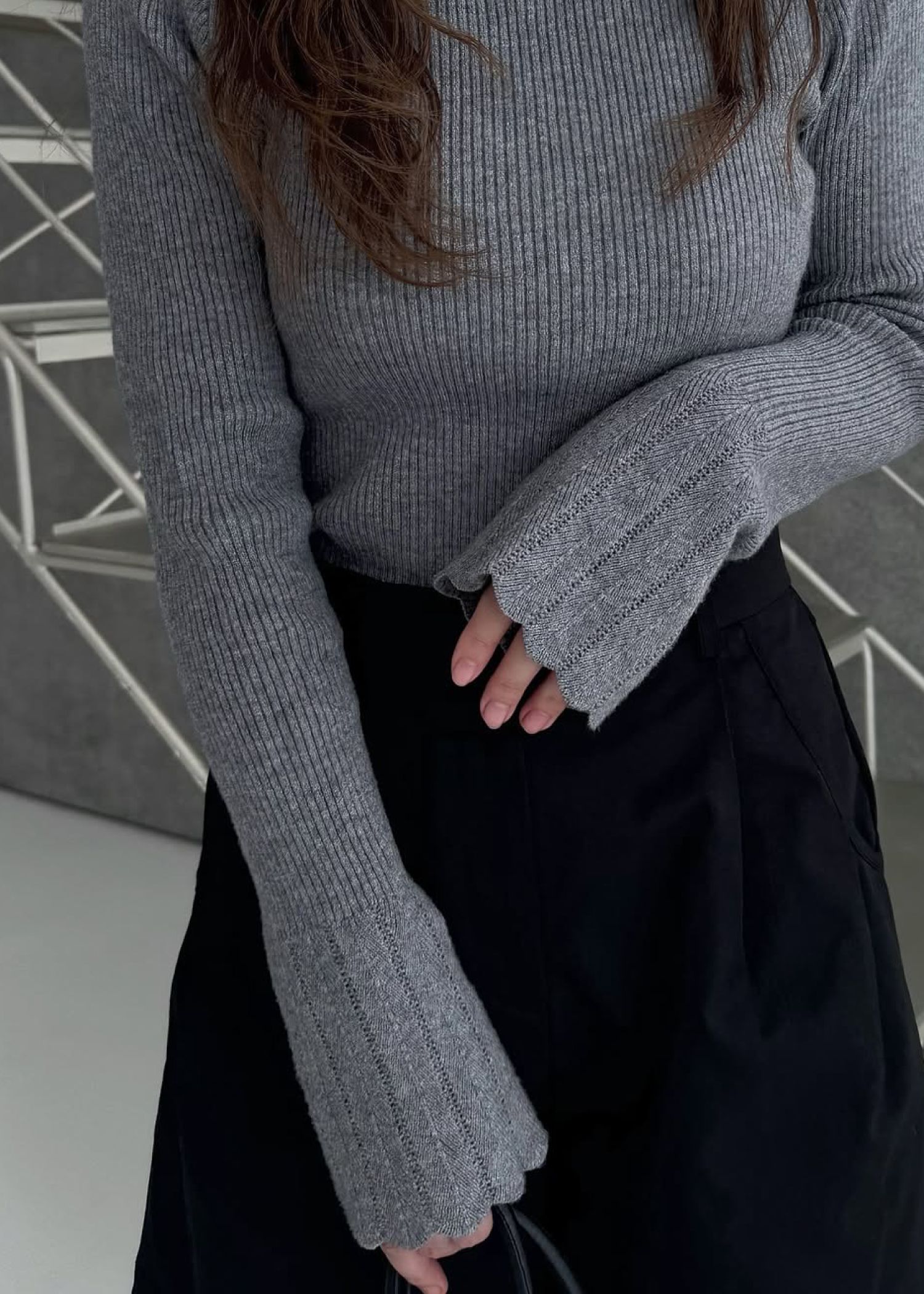 scallop high neck flare sleeve knit