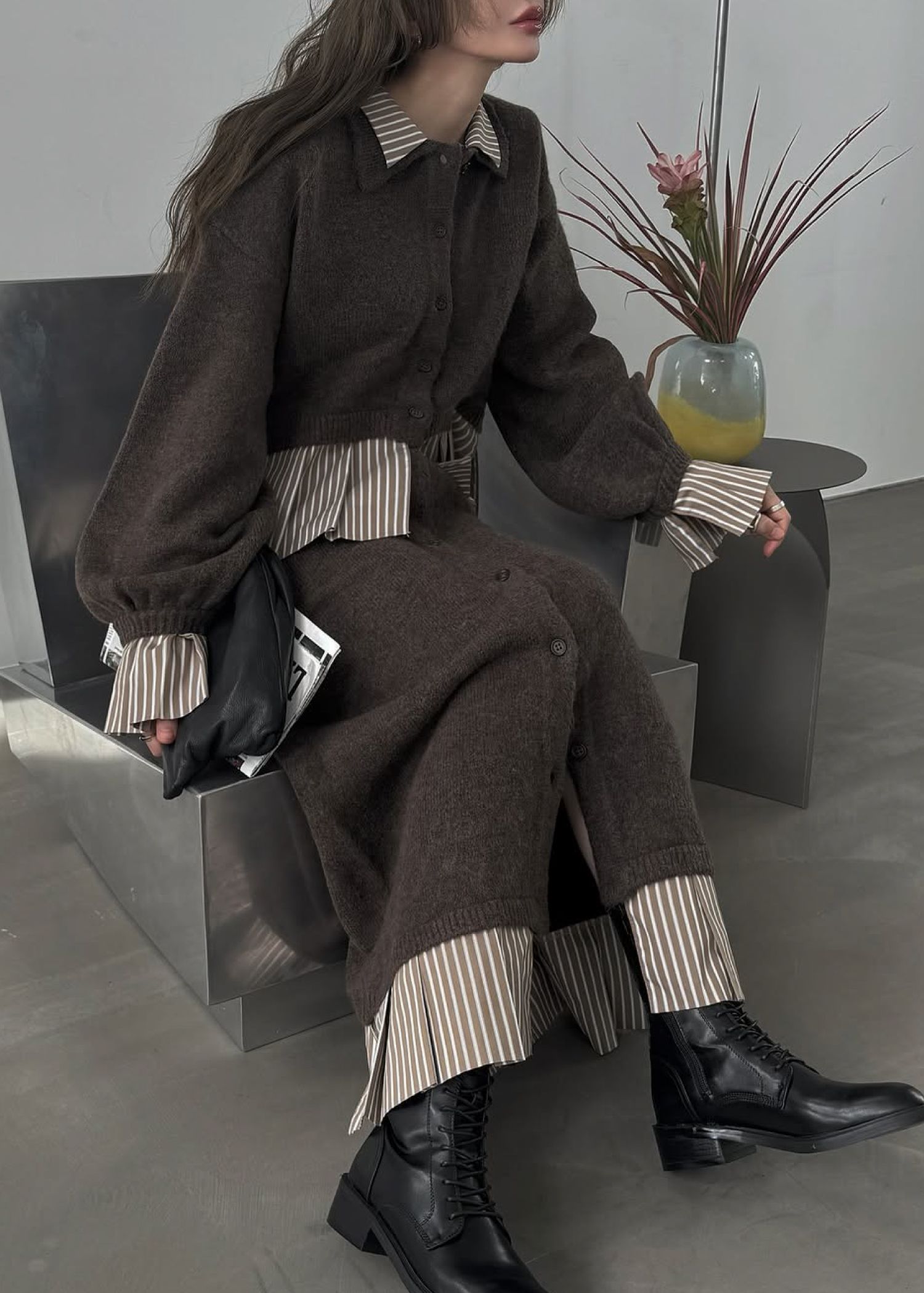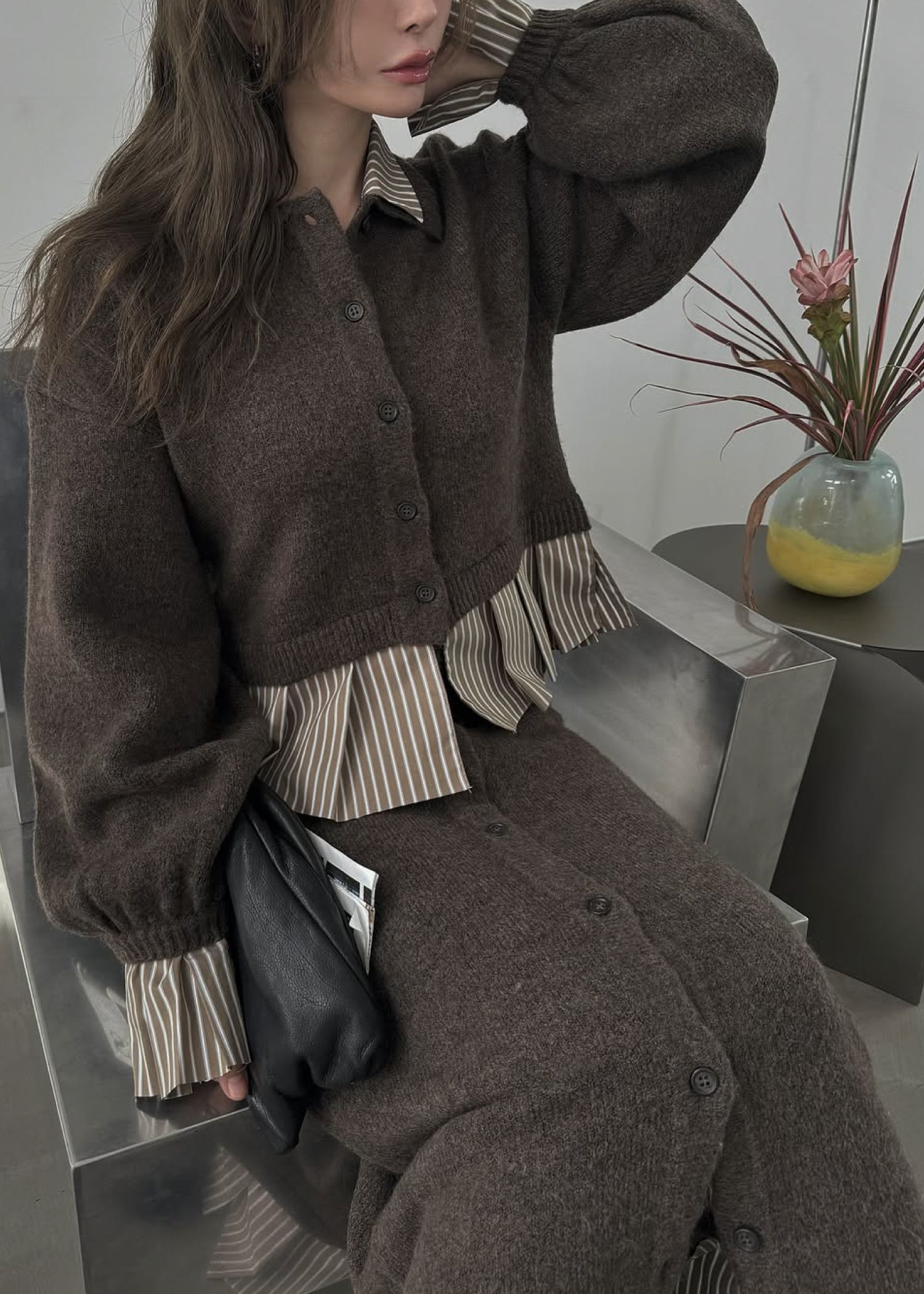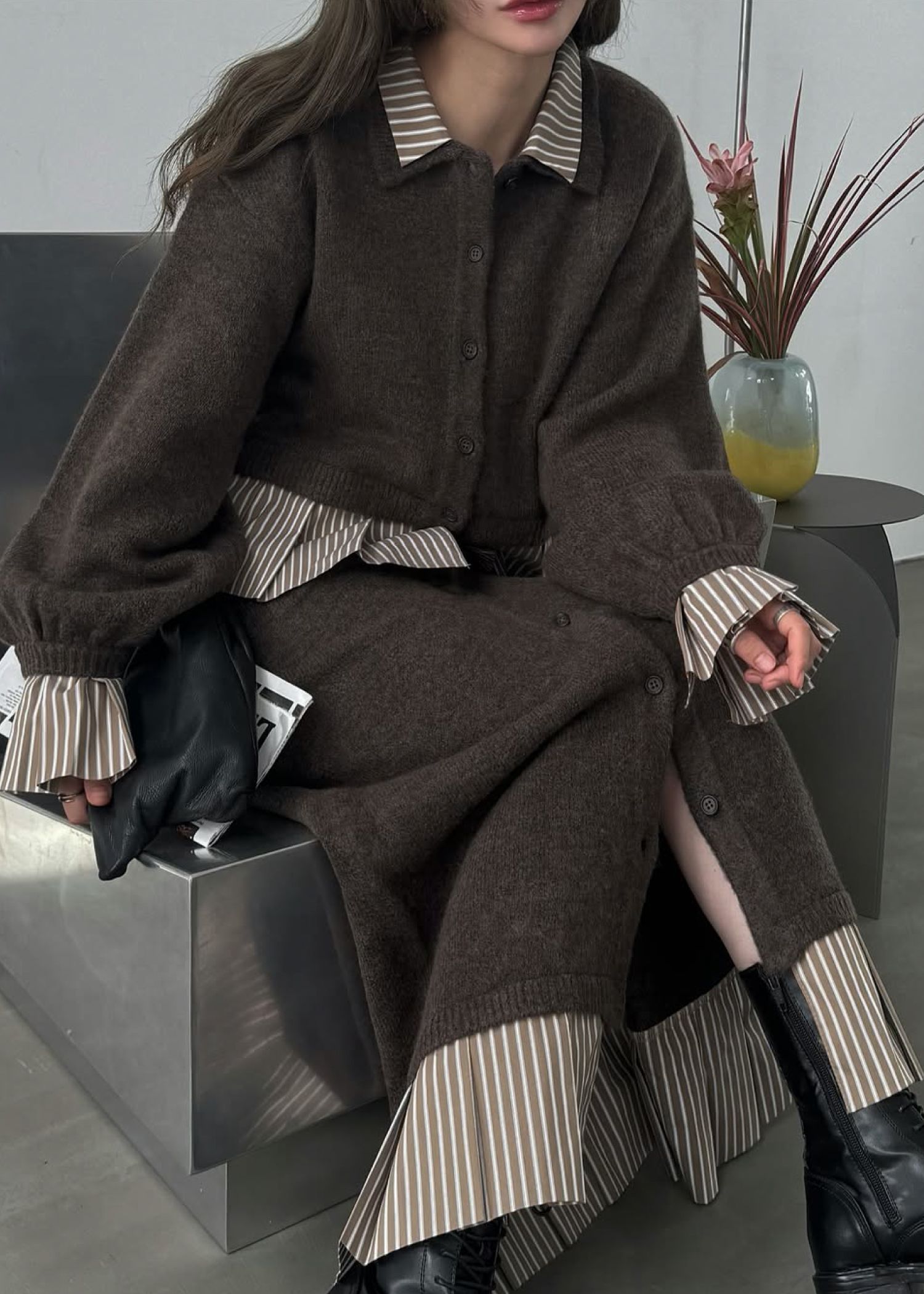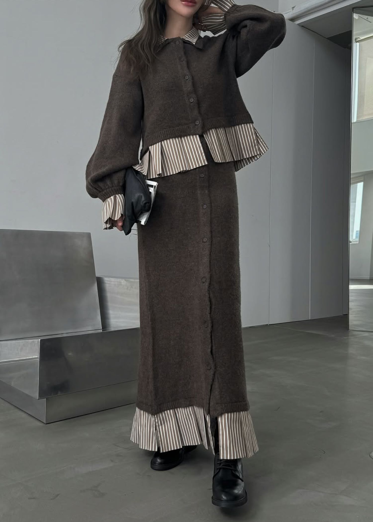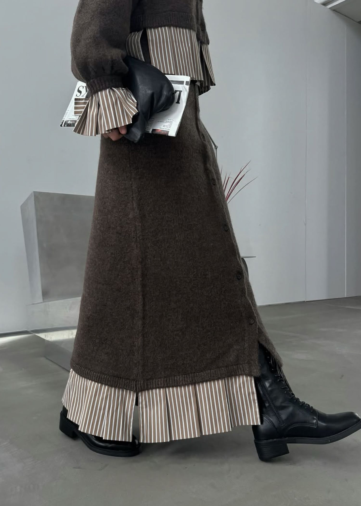 pleats docking button slit pencil knit SK