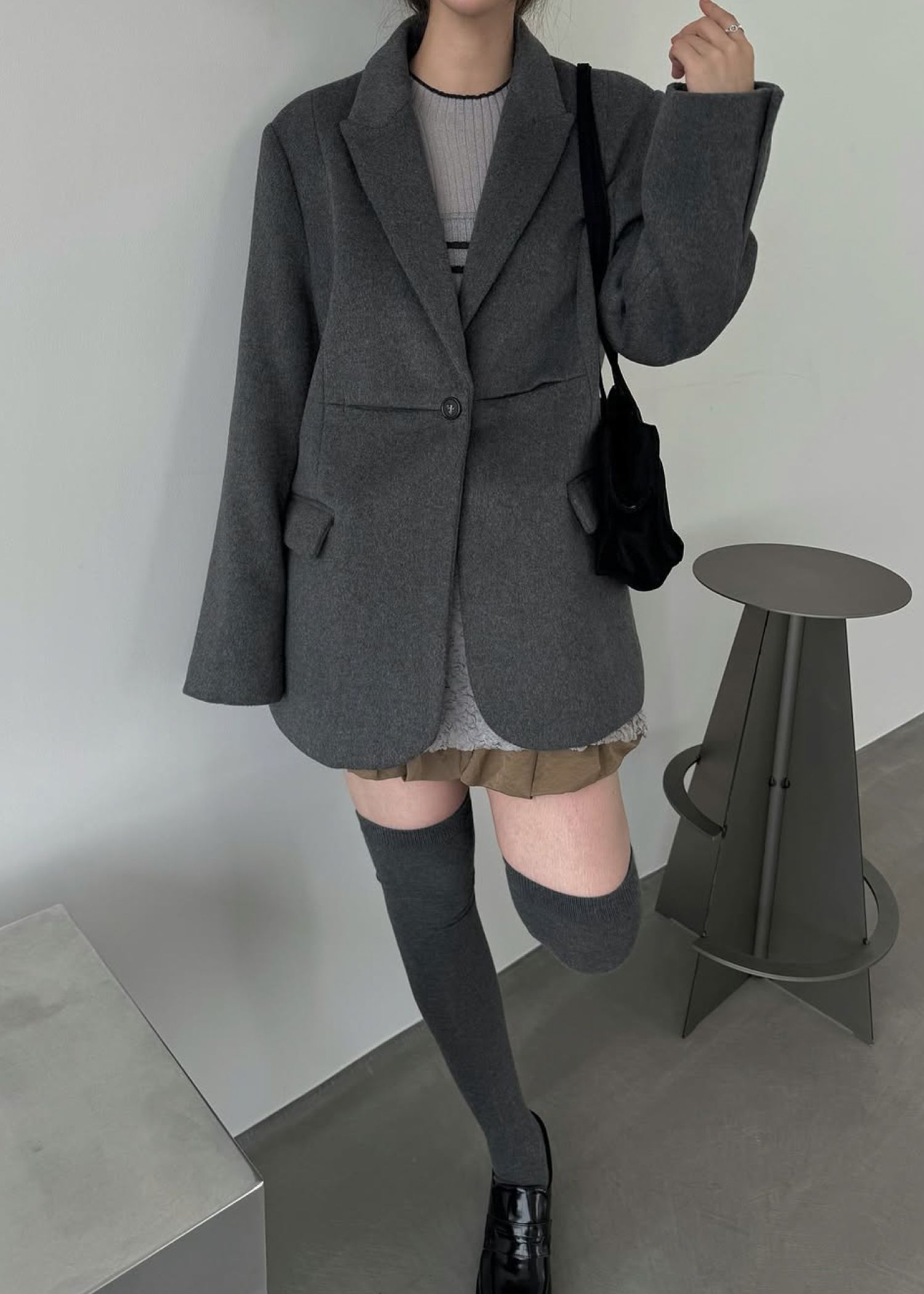 peaked lapel waist tuck oversize JK