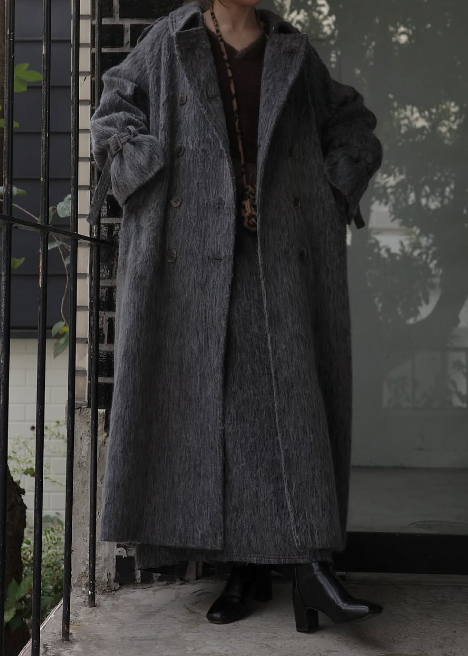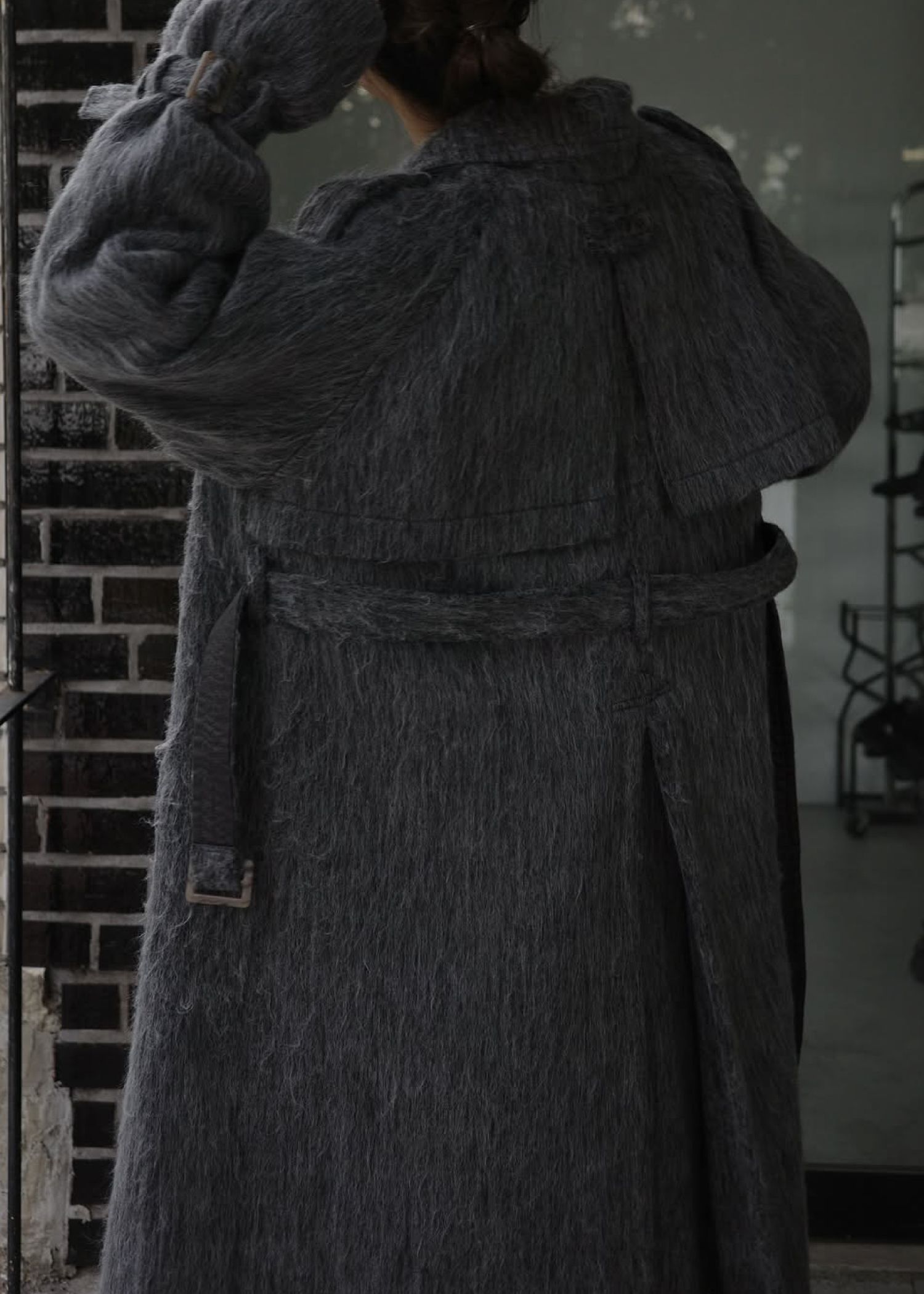 shaggy volume sleeve trench long coat