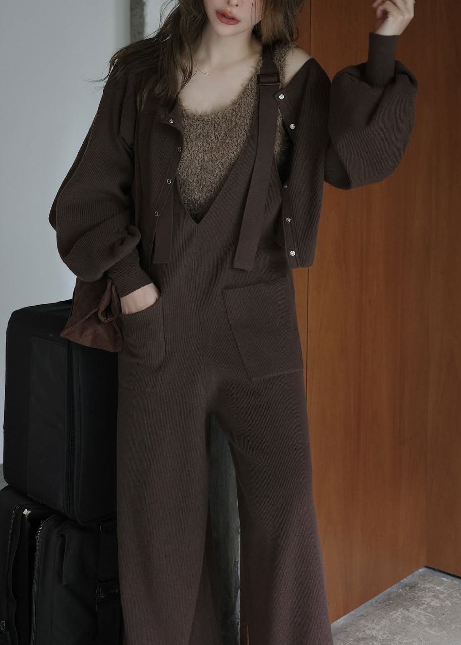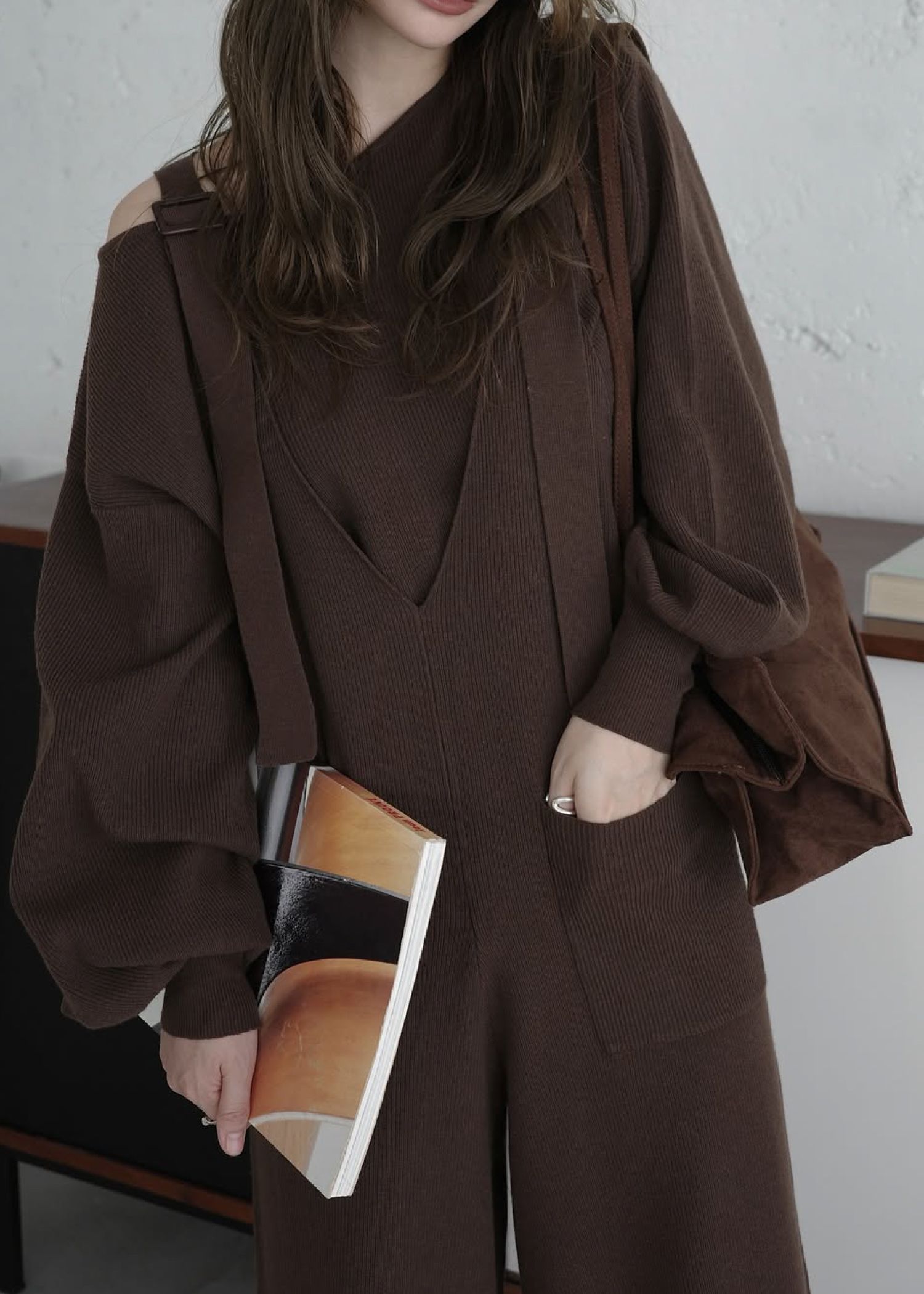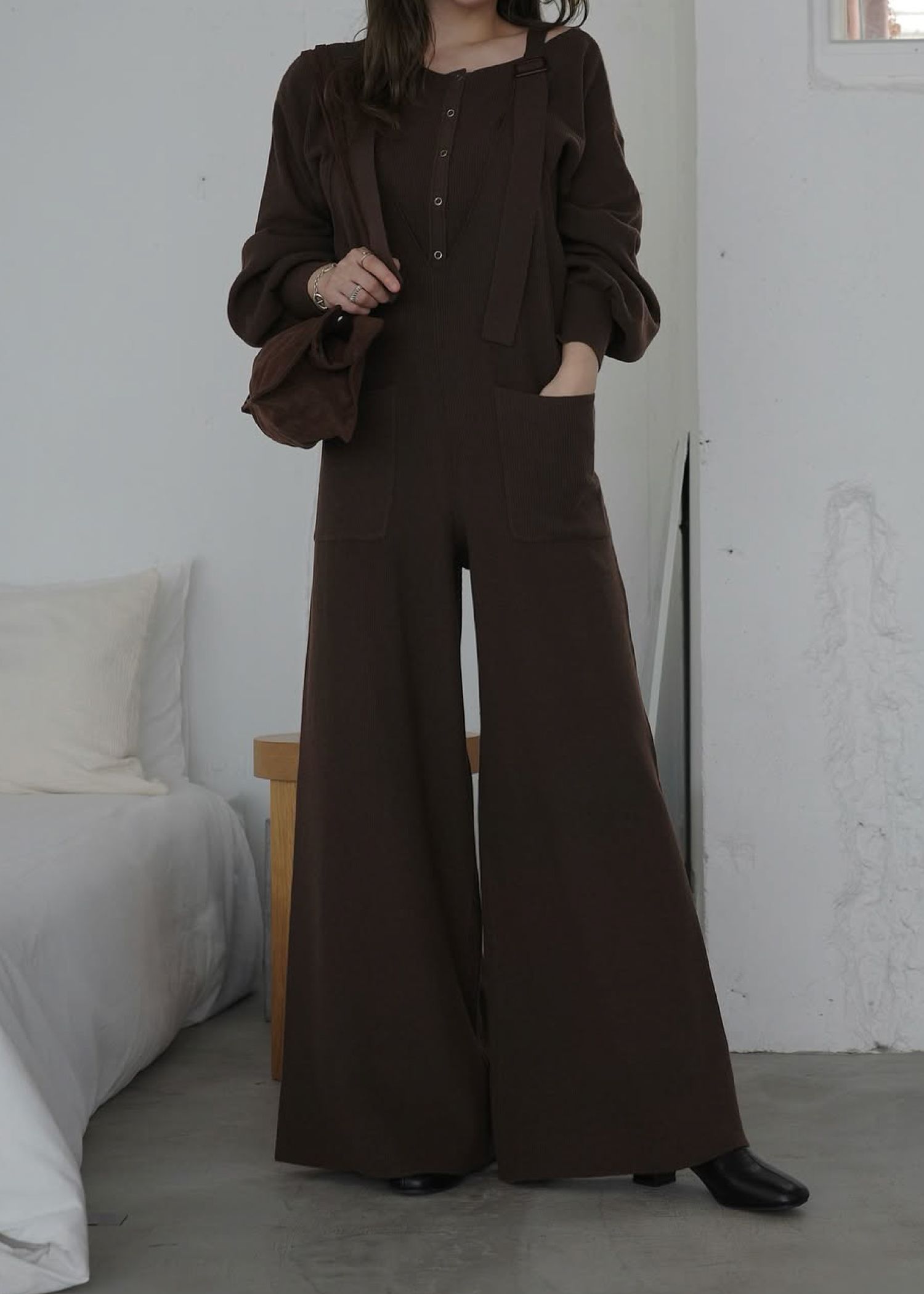 shoulder belt knit all-in-one