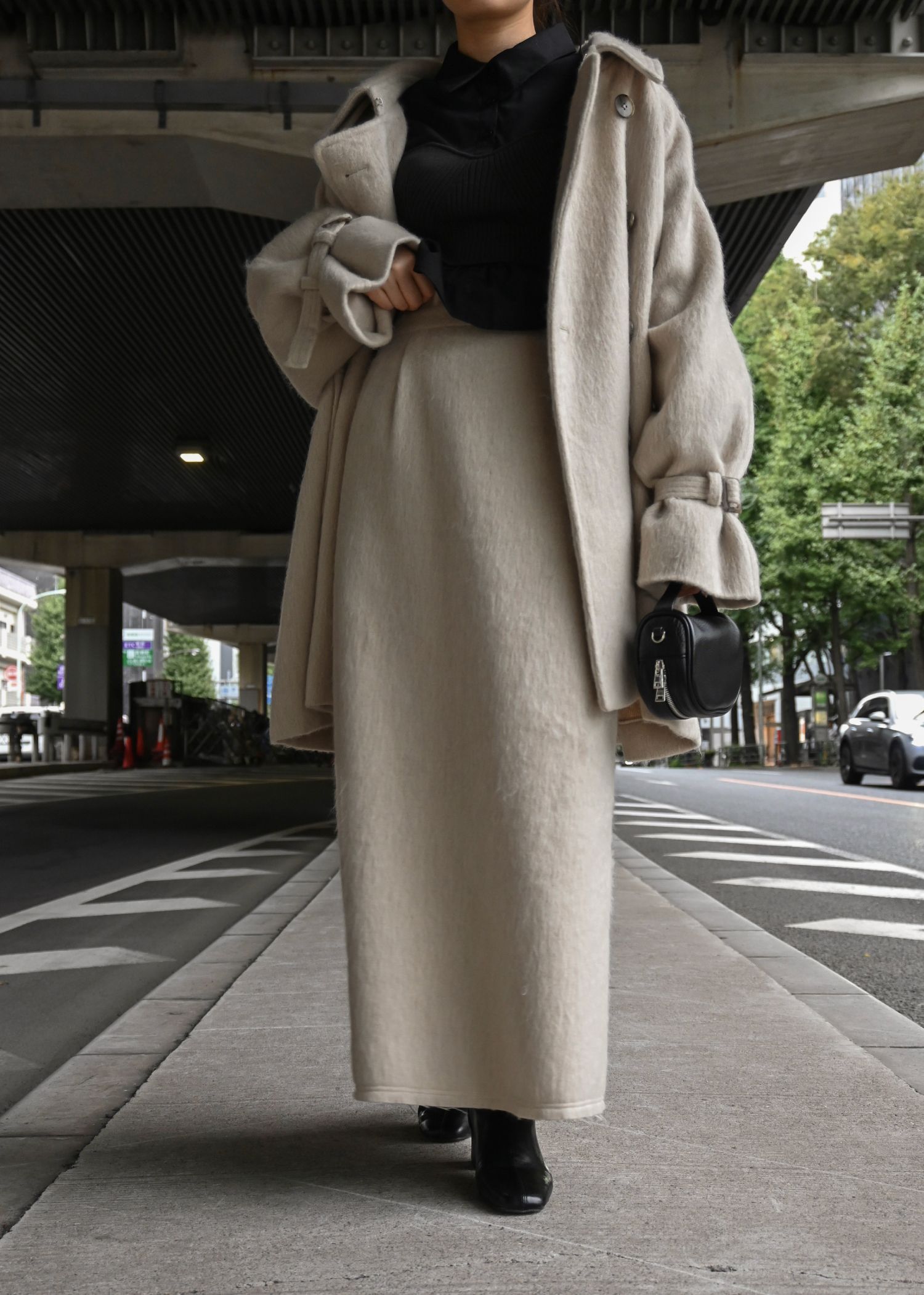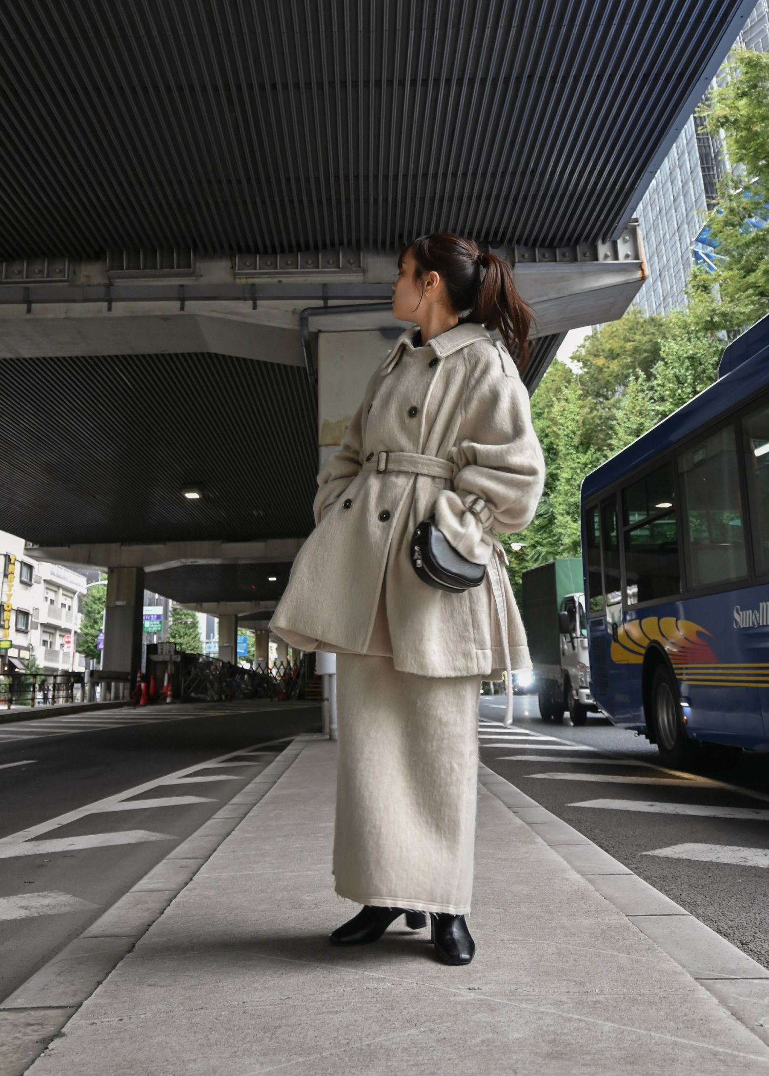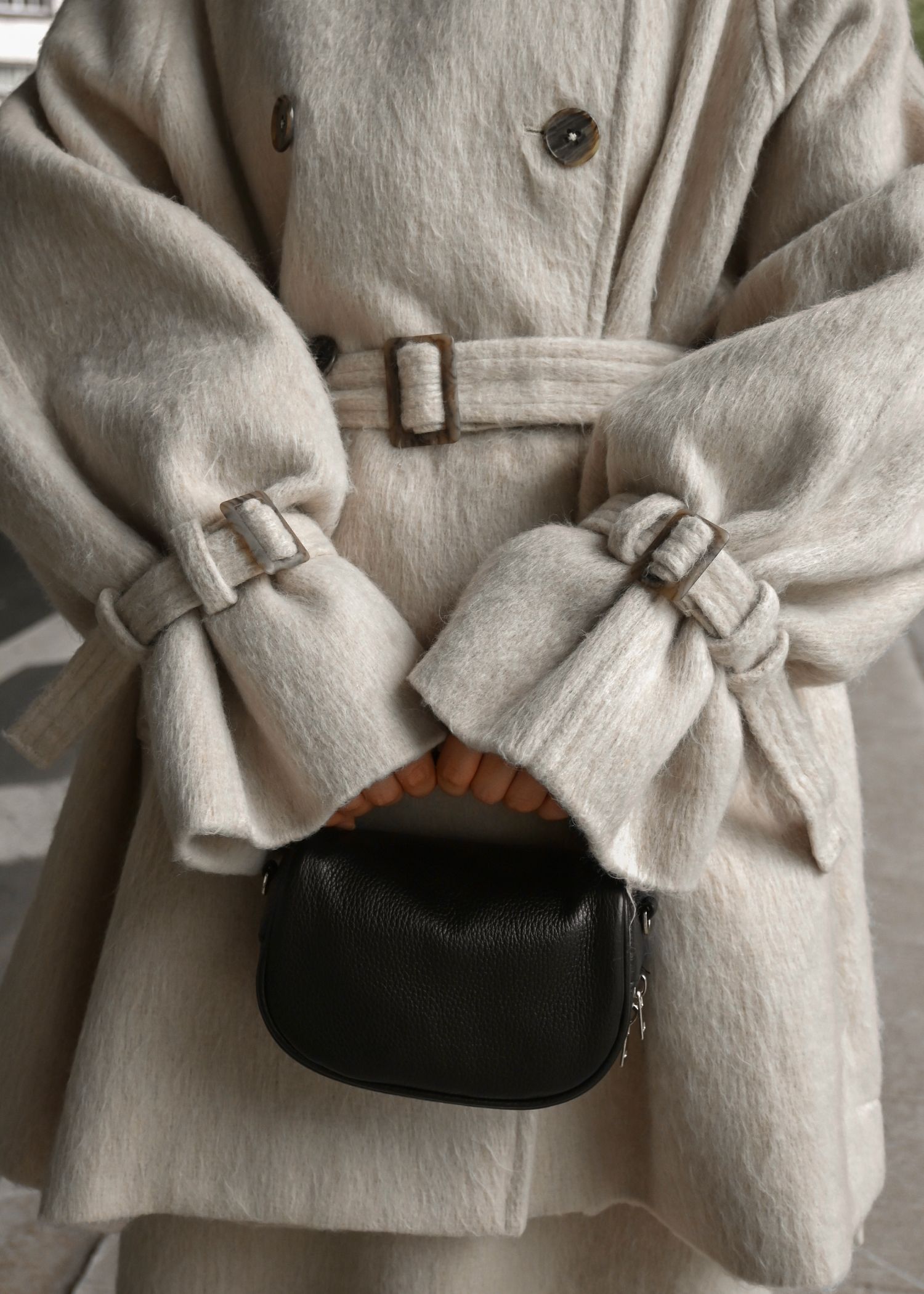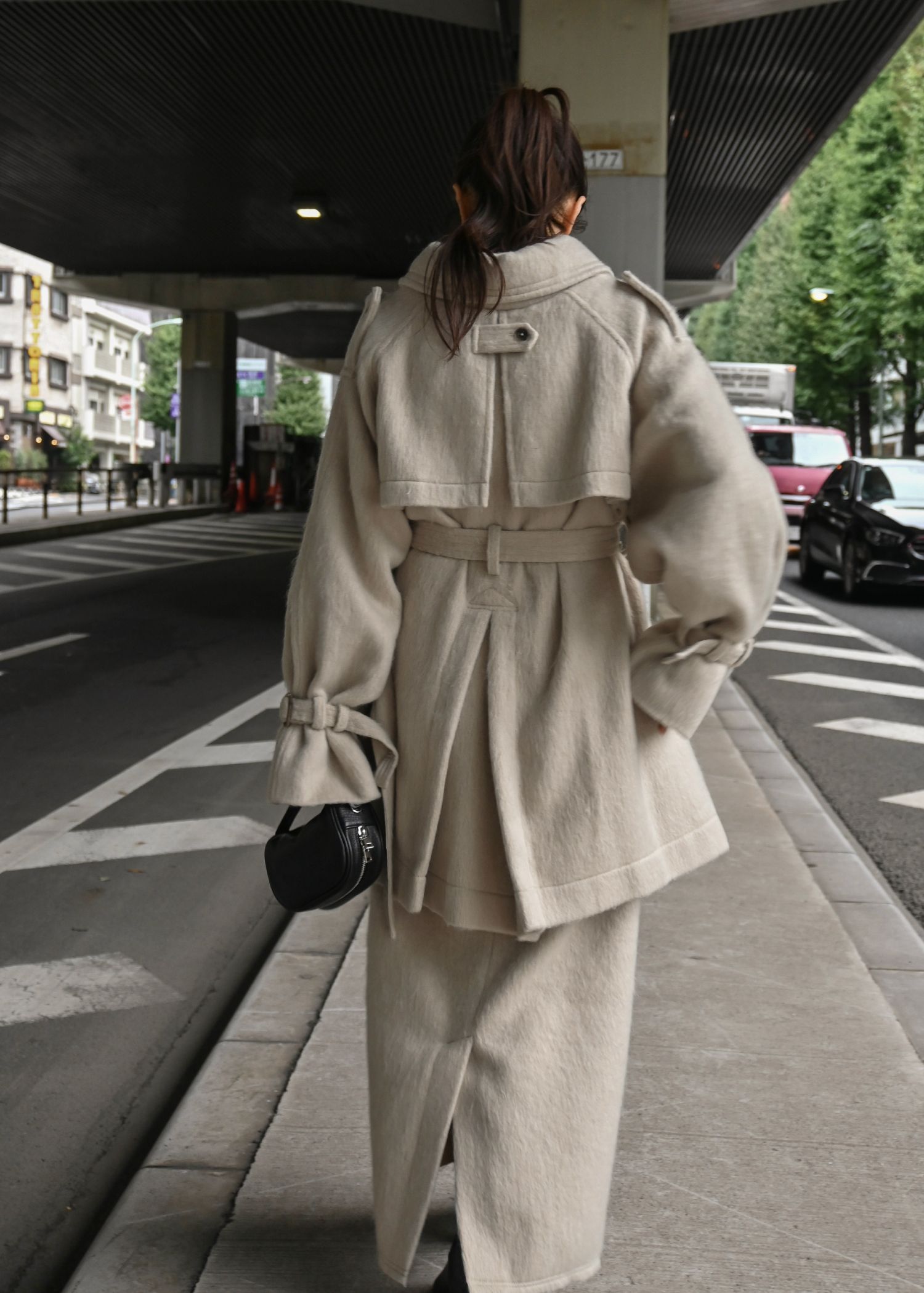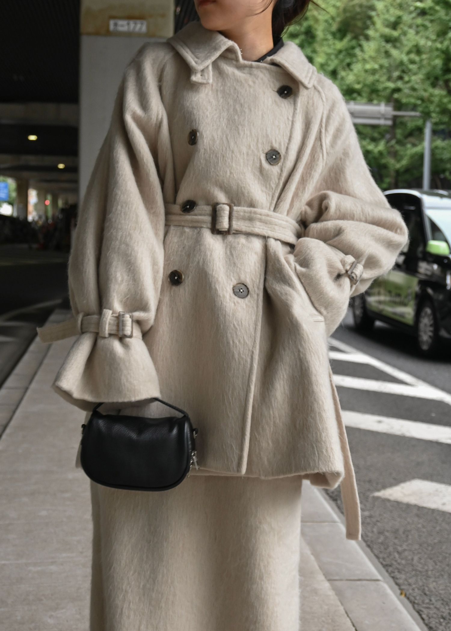 middle shaggy volume sleeve trench coat