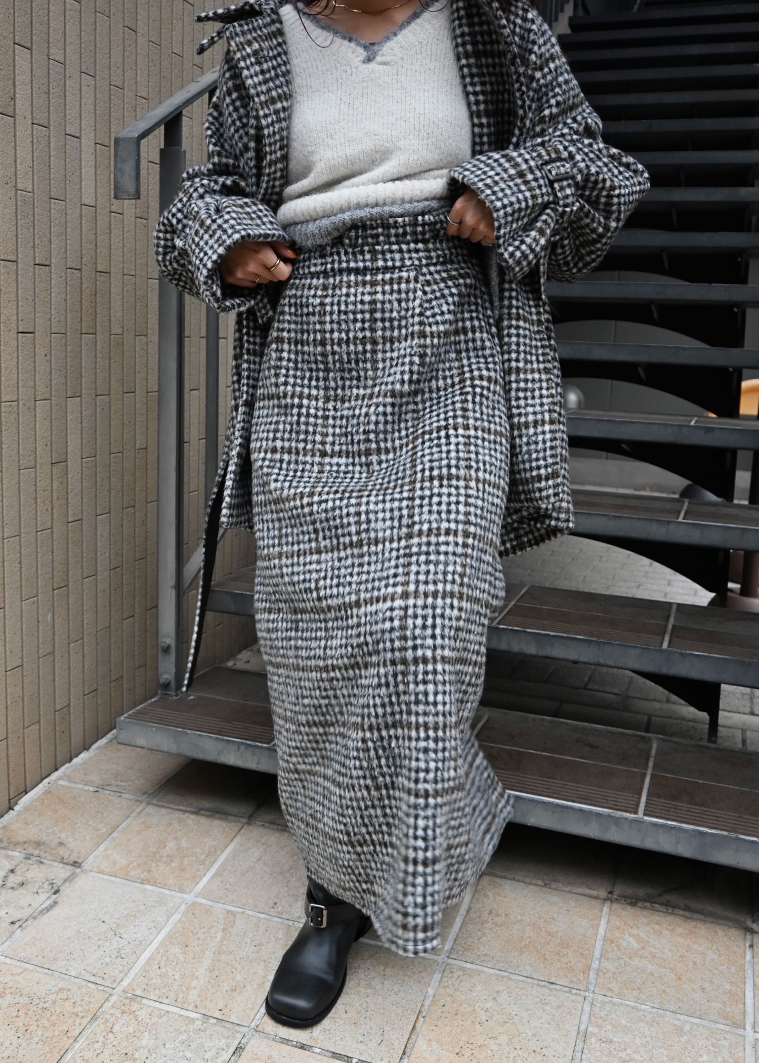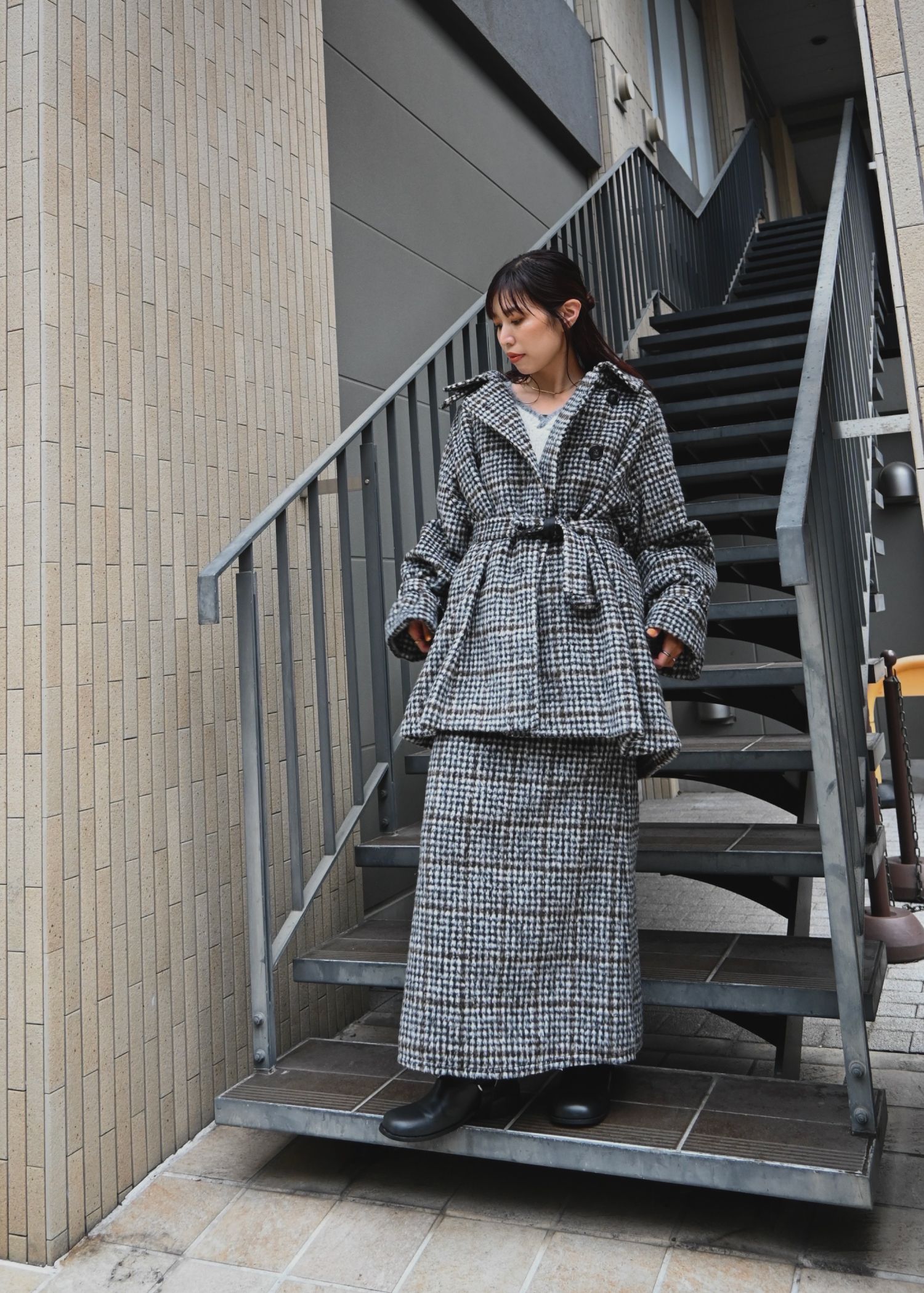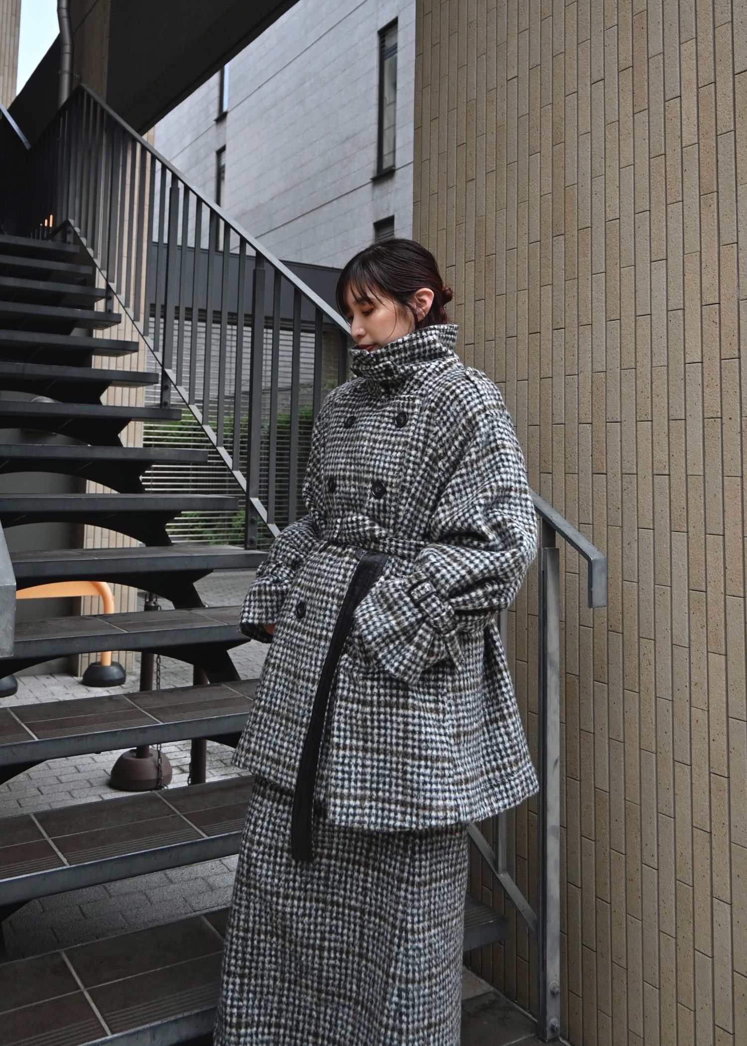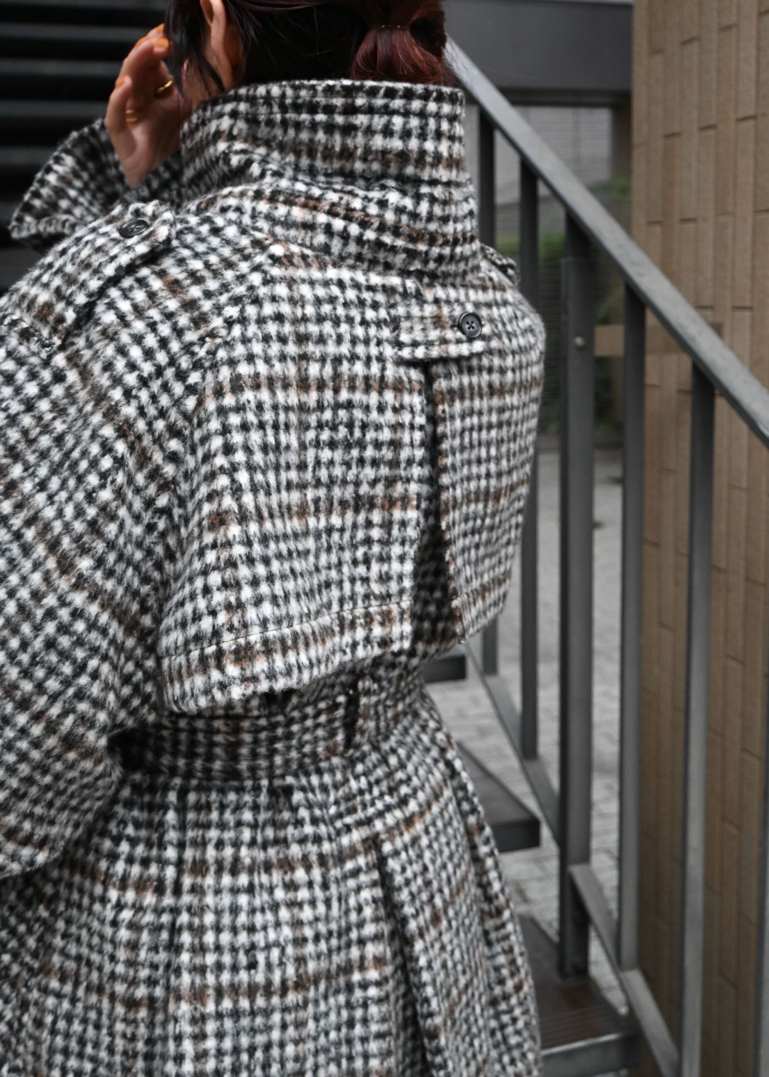 middle shaggy volume sleeve trench coat
