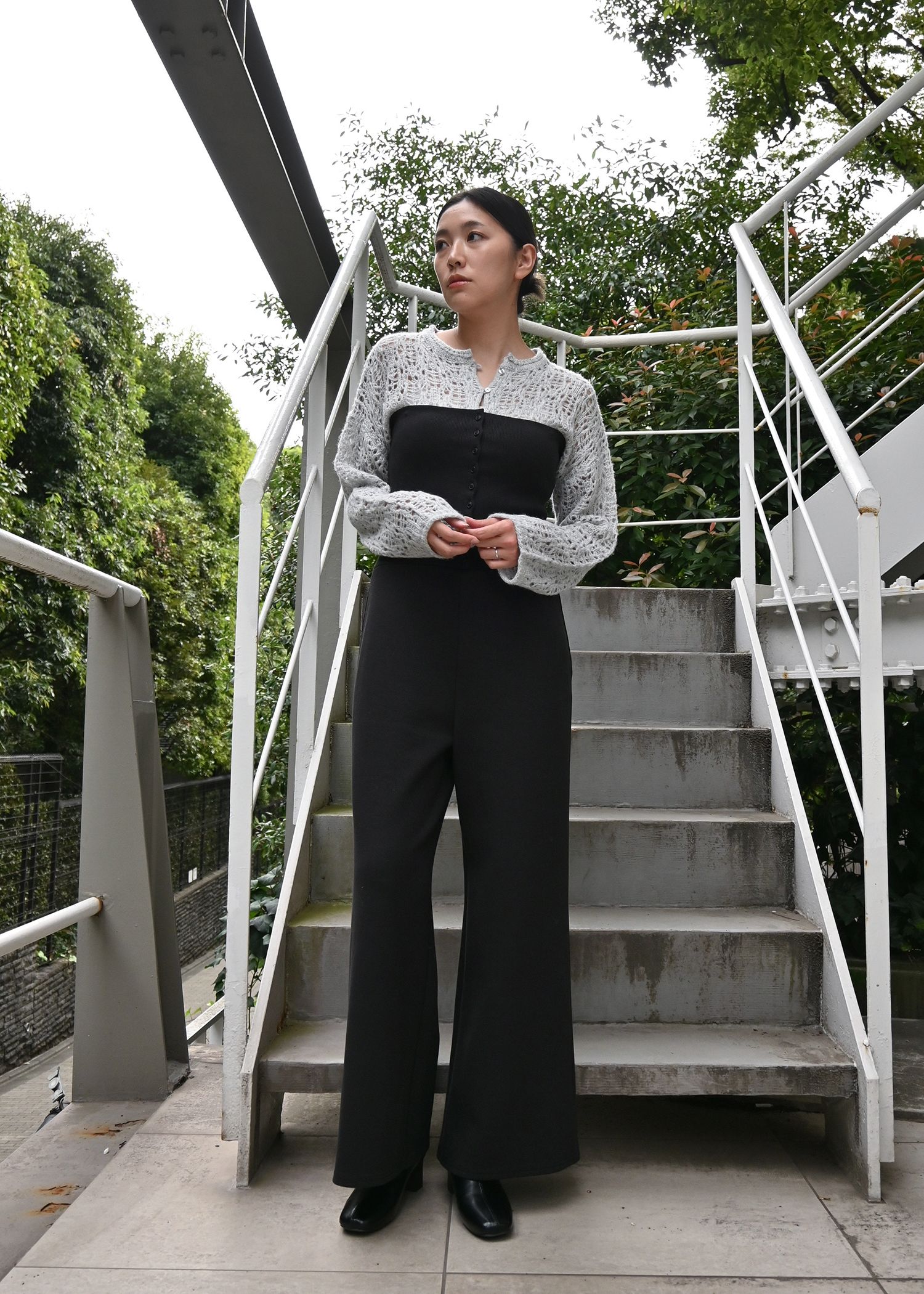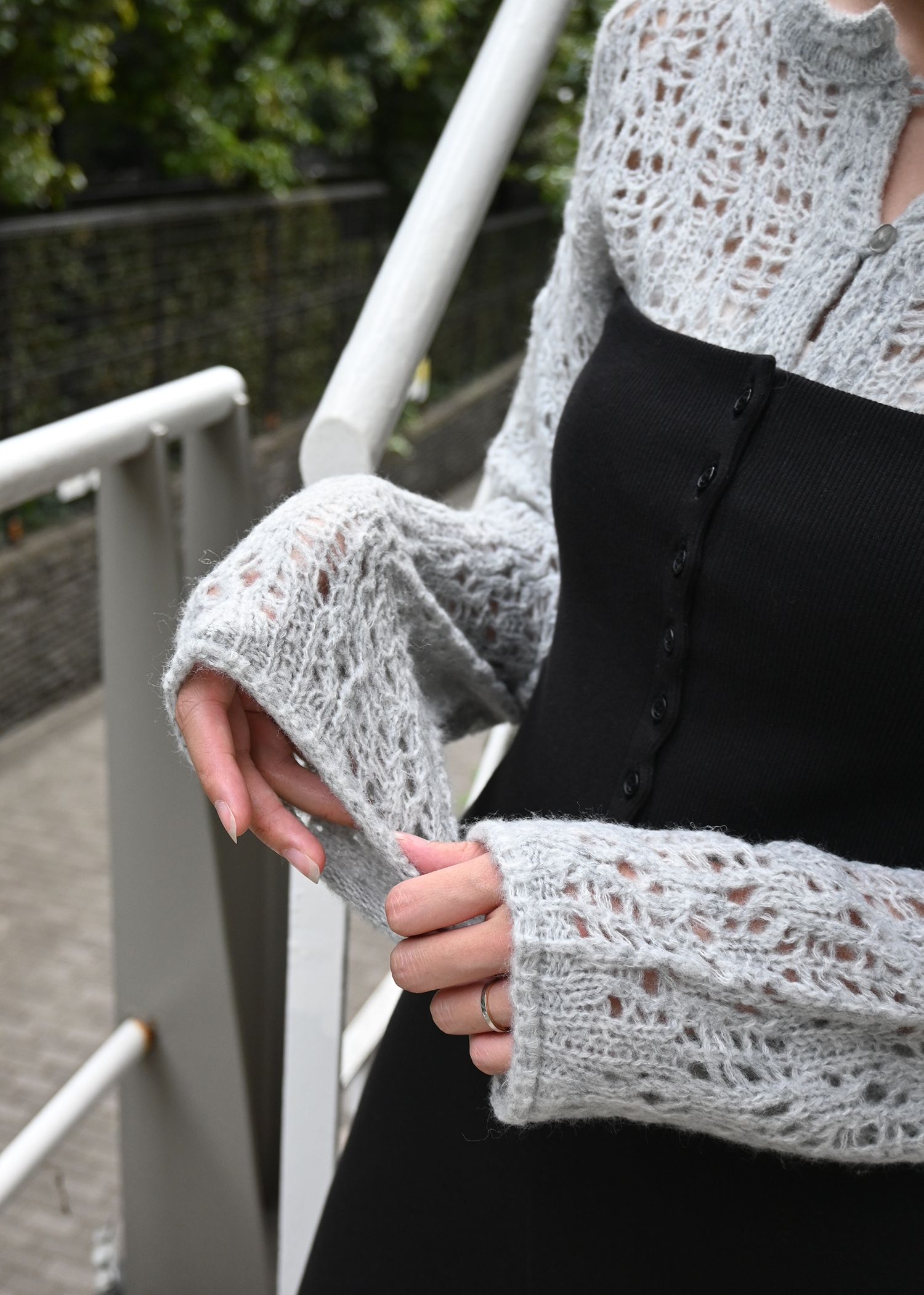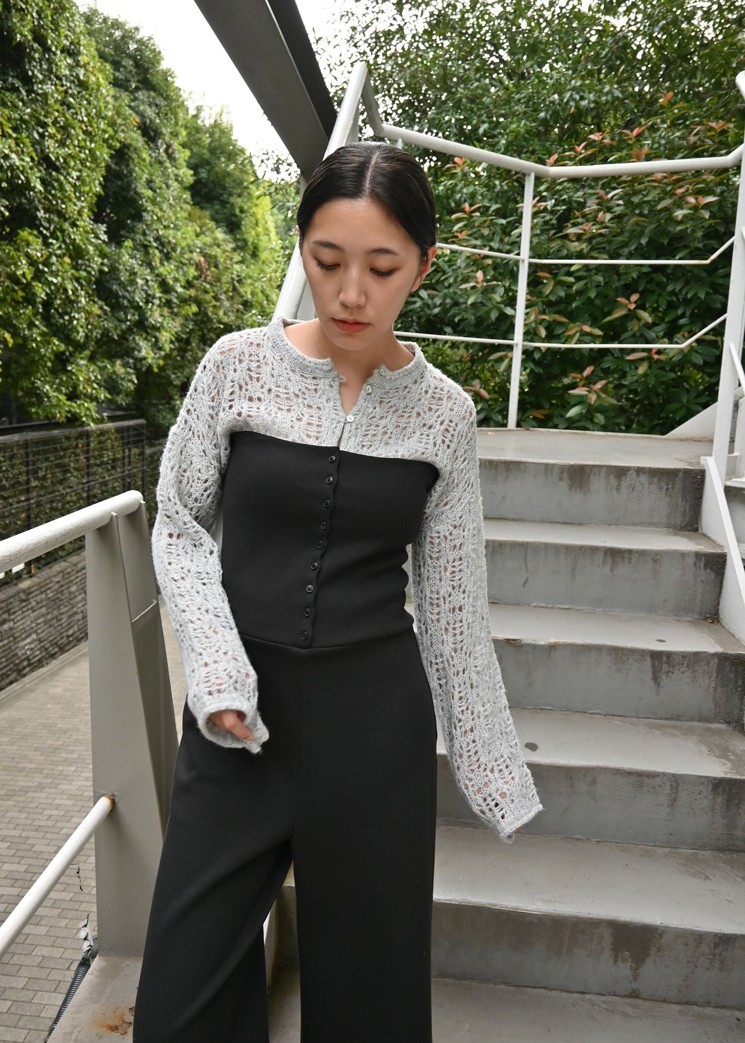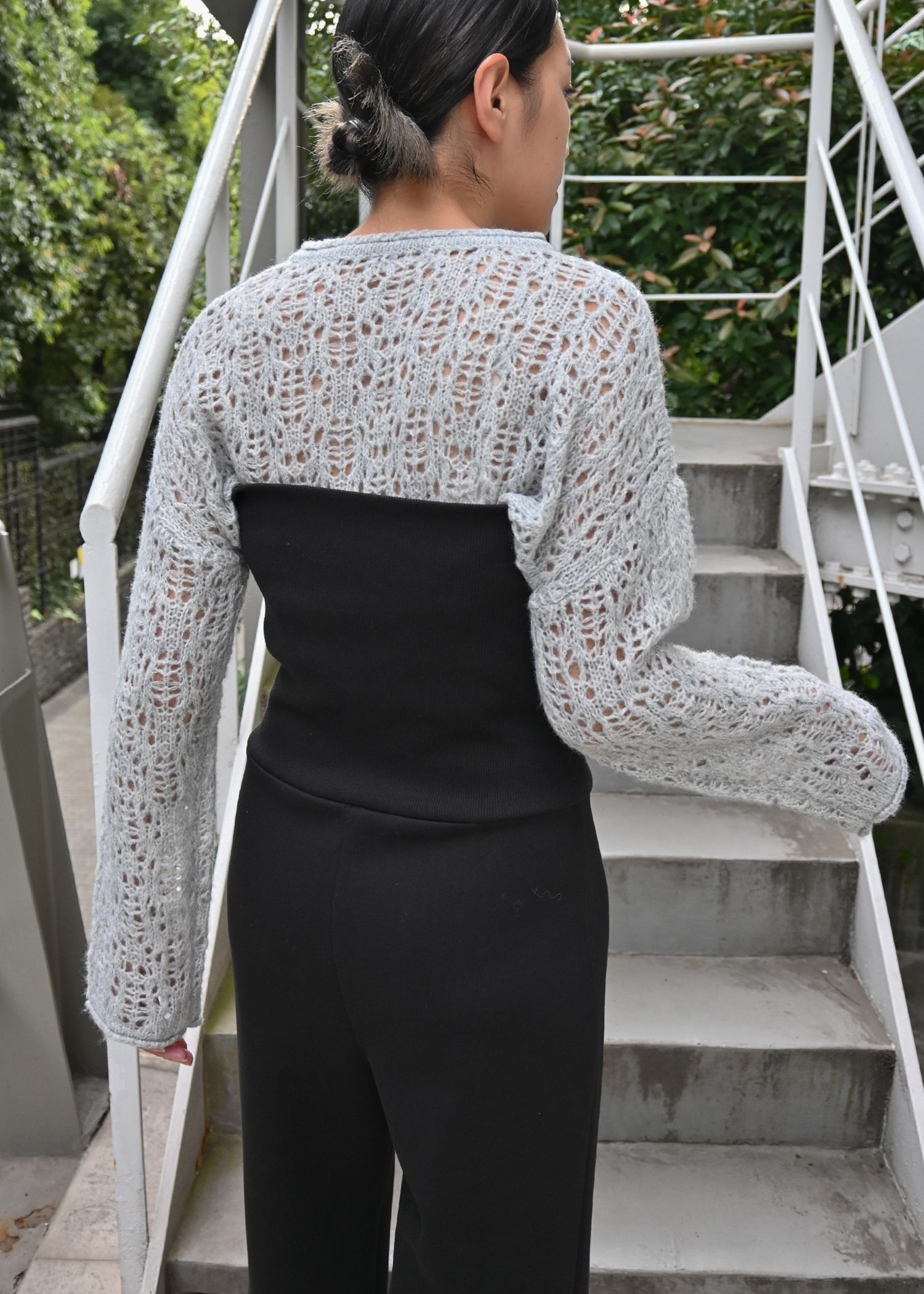 openwork knit short cardigan