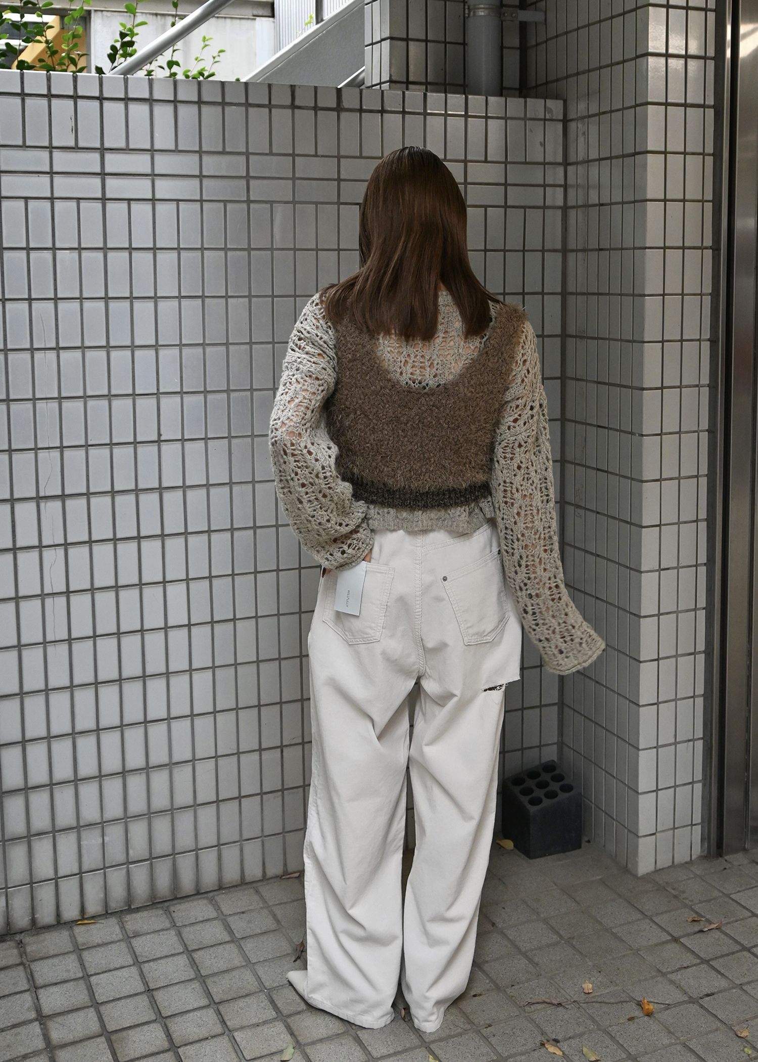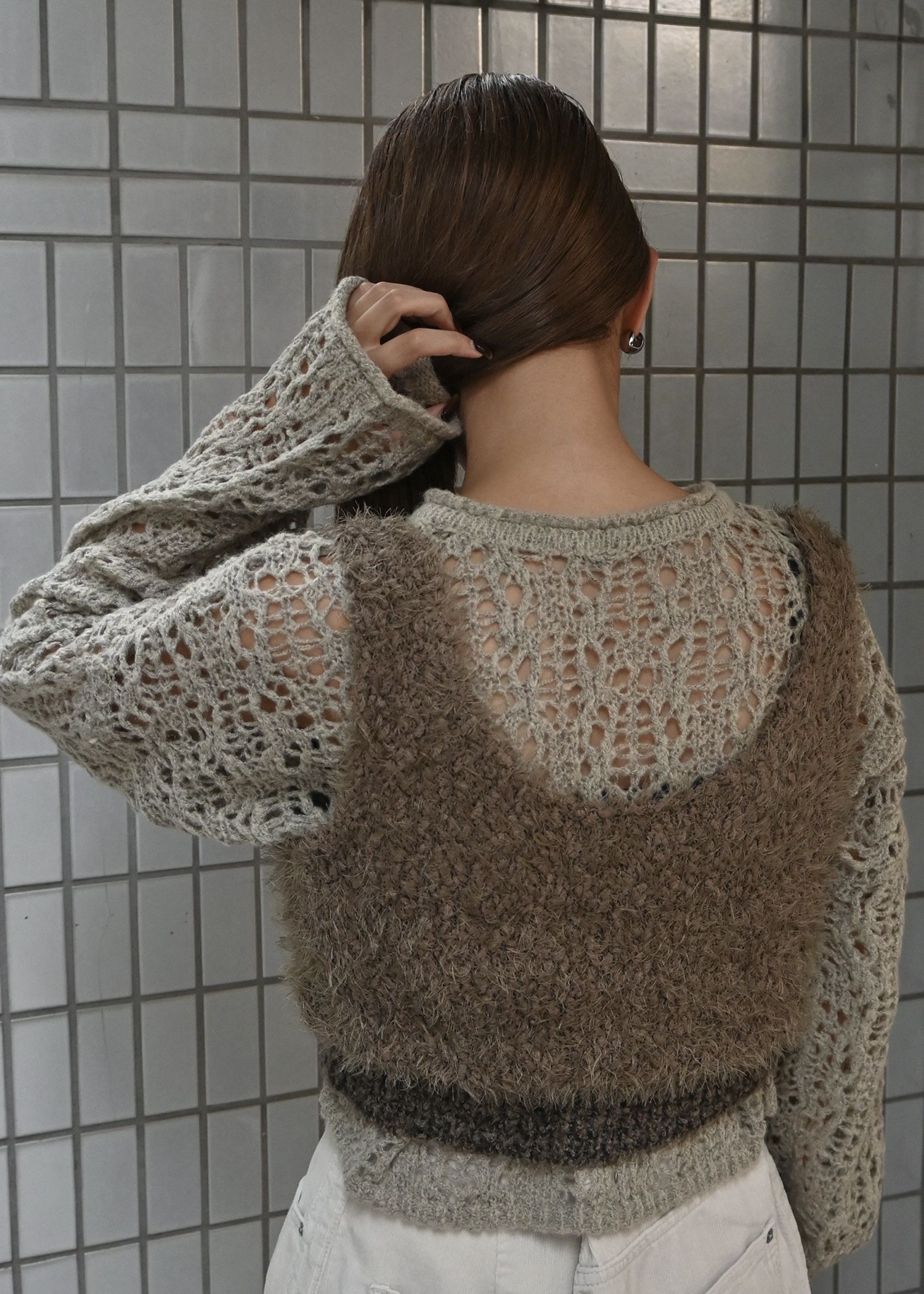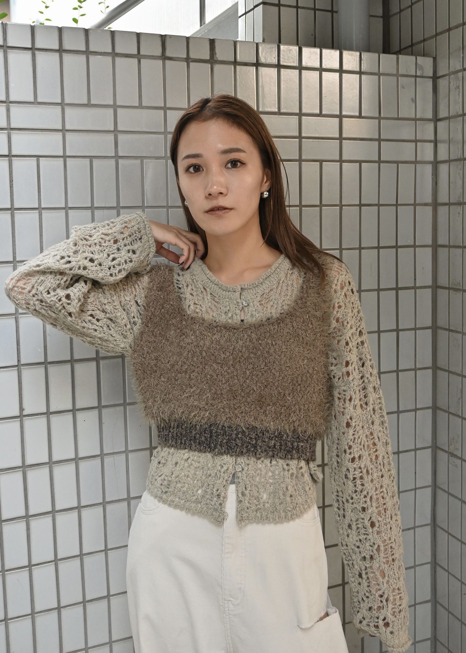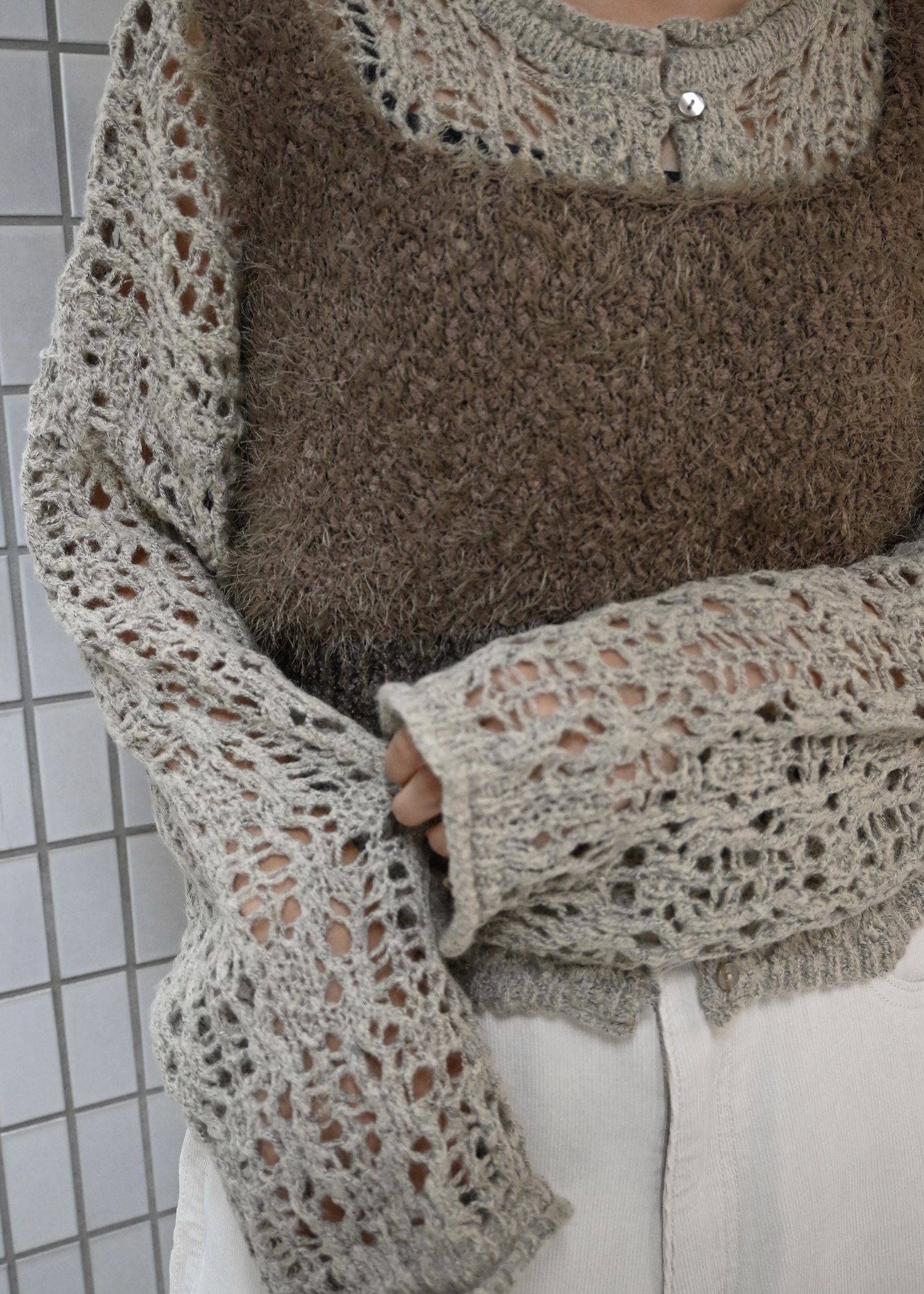 openwork knit short cardigan