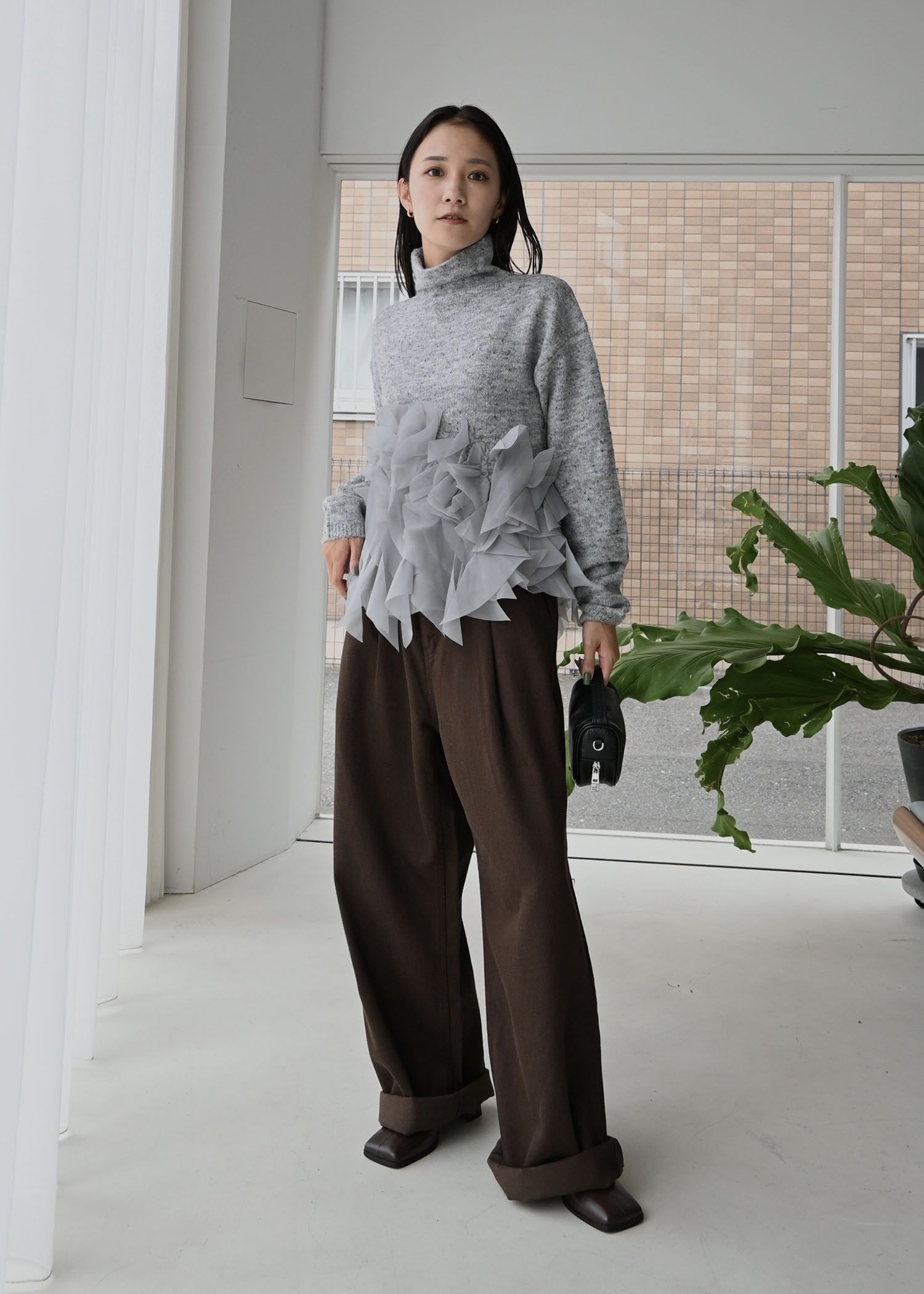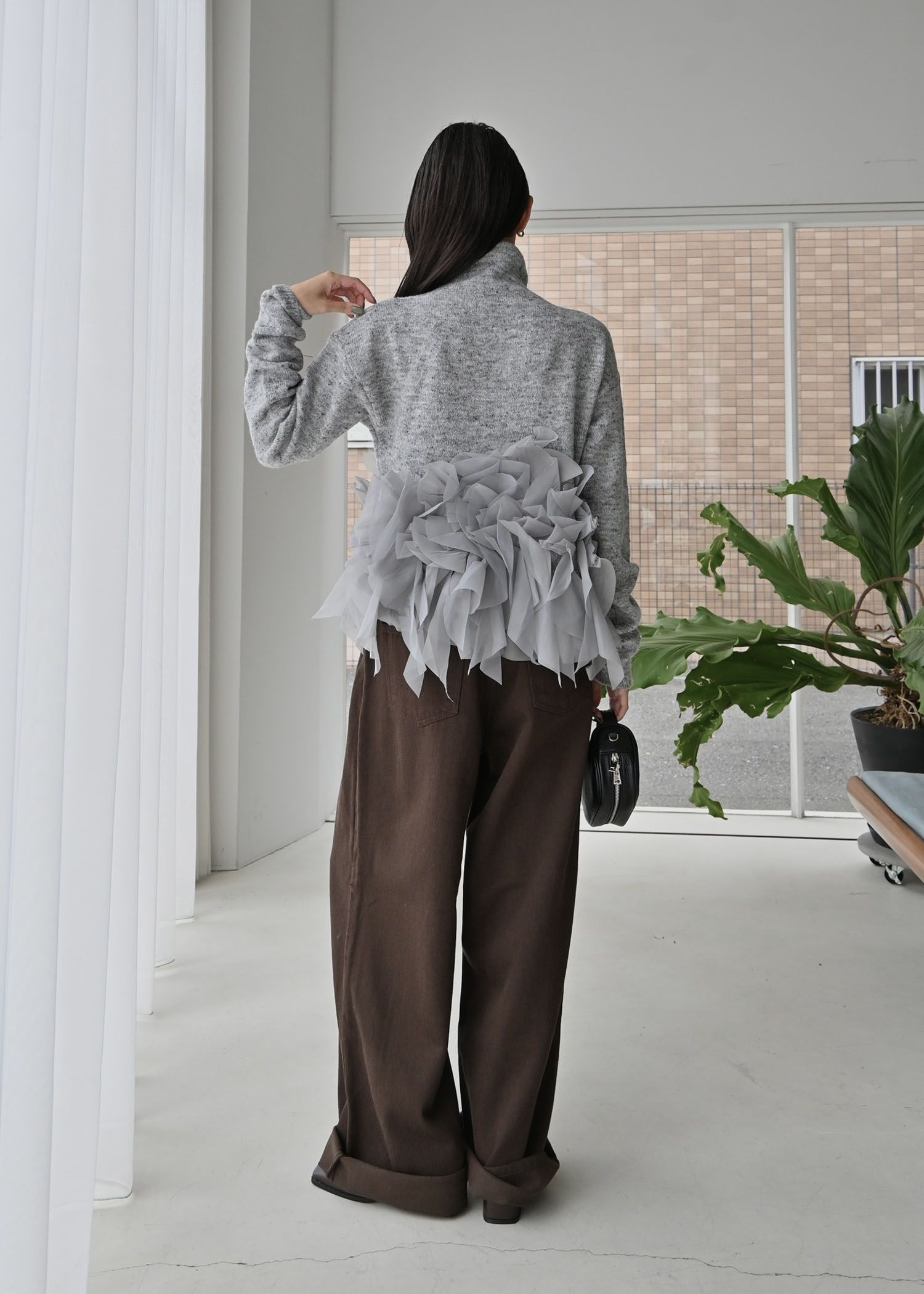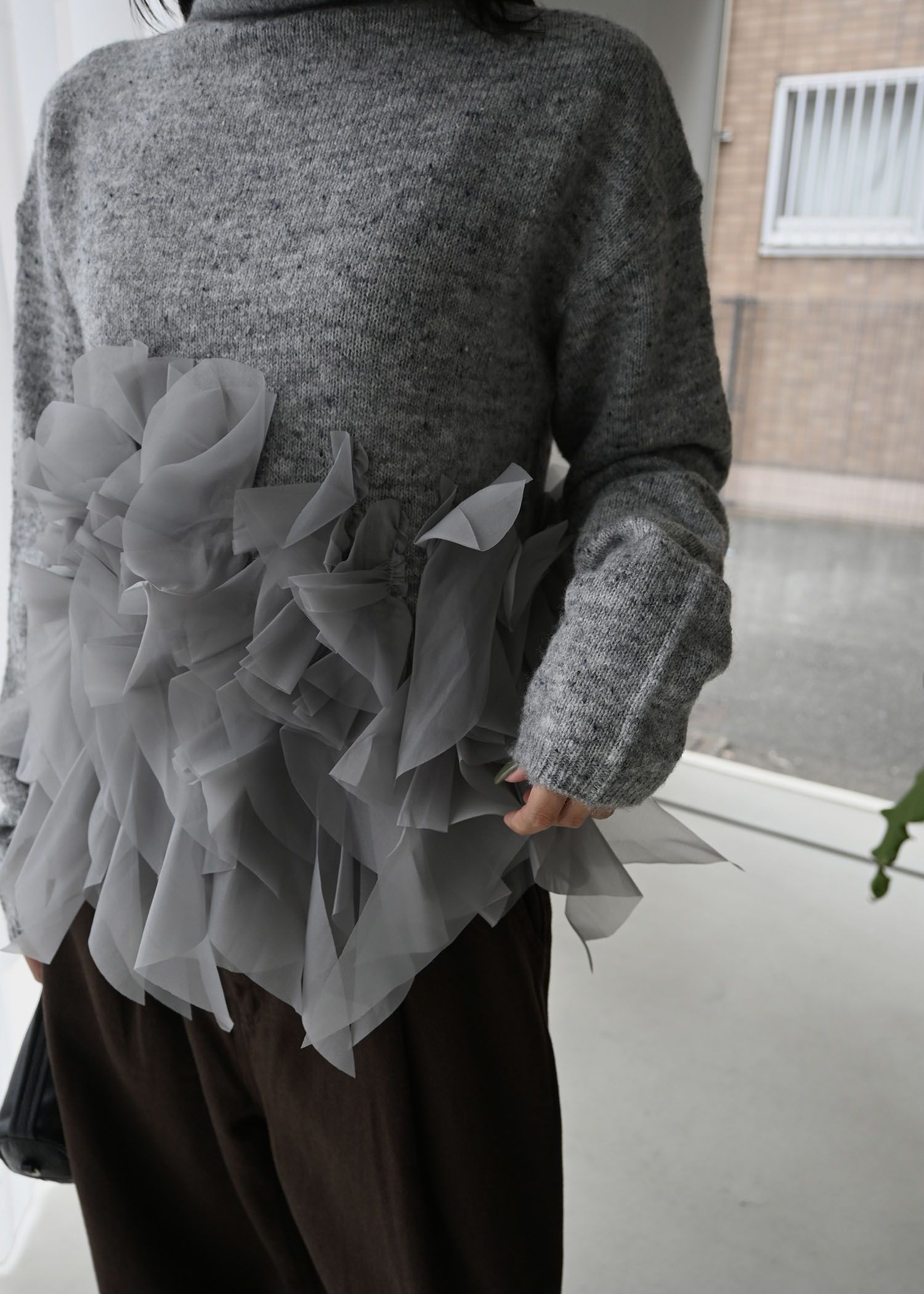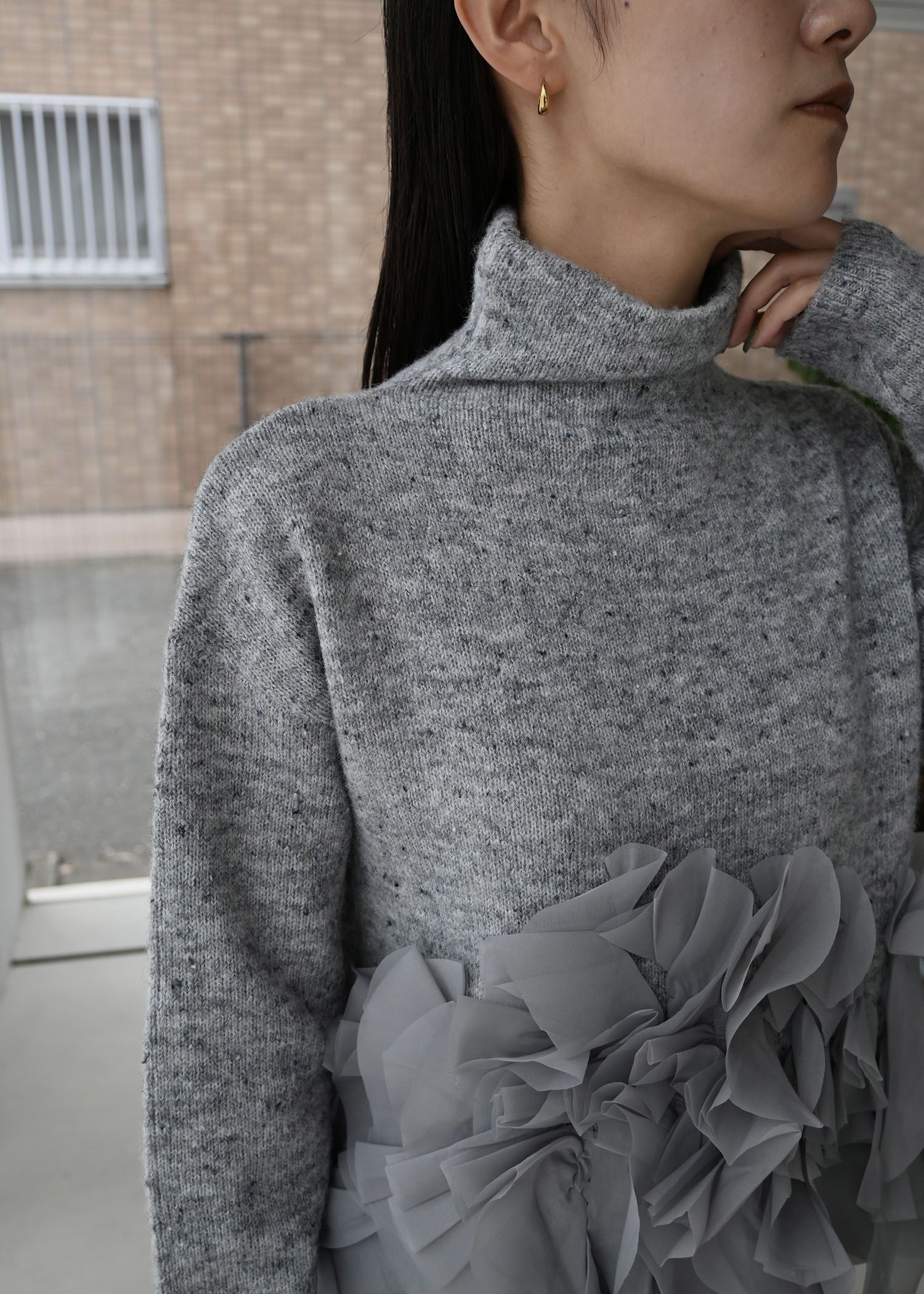 gradation frill bottleneck knit