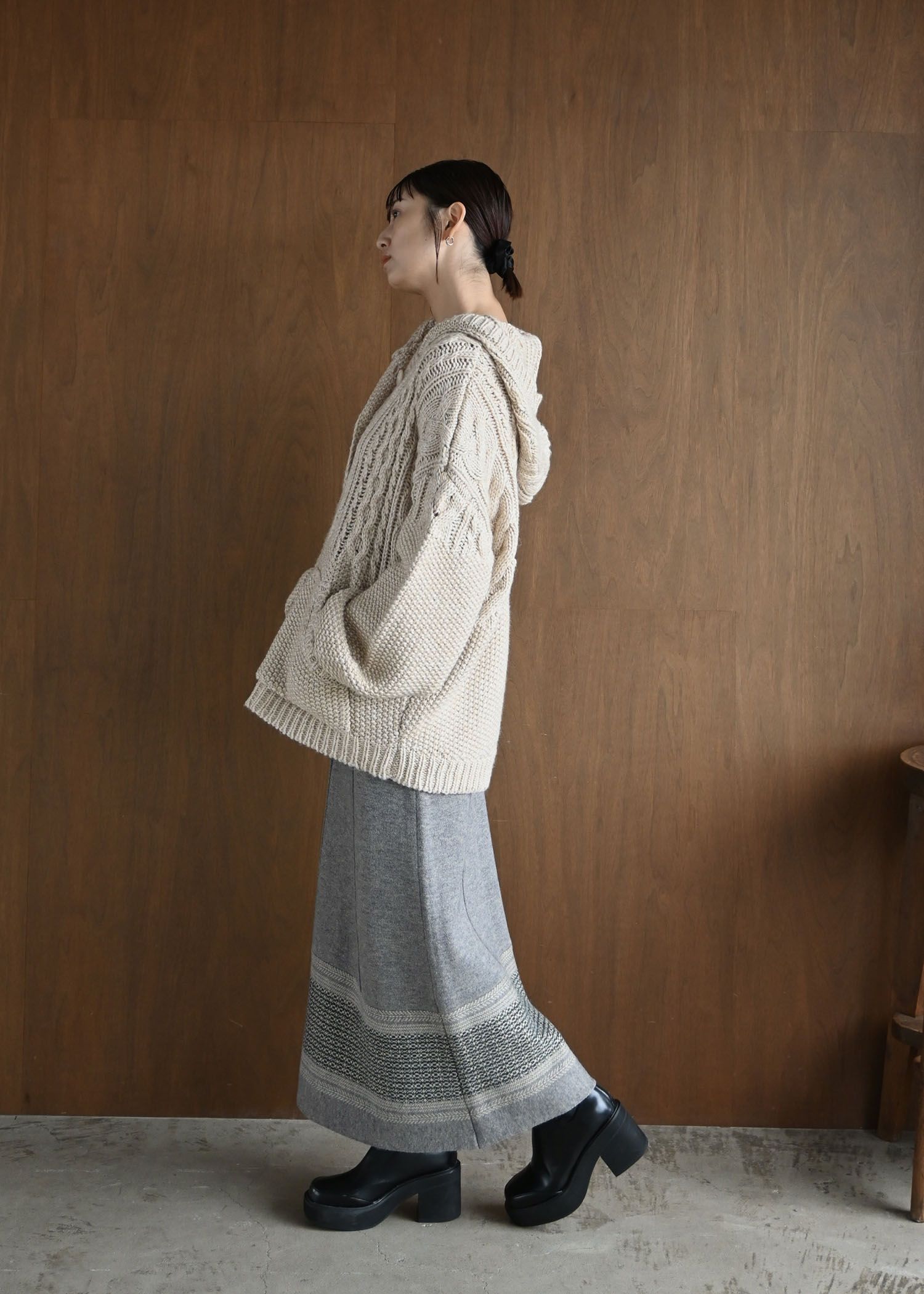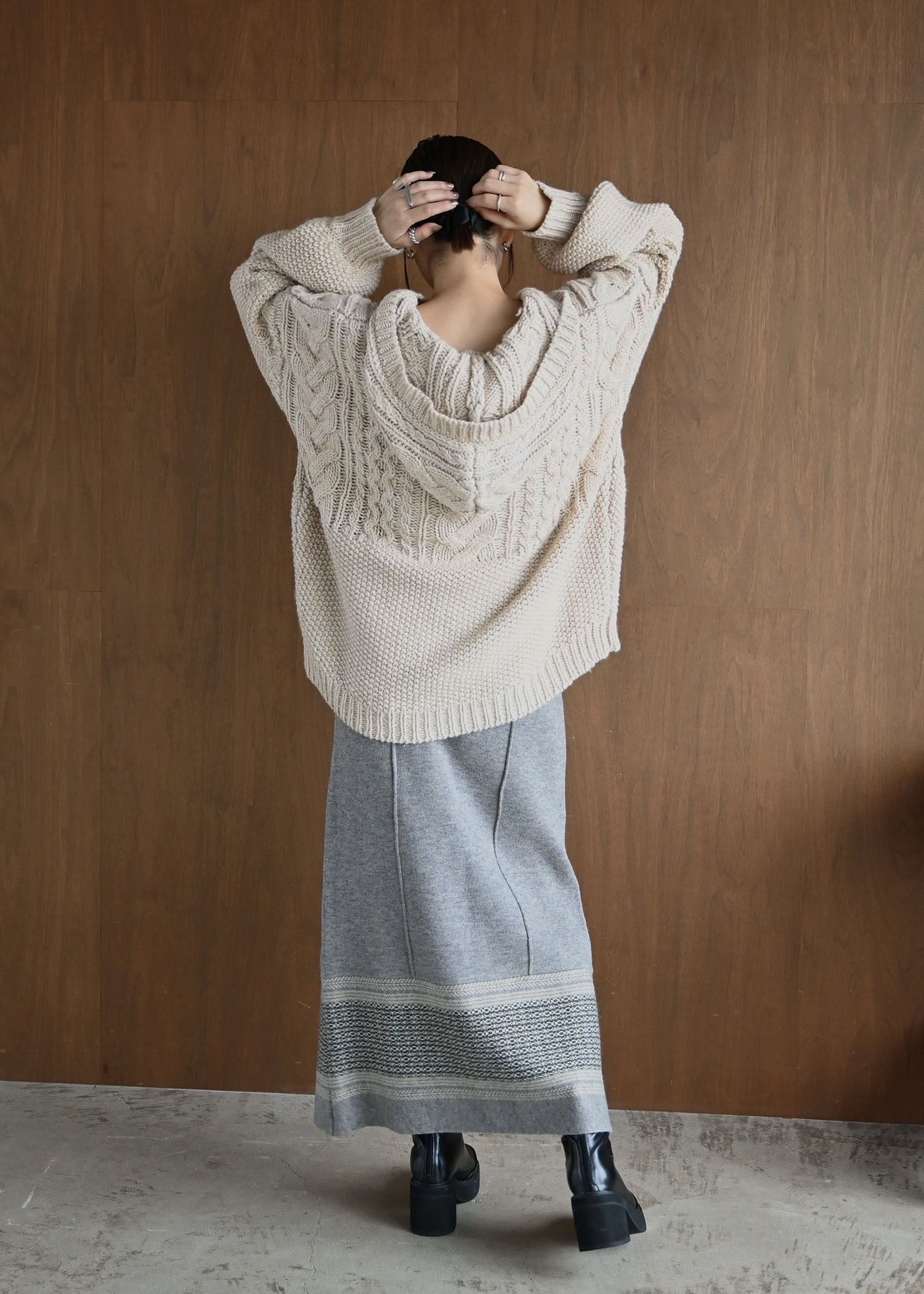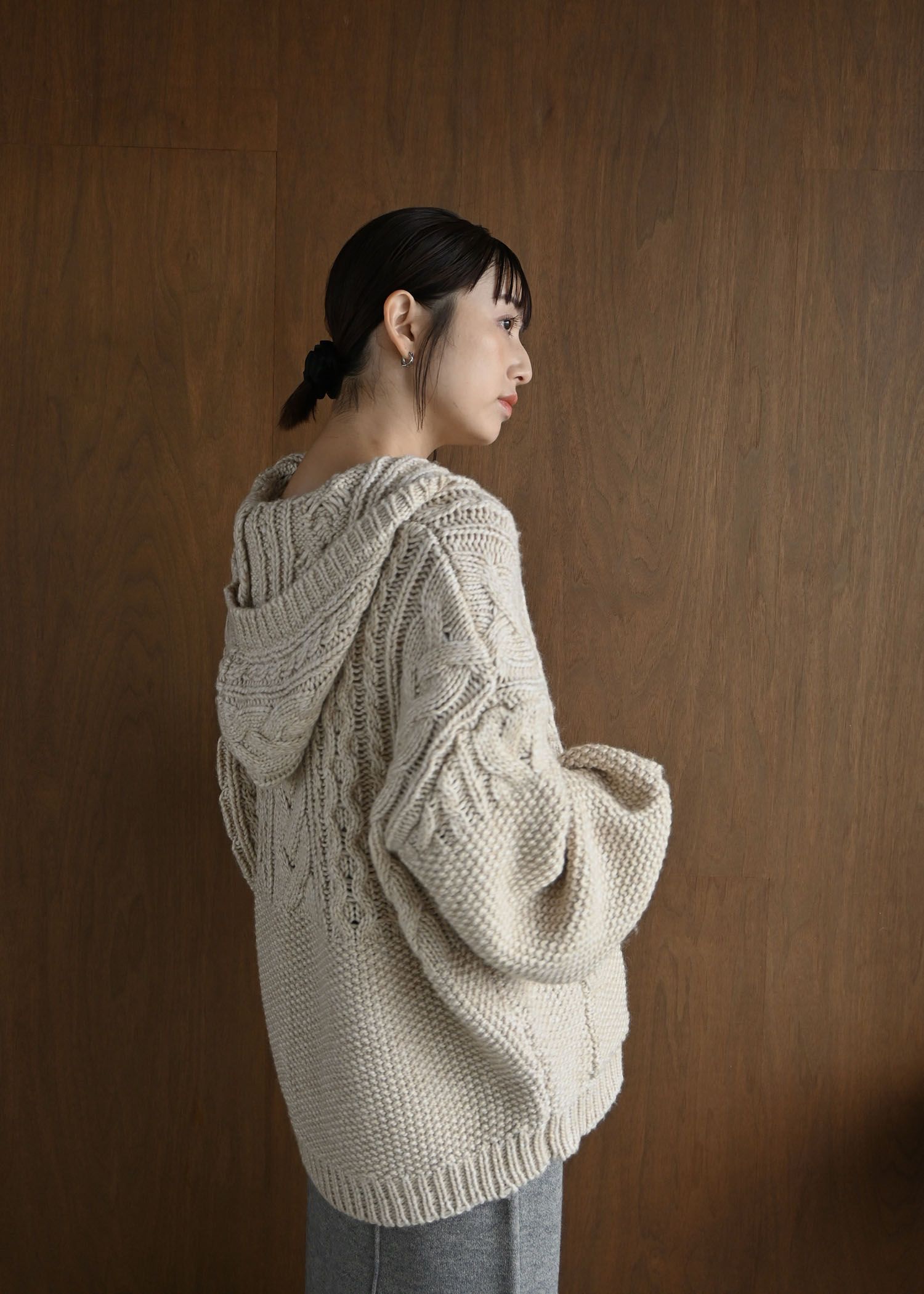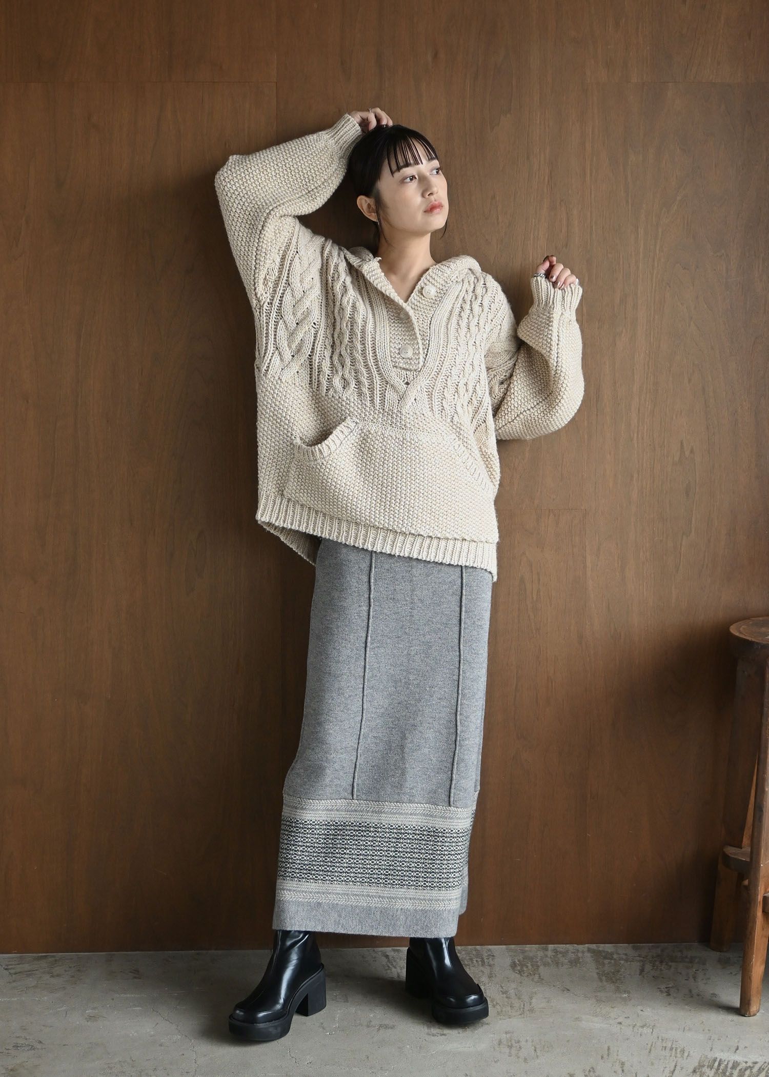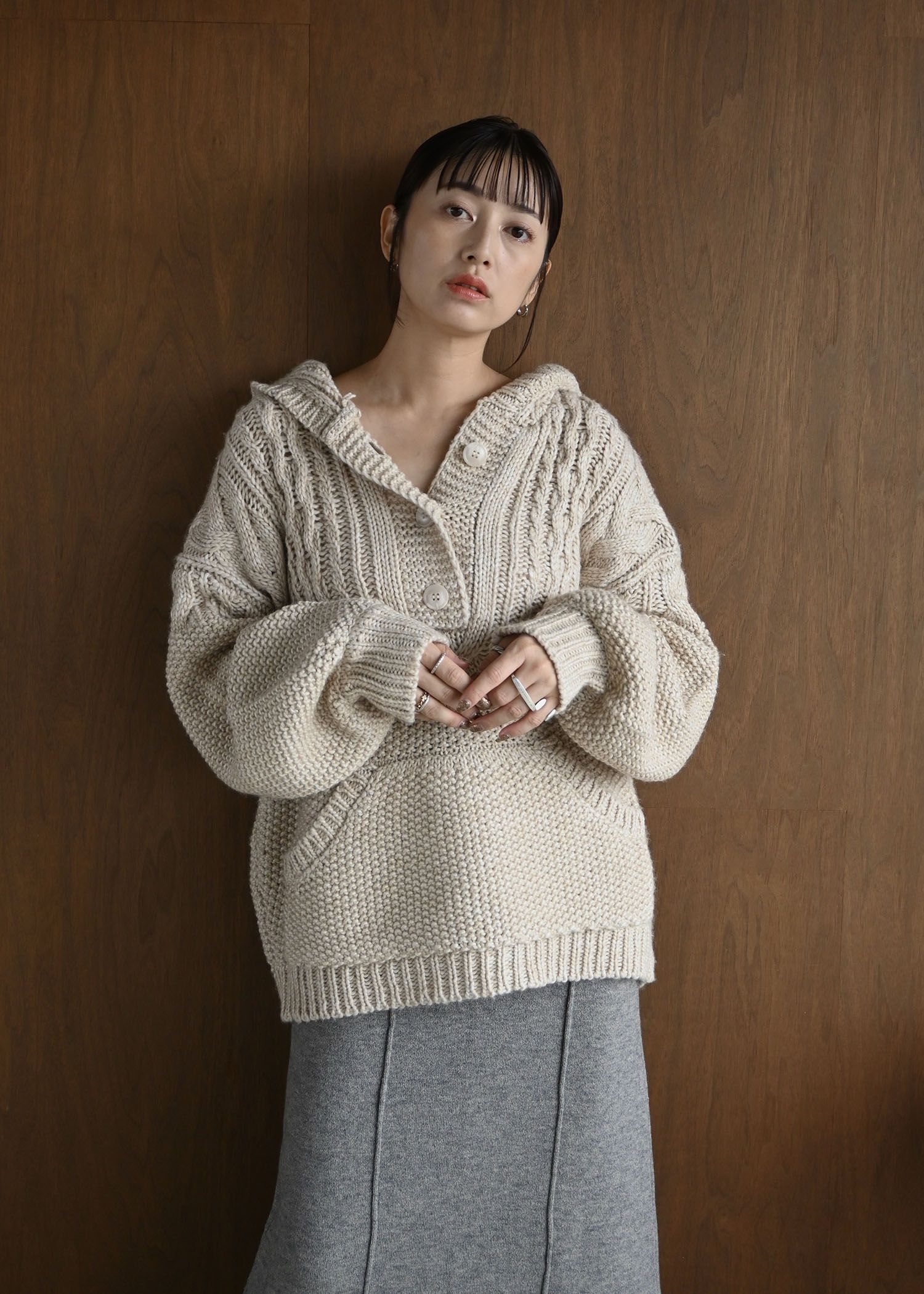skipper hoodie cable muff pocket knit