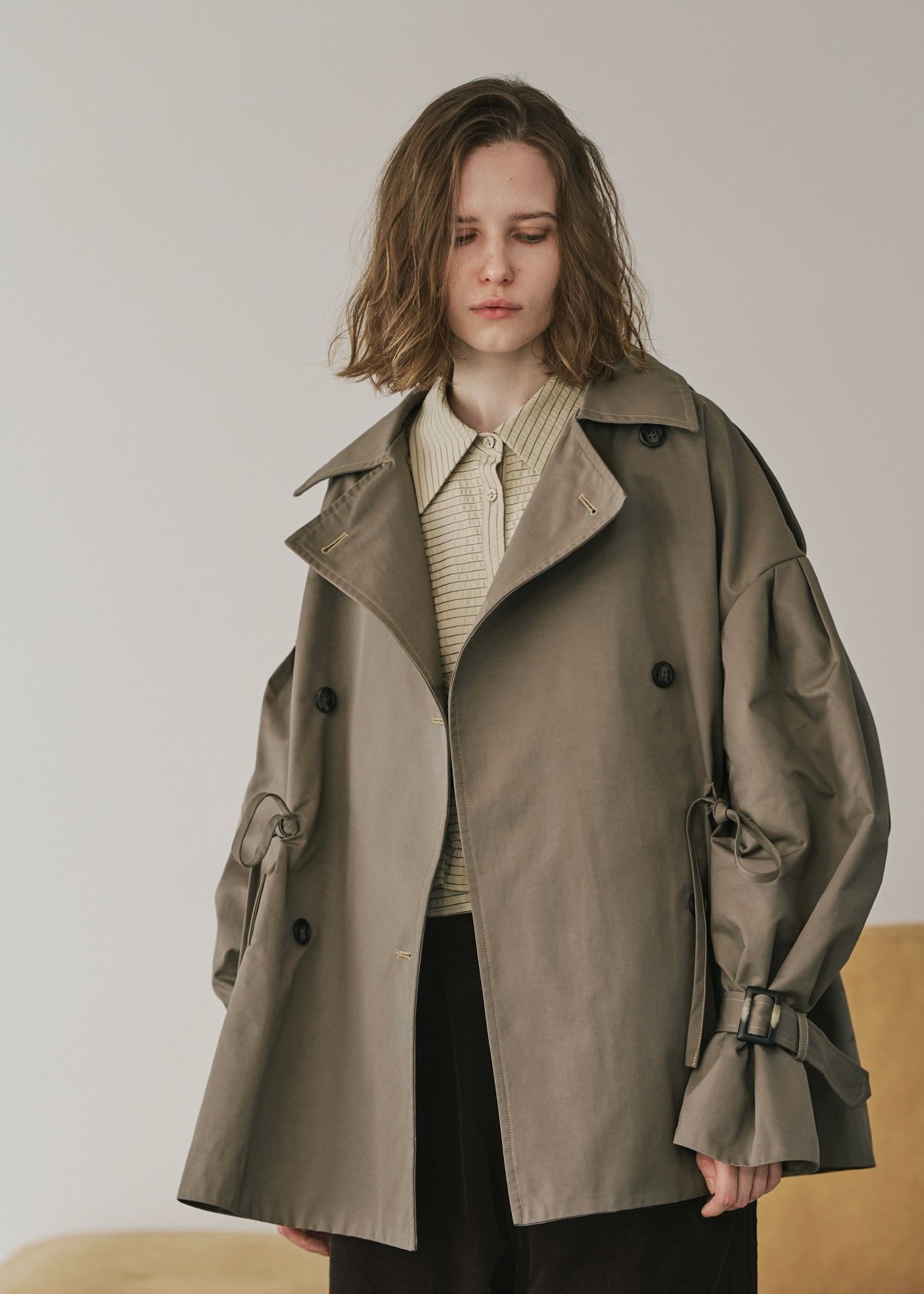 waist gather middle trench coat