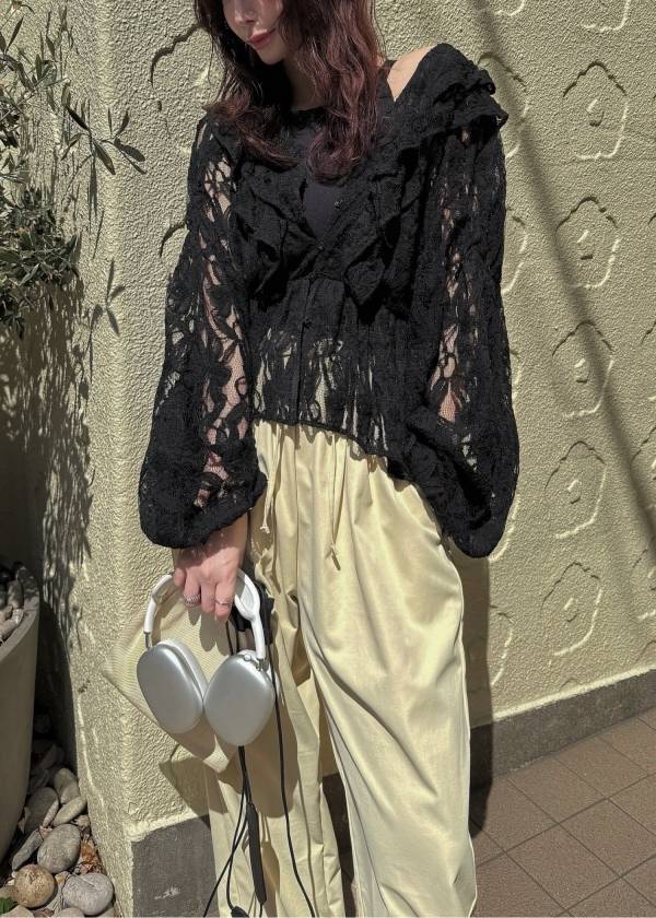 lace collar hem shoulder pintuck SH