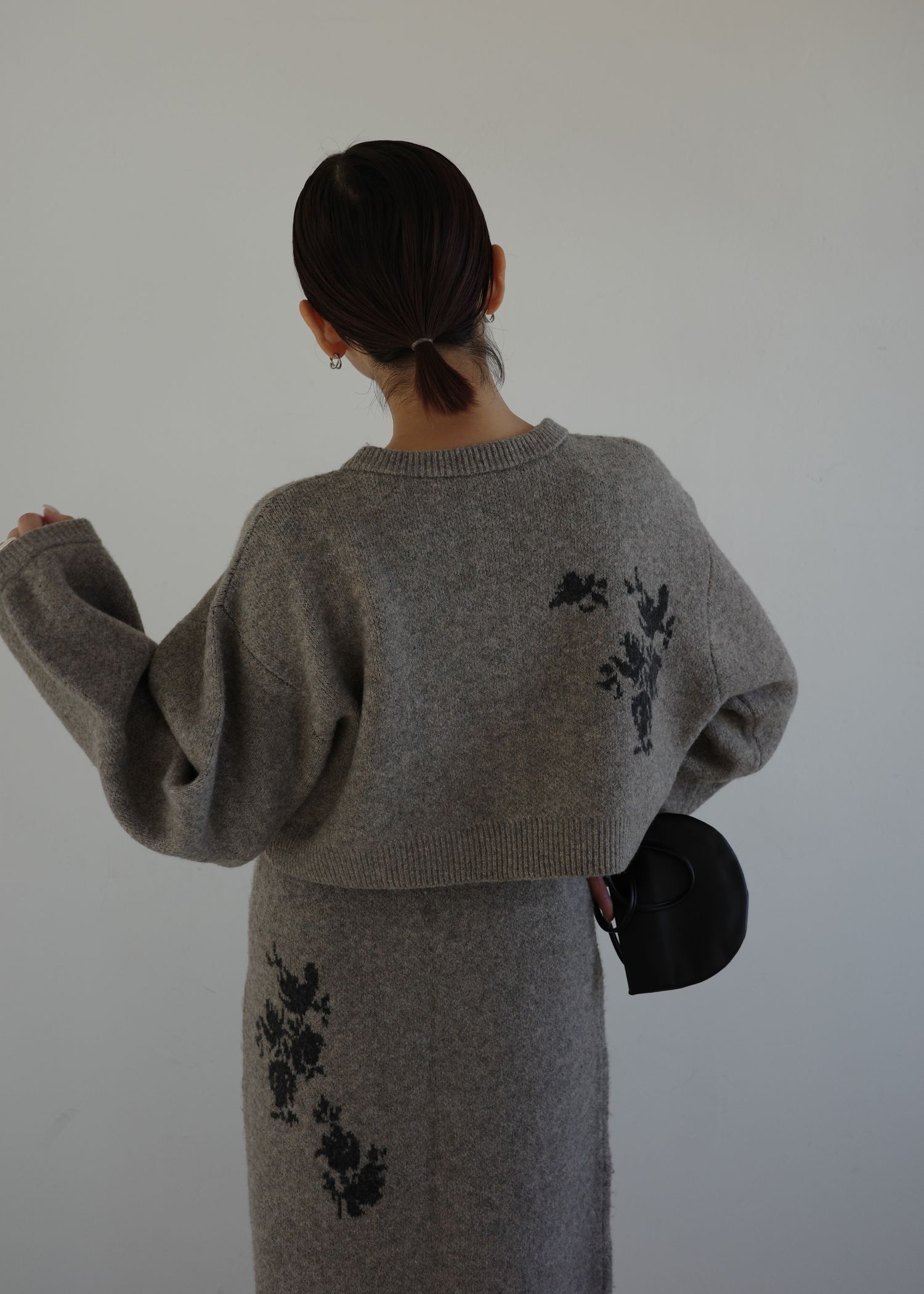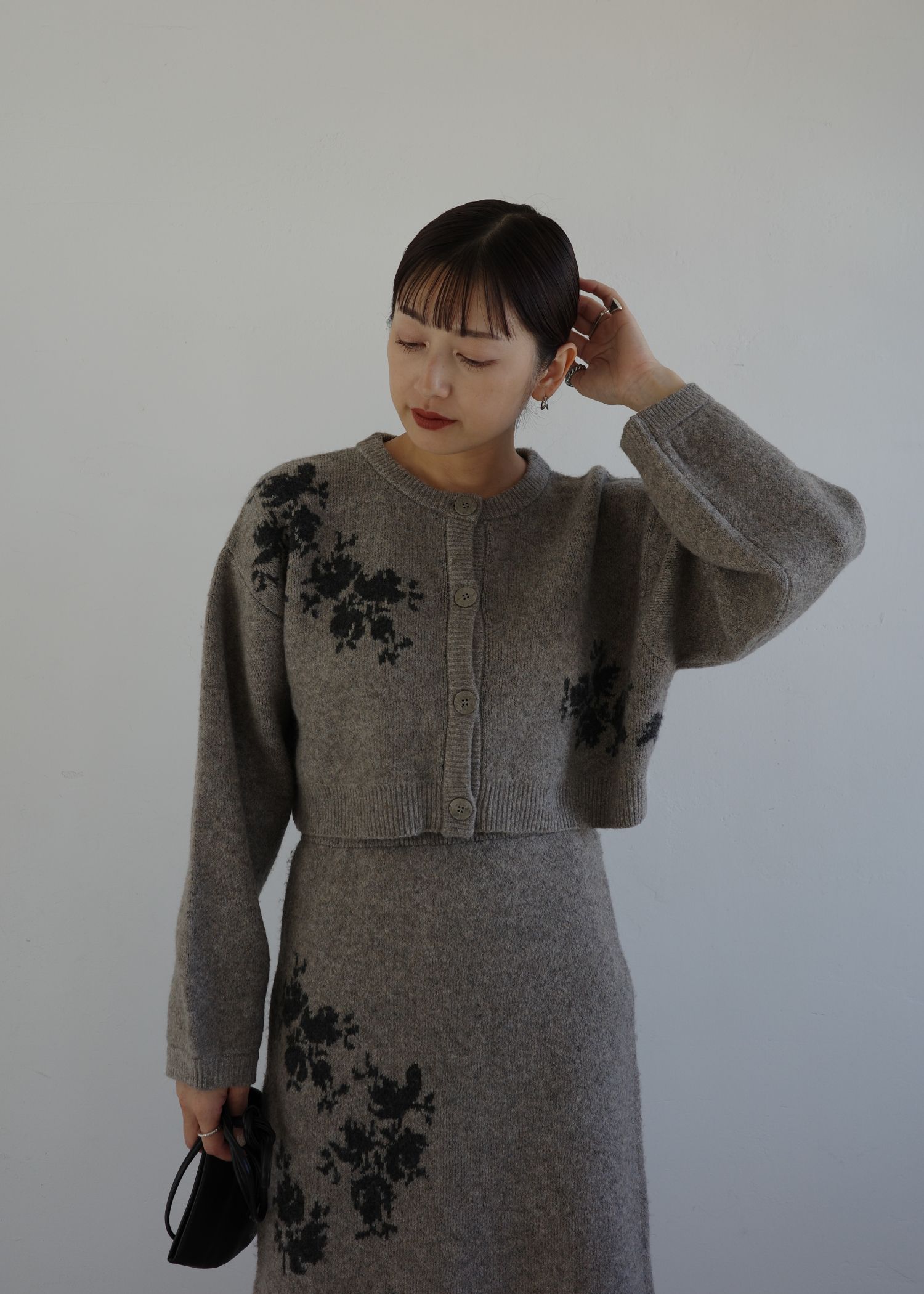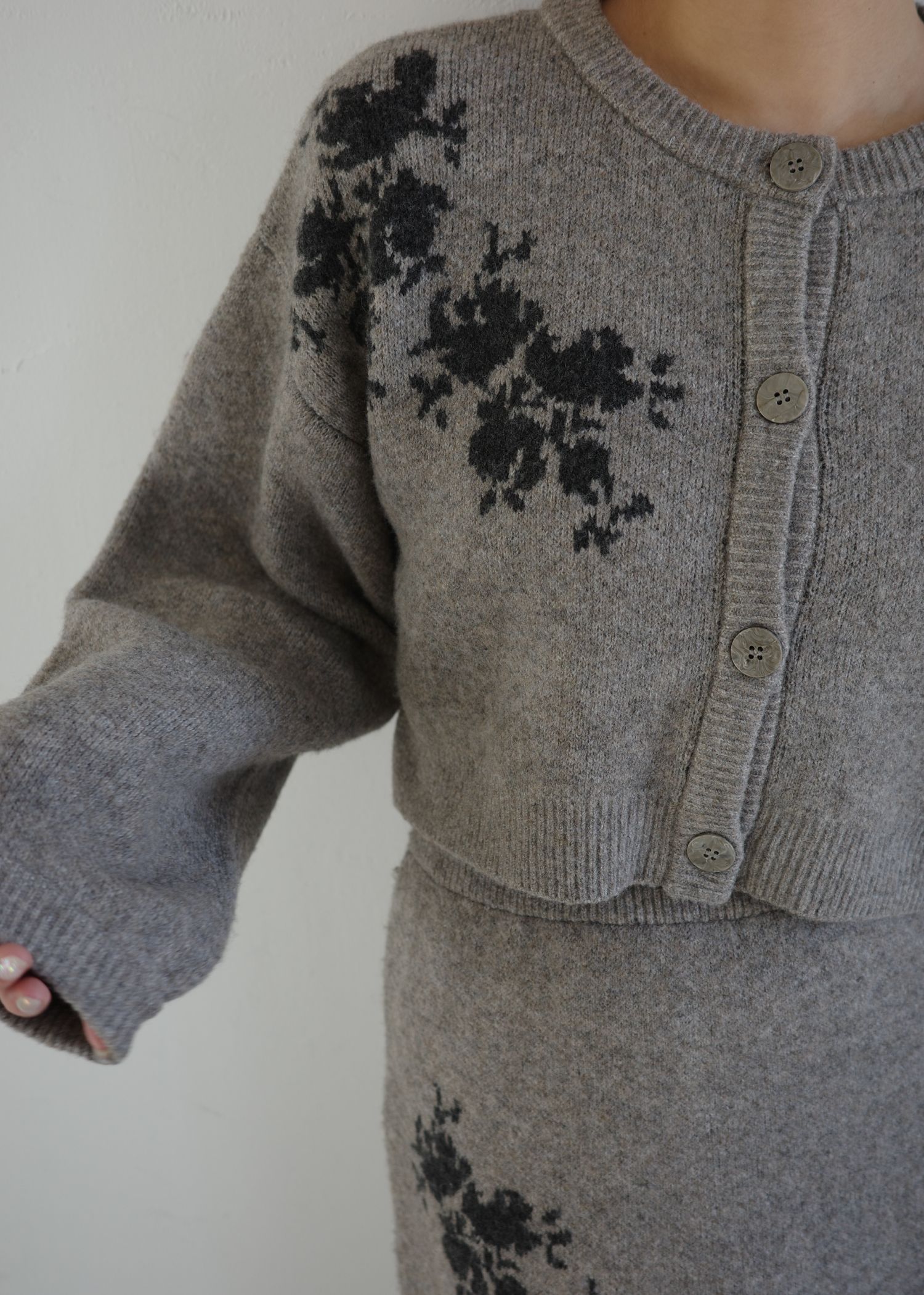 cropped flower jacquard knit cardigan