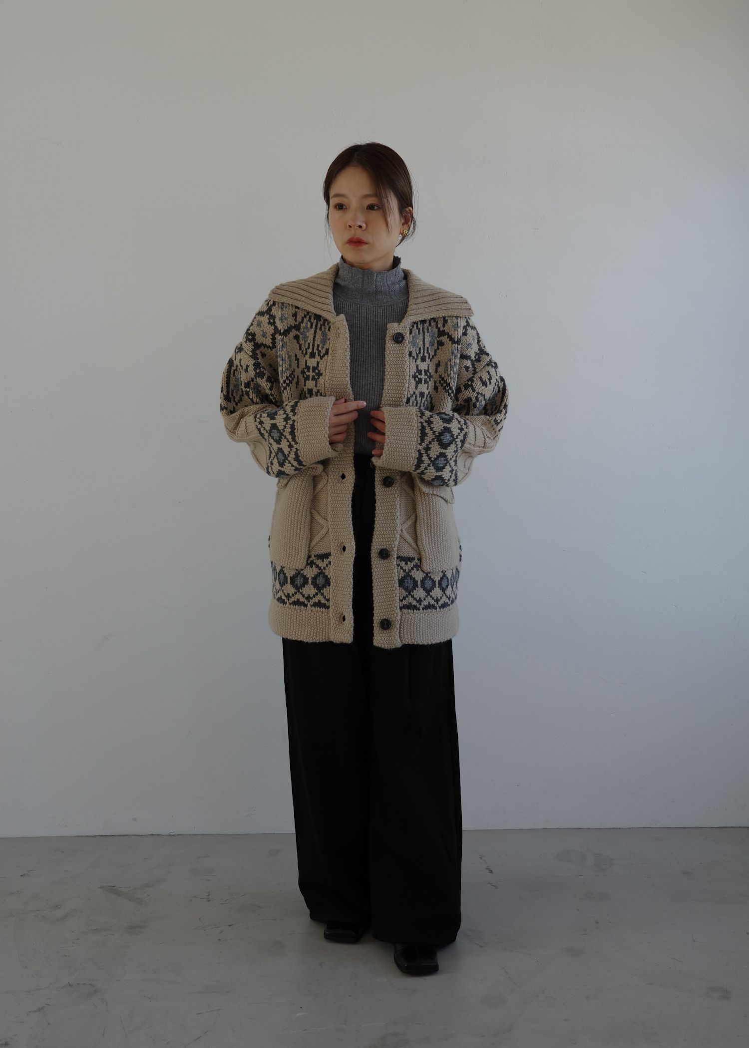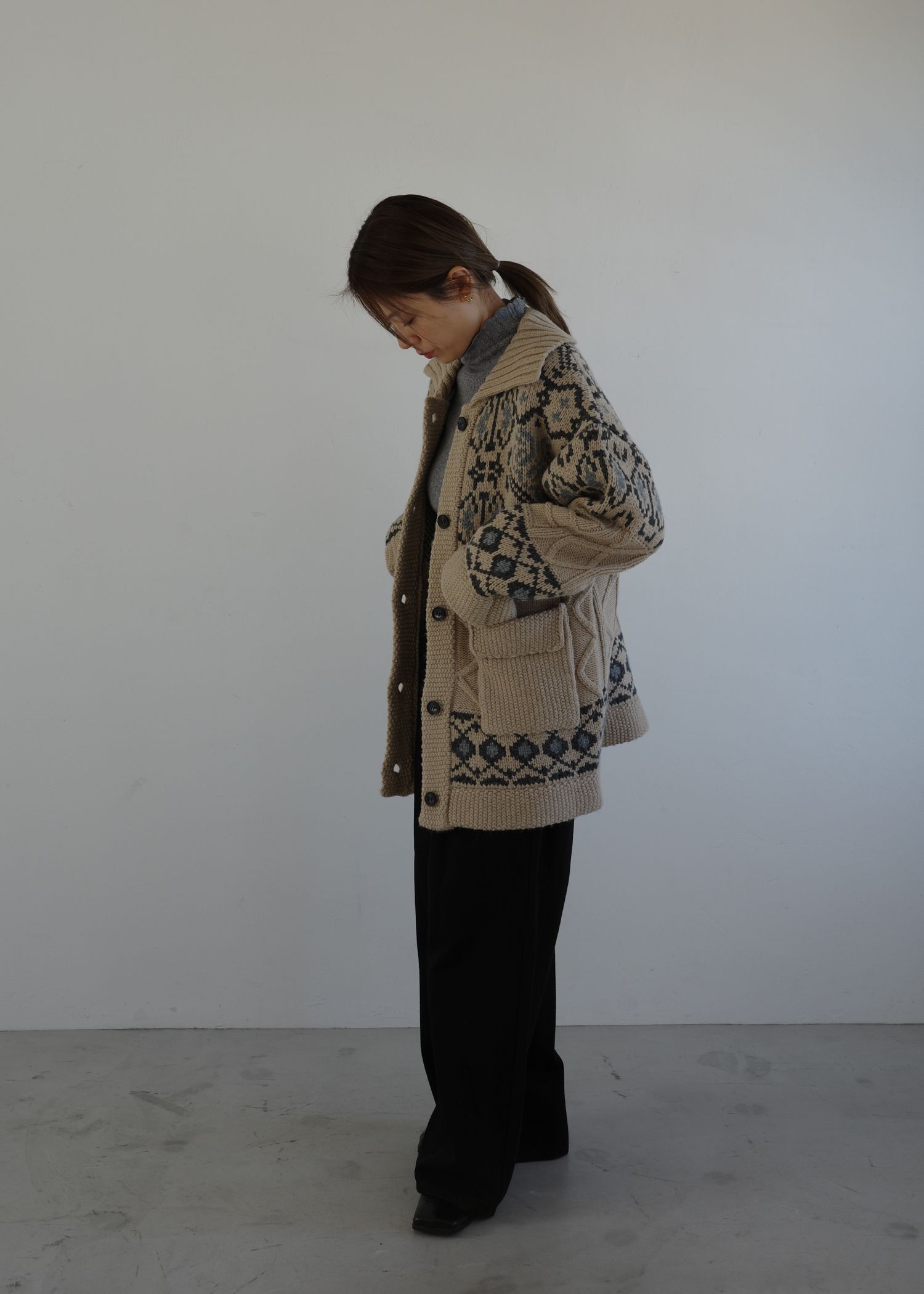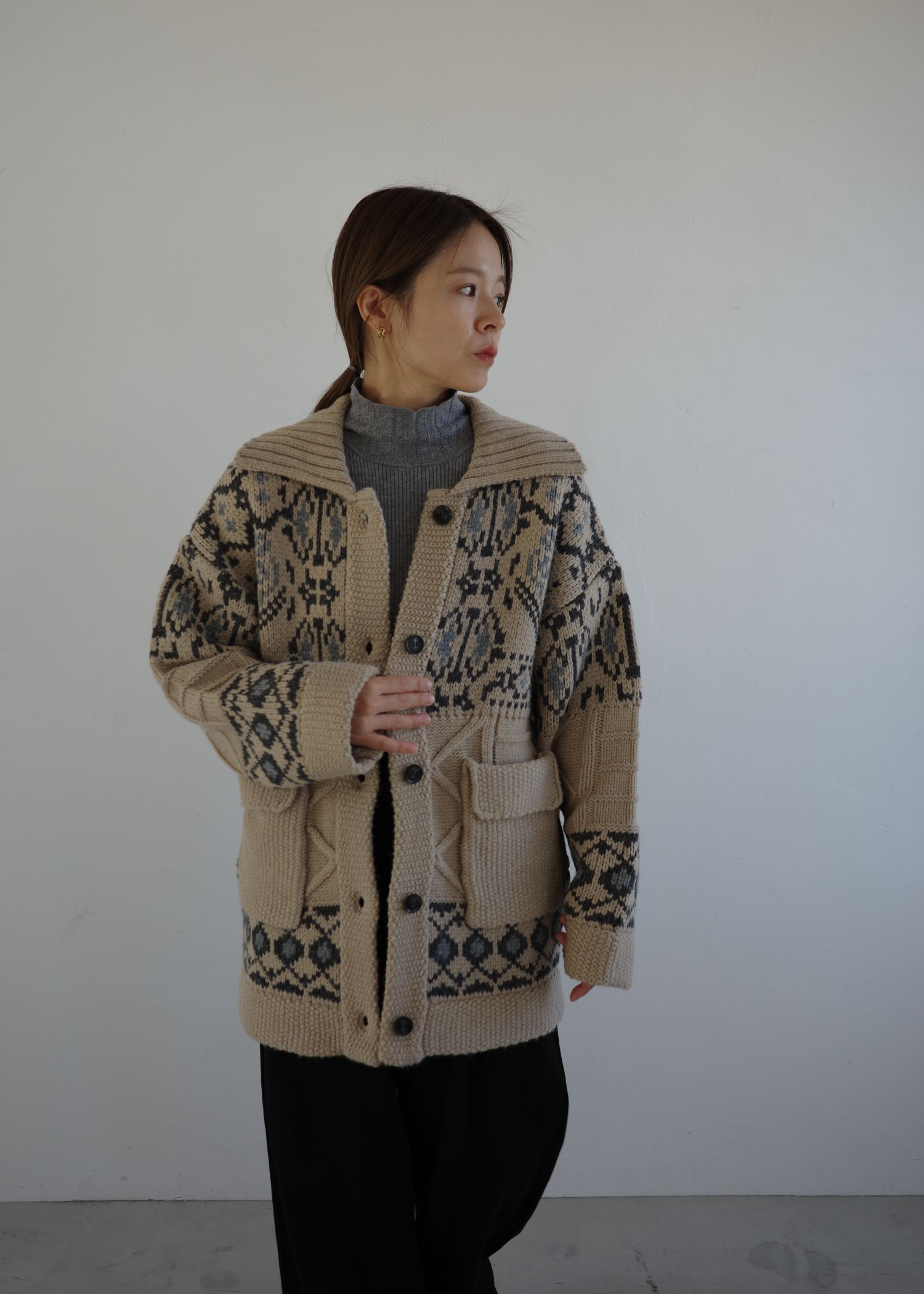 nordic pattern knit cowichan jacket
