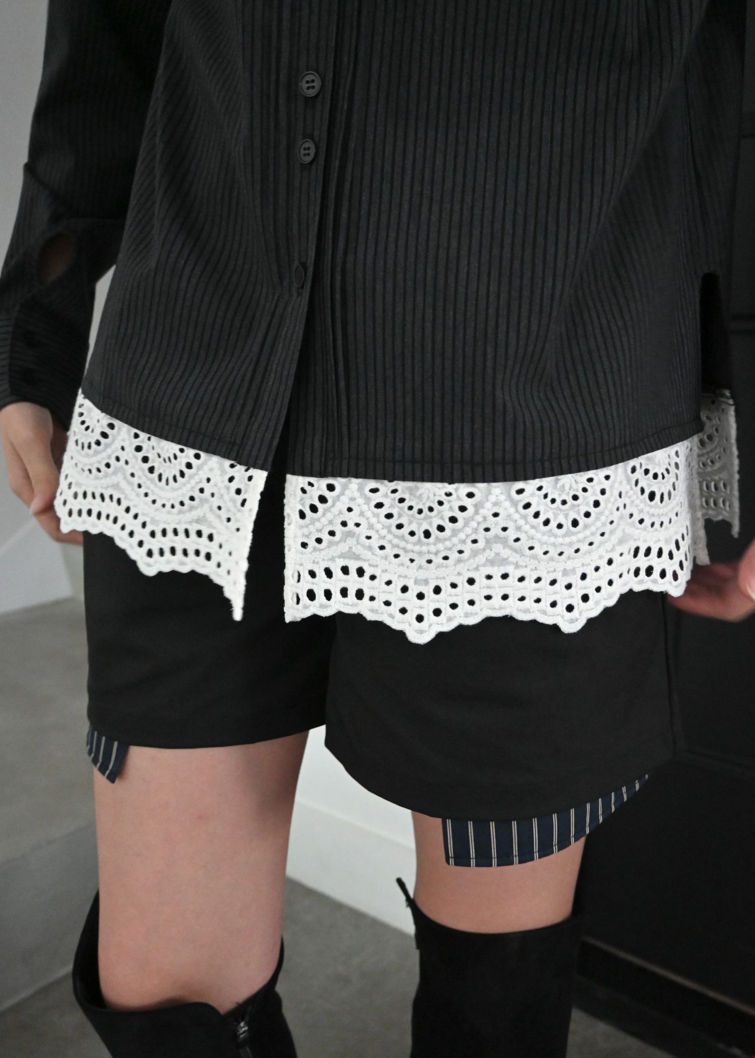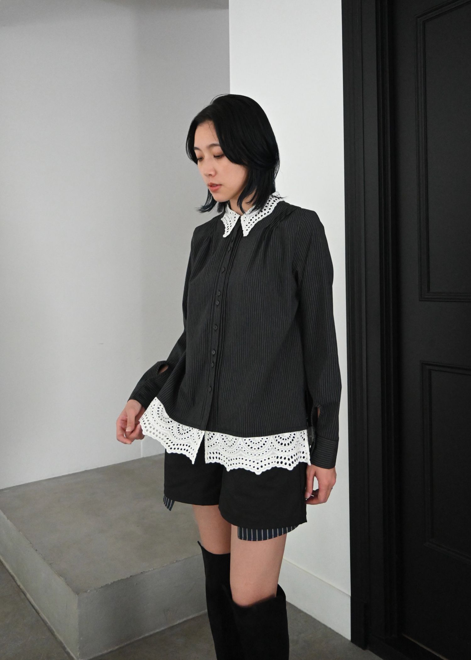 lace collar hem shoulder pintuck SH
