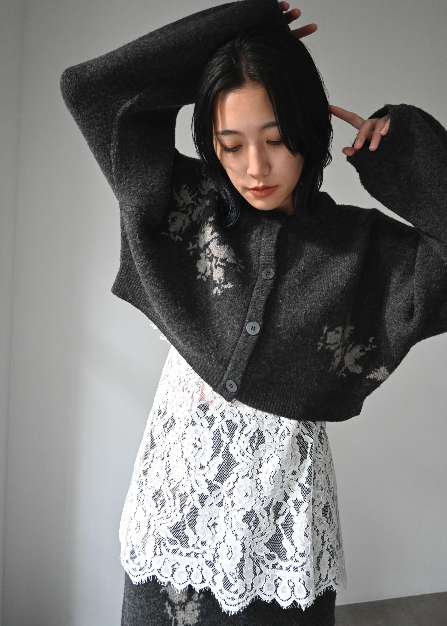 cropped flower jacquard knit cardigan