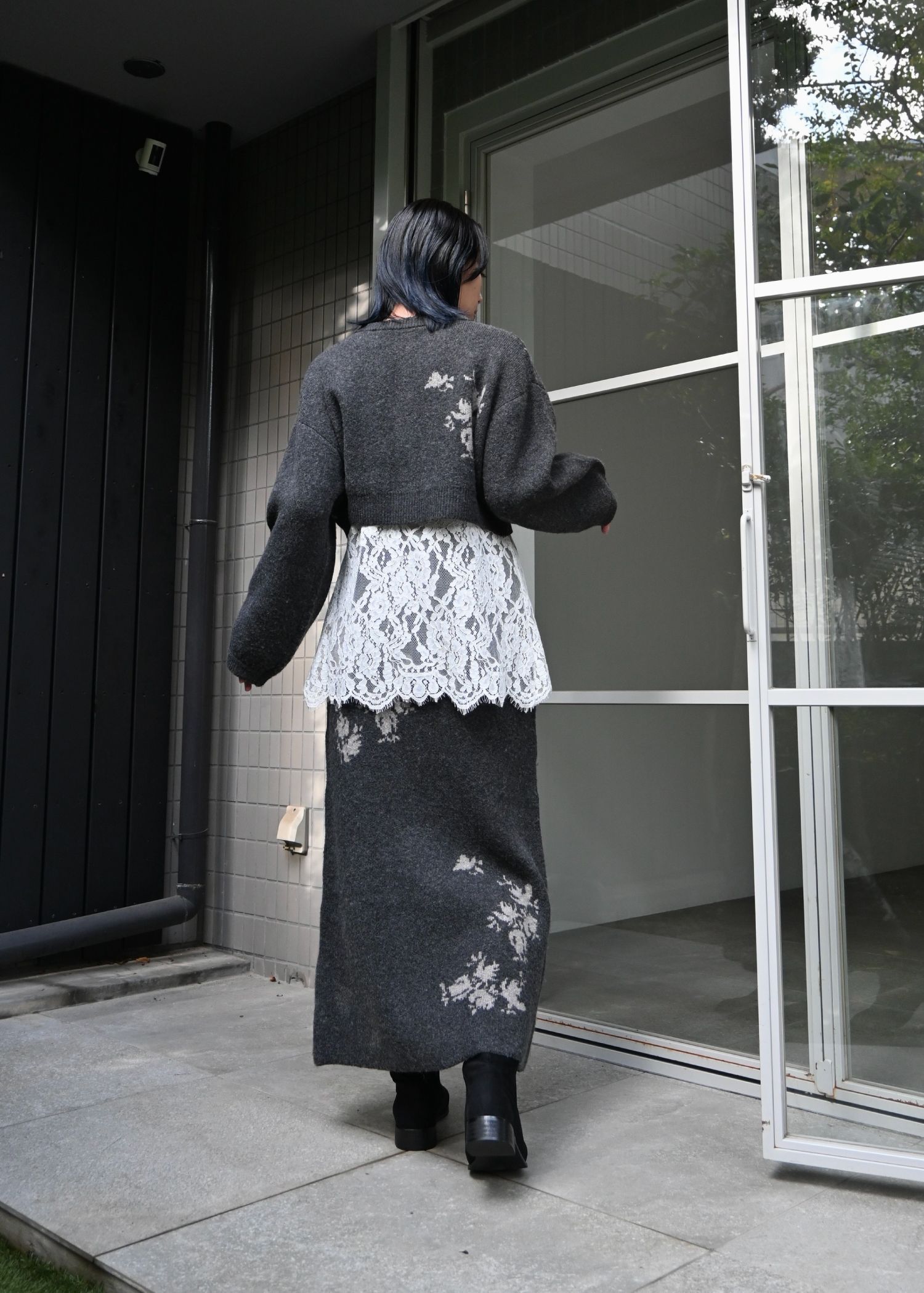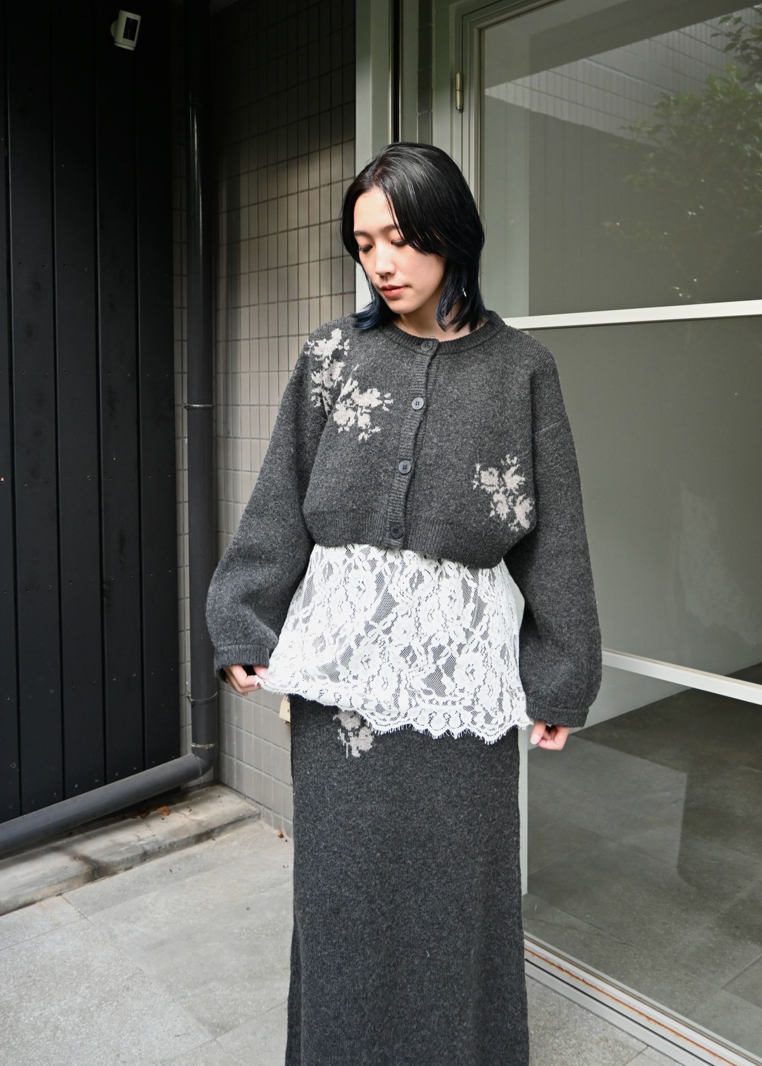 flower jacquard pencil knit SK