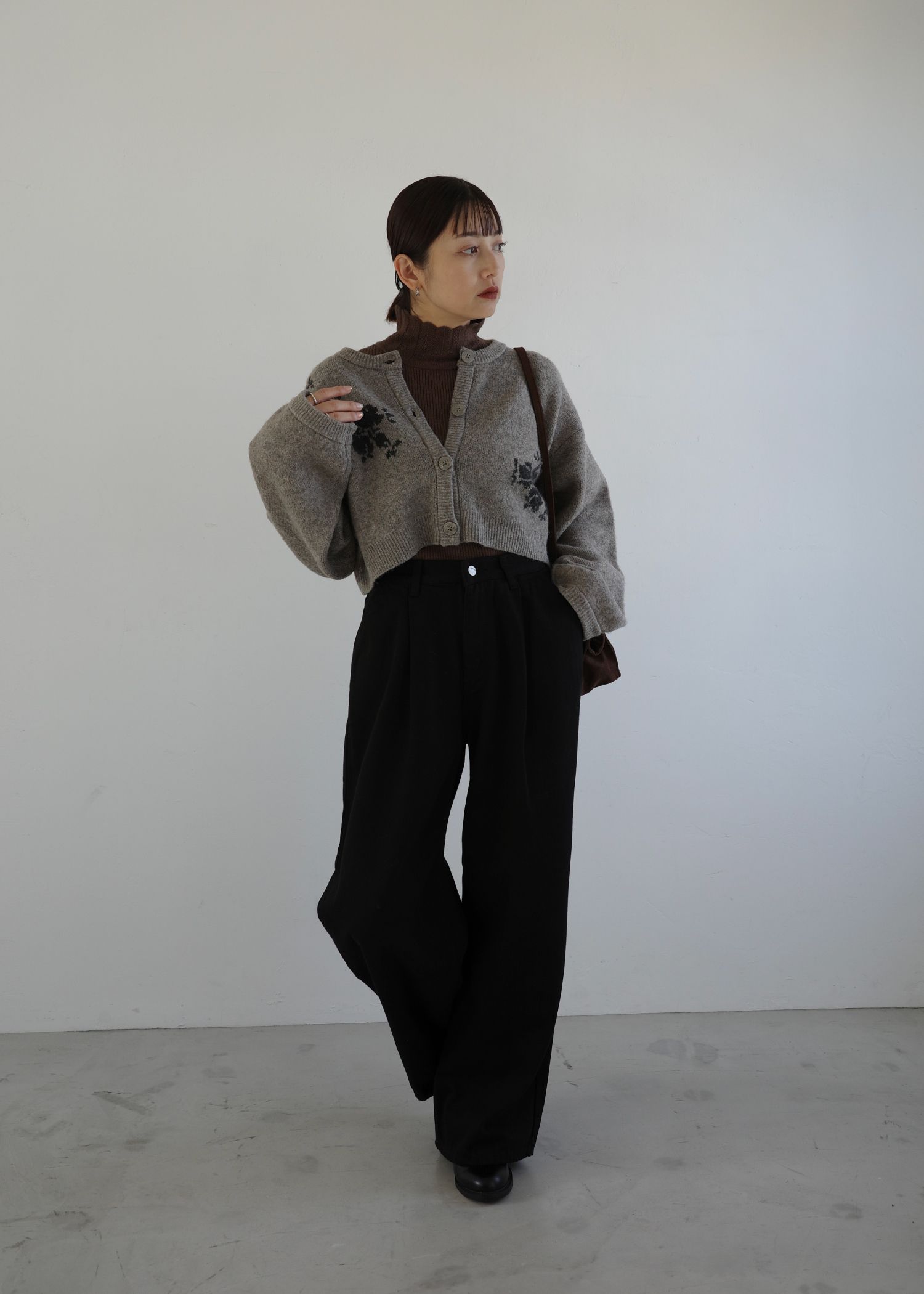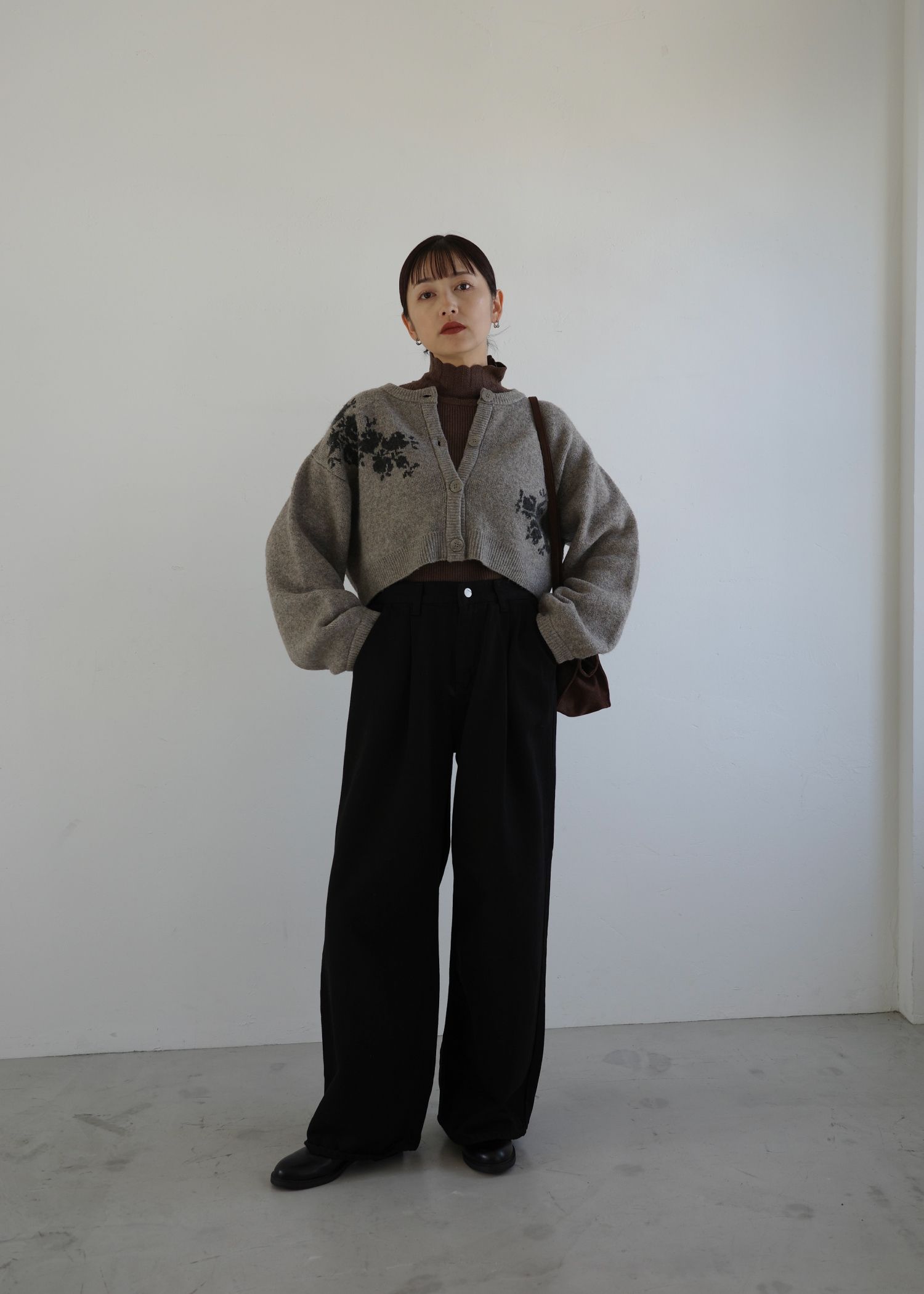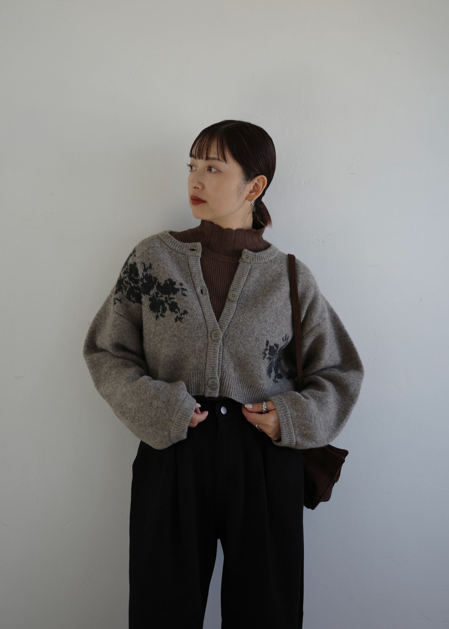 cropped flower jacquard knit cardigan