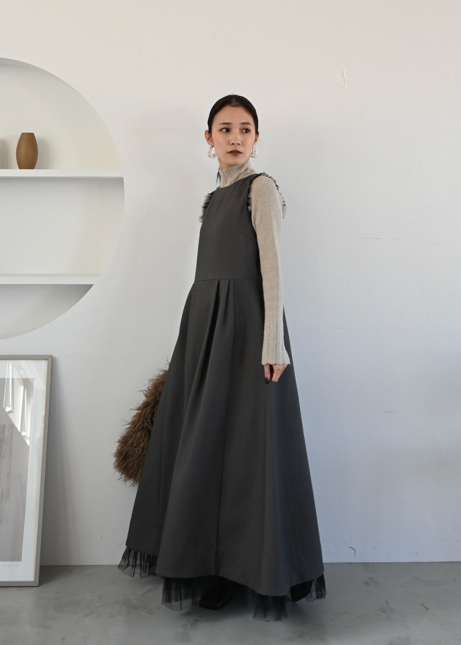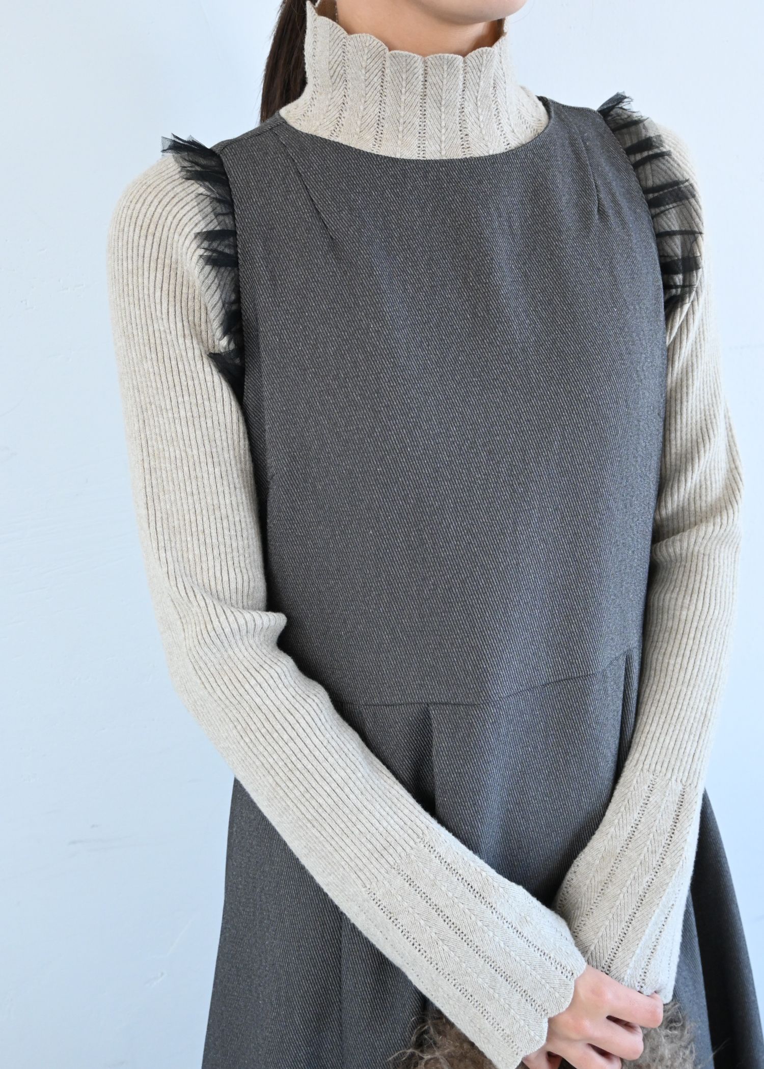 scallop high neck flare sleeve knit