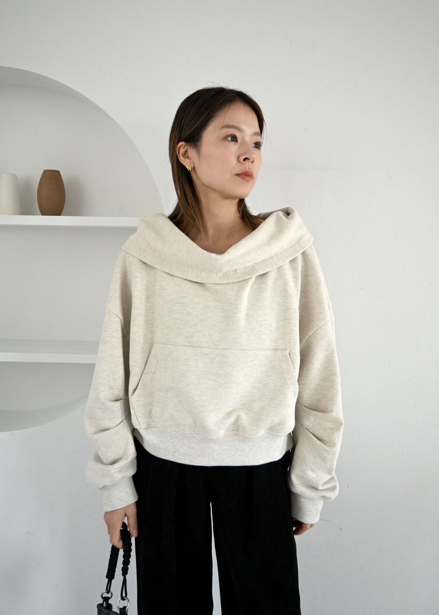off shoulder cropped hoodie sweat