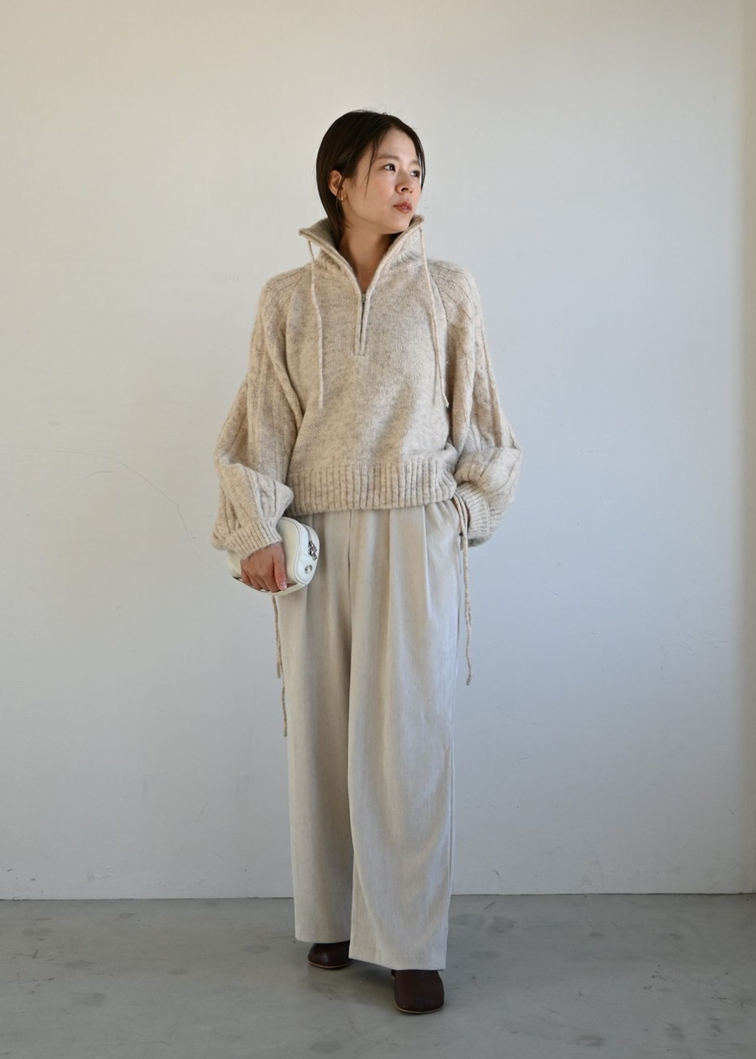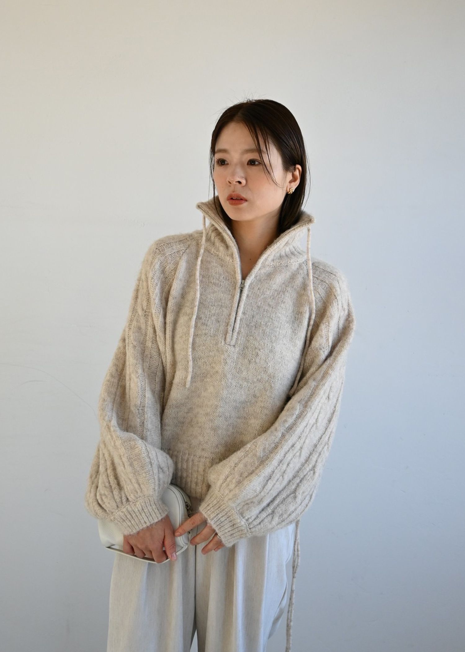 half zip cropped knit pullover