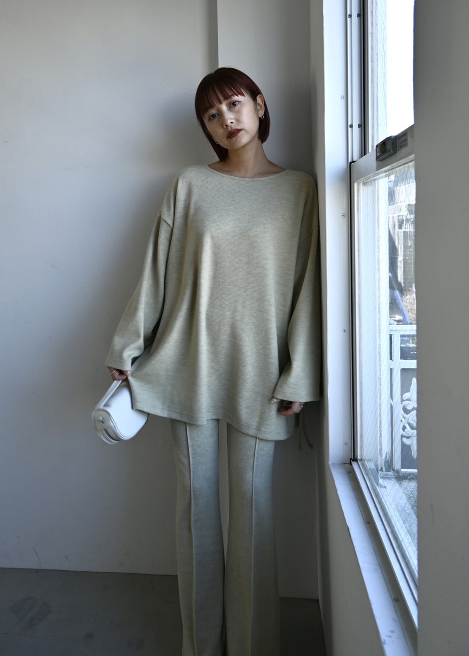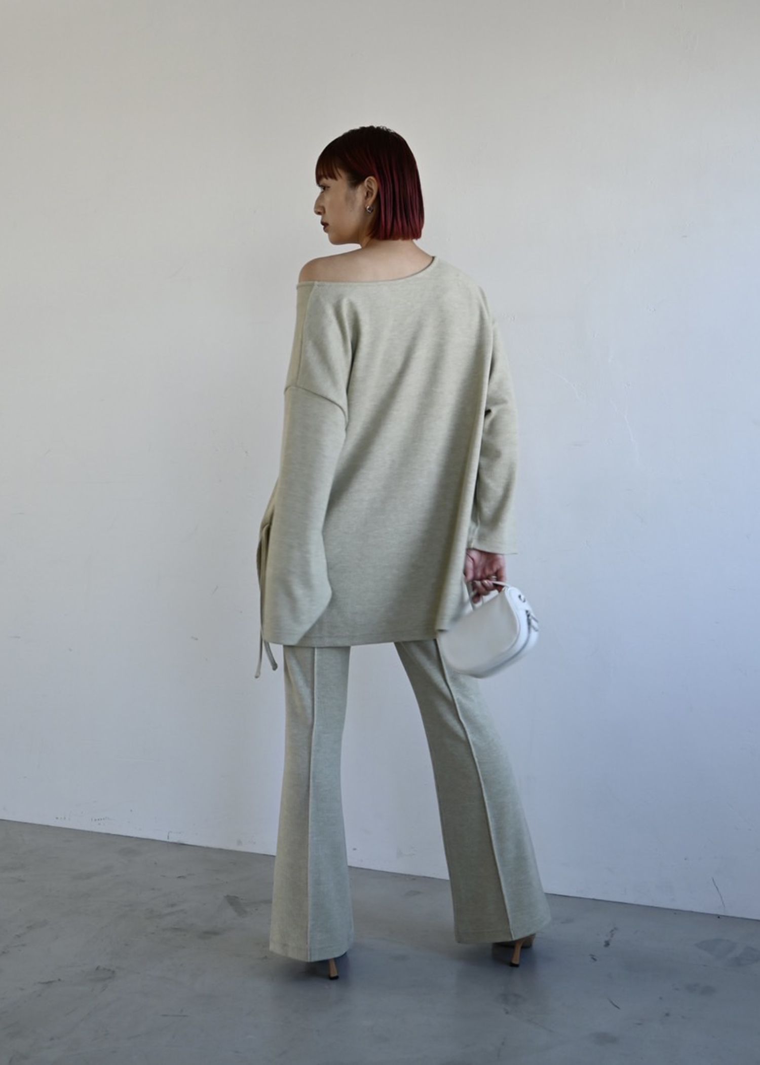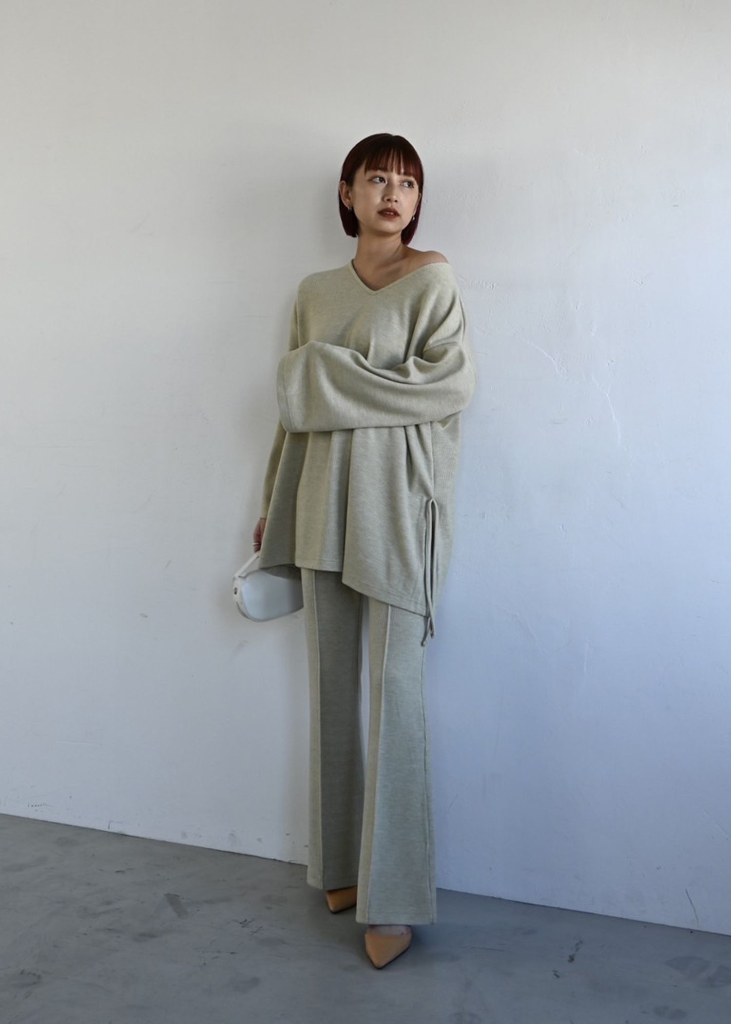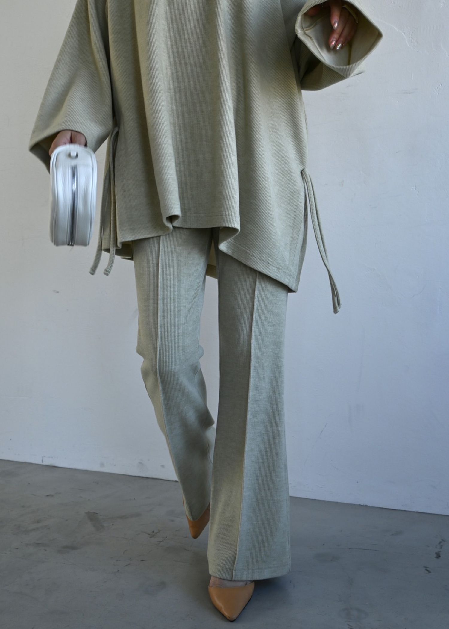 side ribbon tuck bell sleeve rib tops