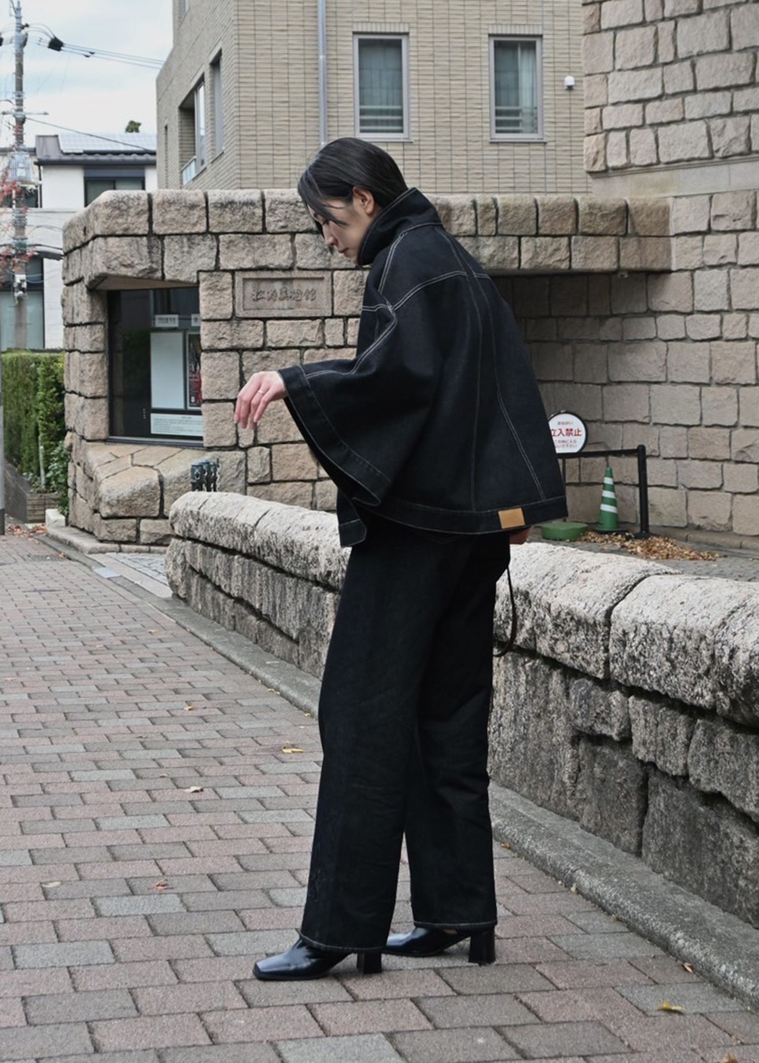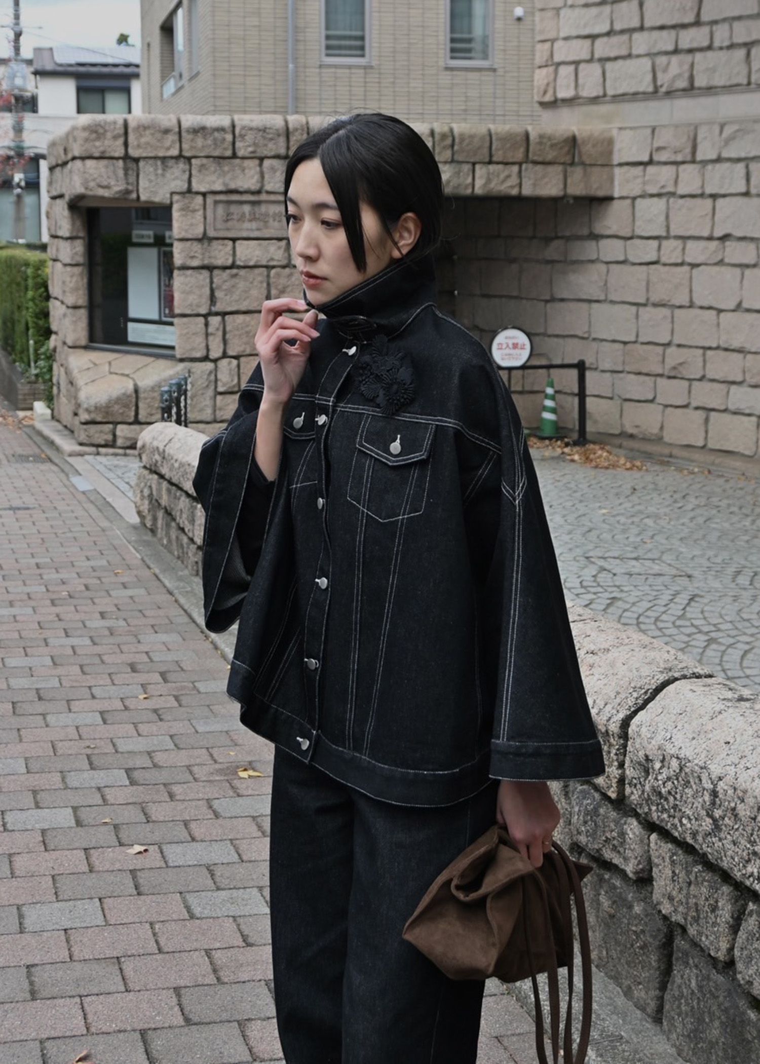 trucker detail denim poncho JK