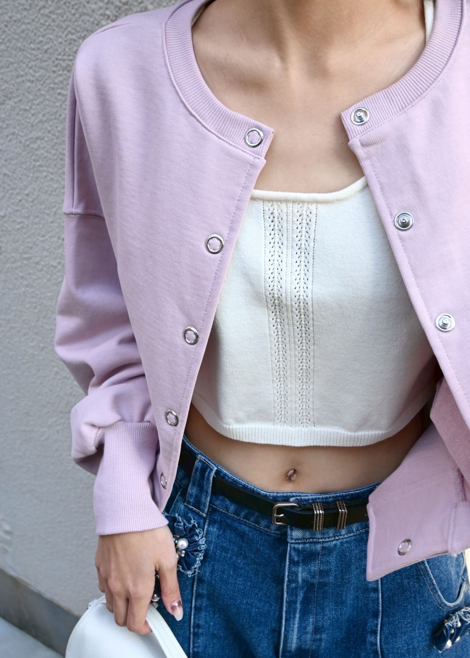 ring button short cropped sweat