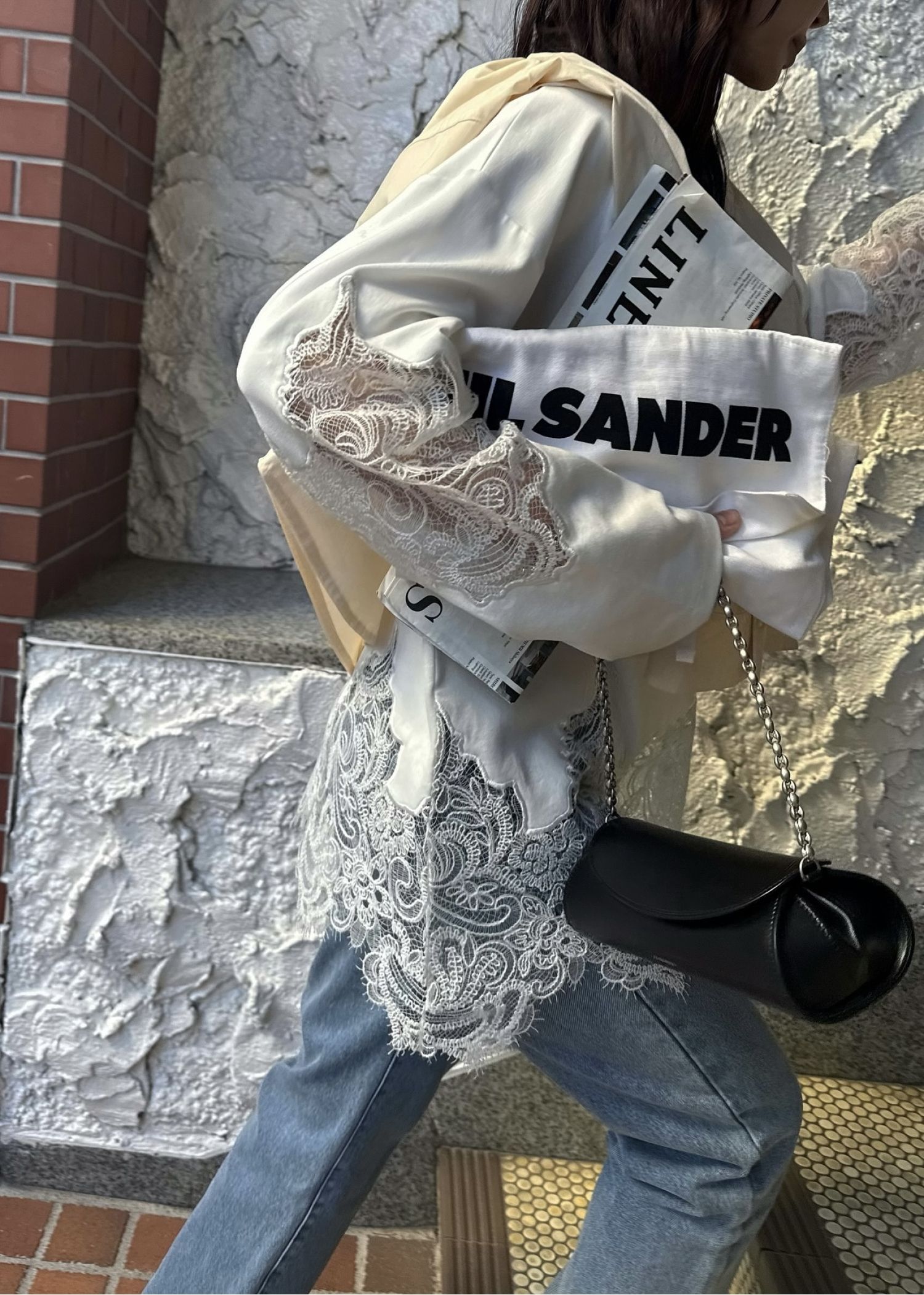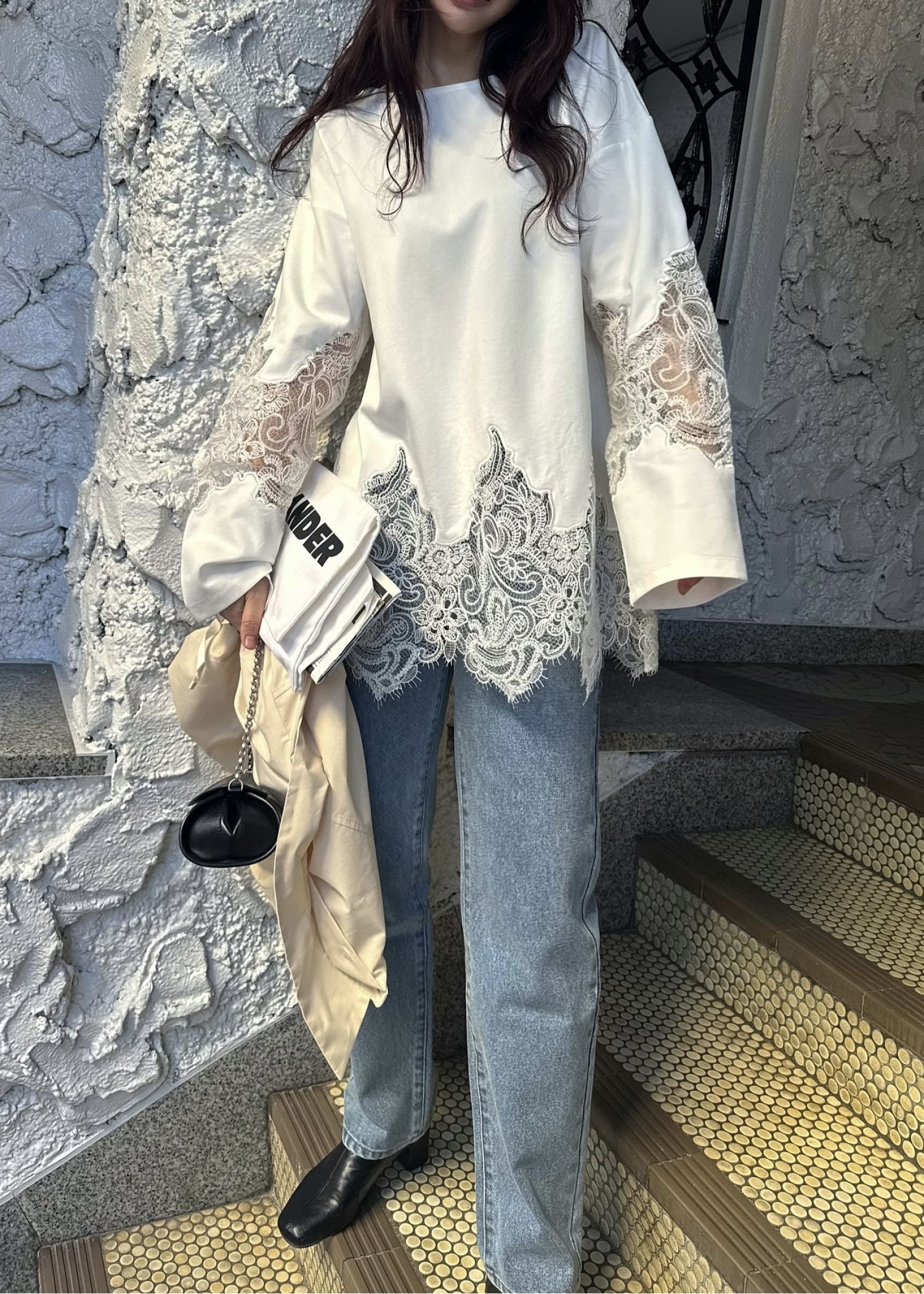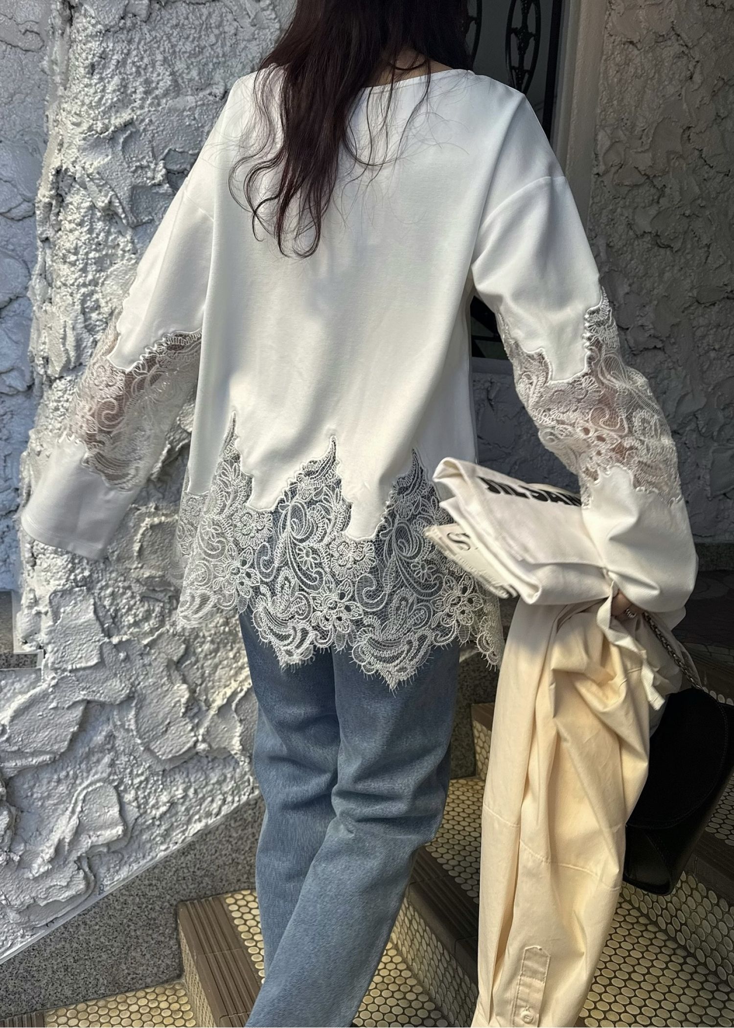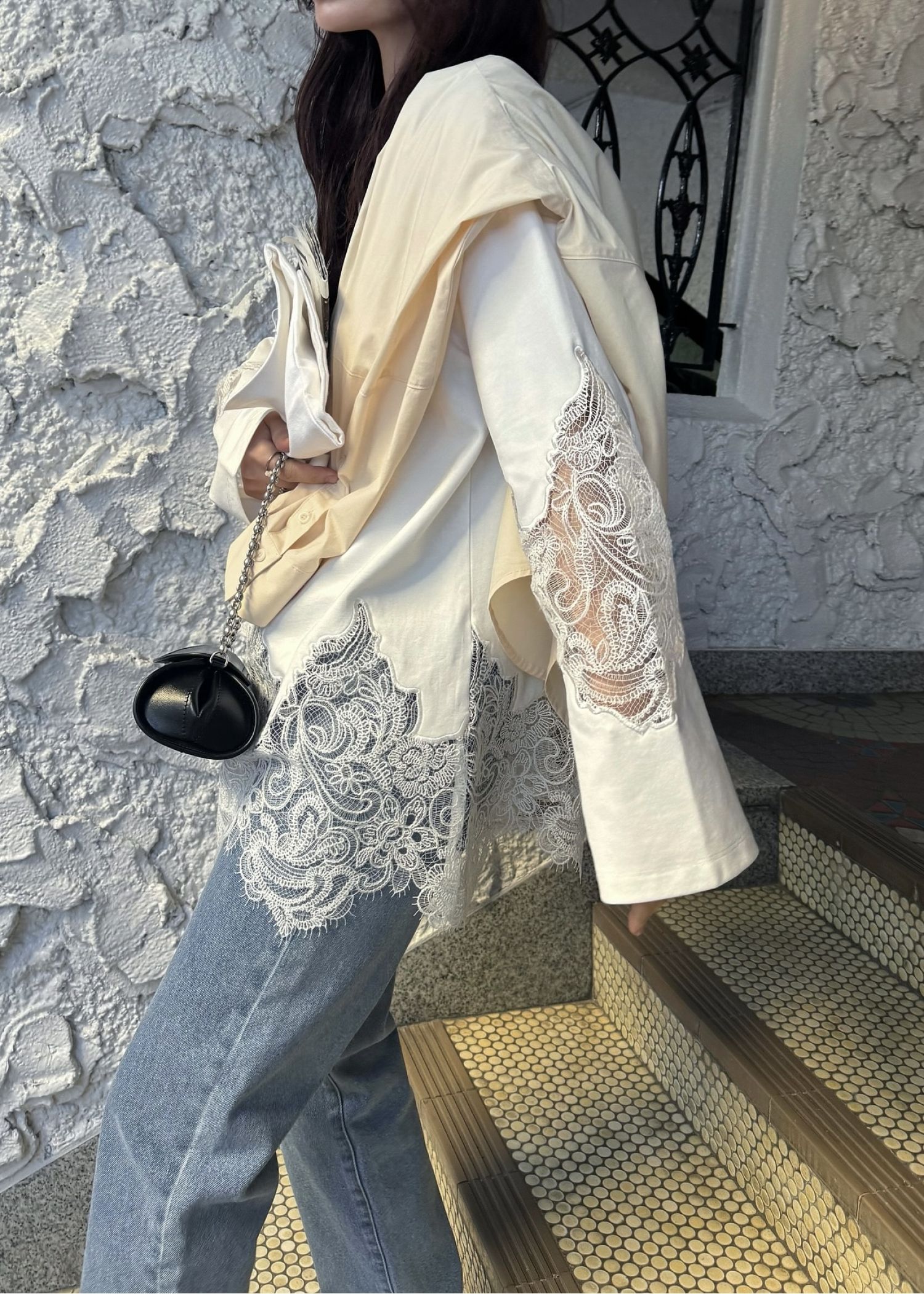 scallop lace sheer panel cut & sewn tops