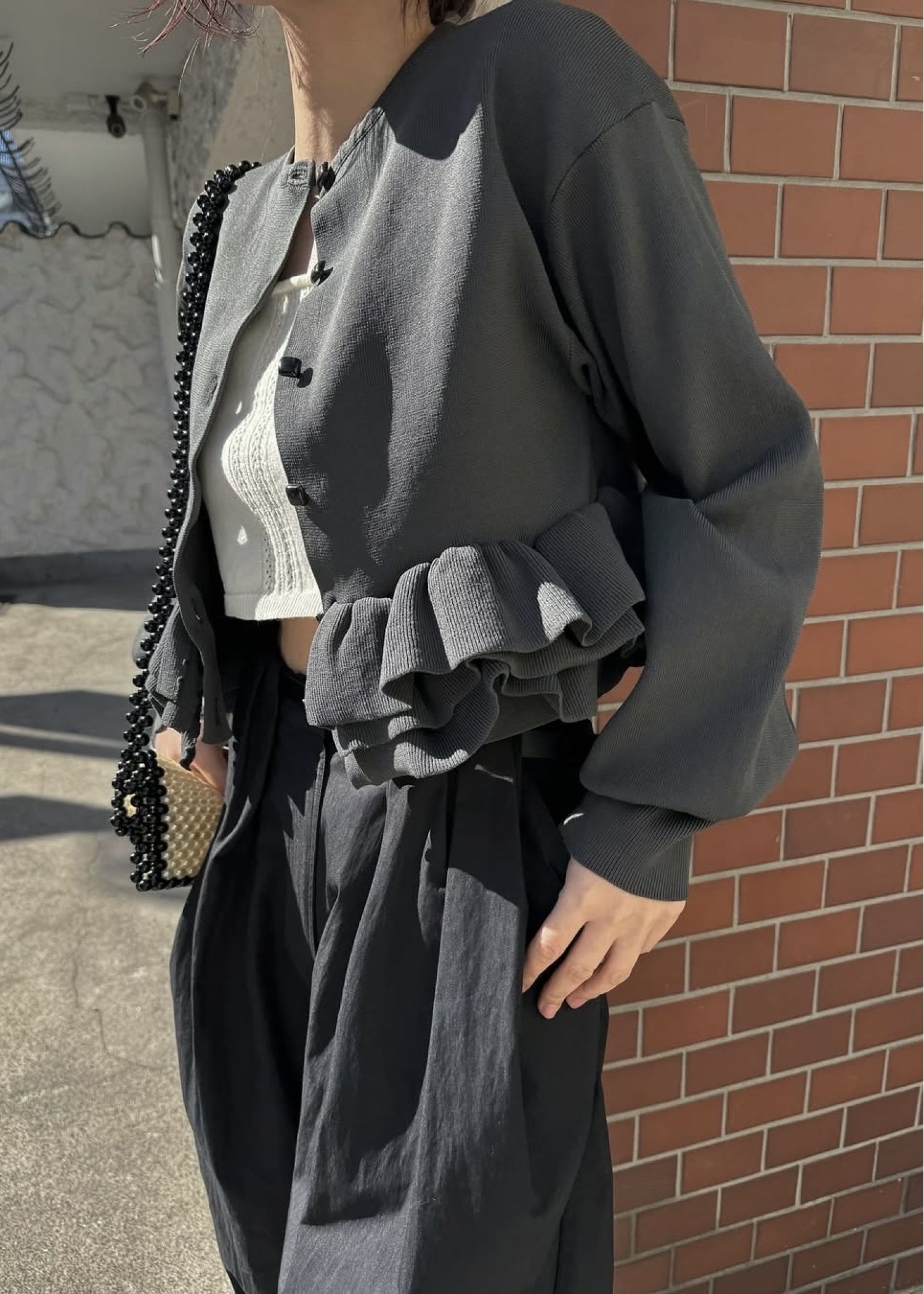 hem ruffle frill knit cardigan