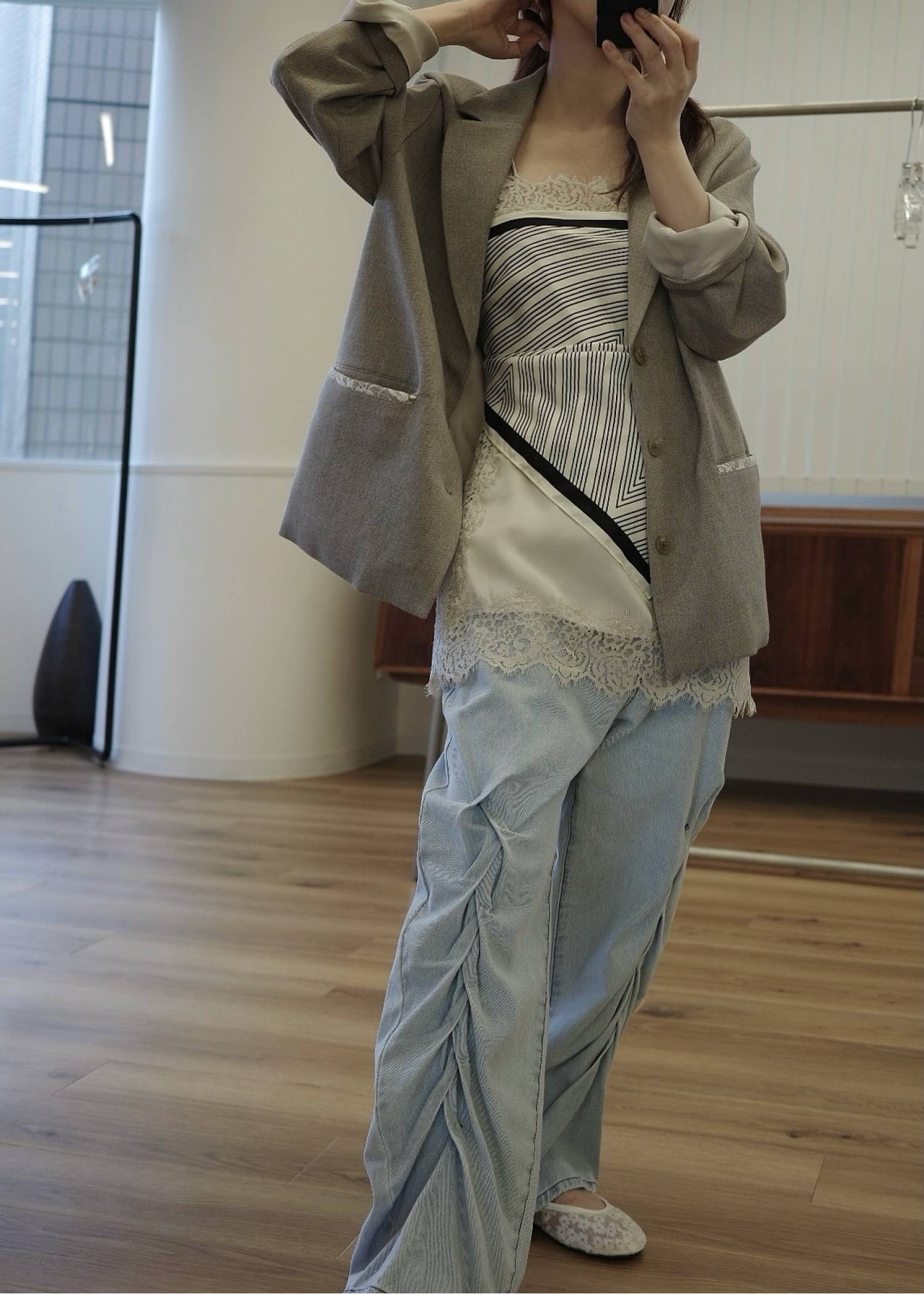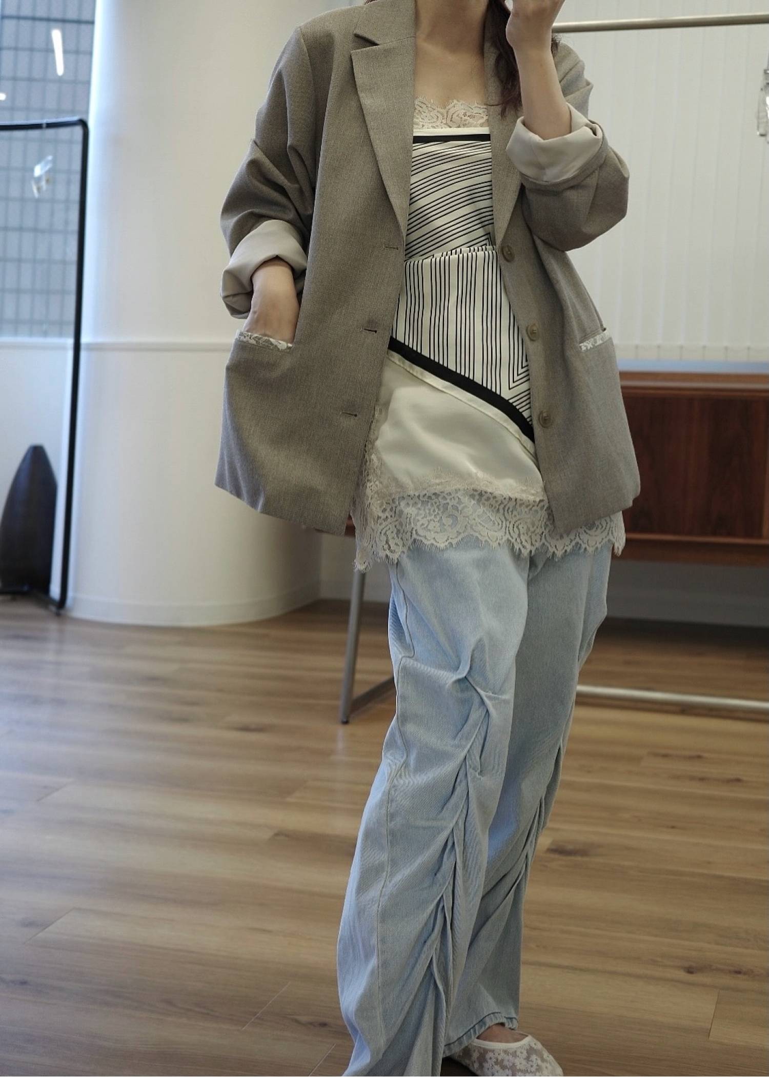 smocking design loose silhouette denim