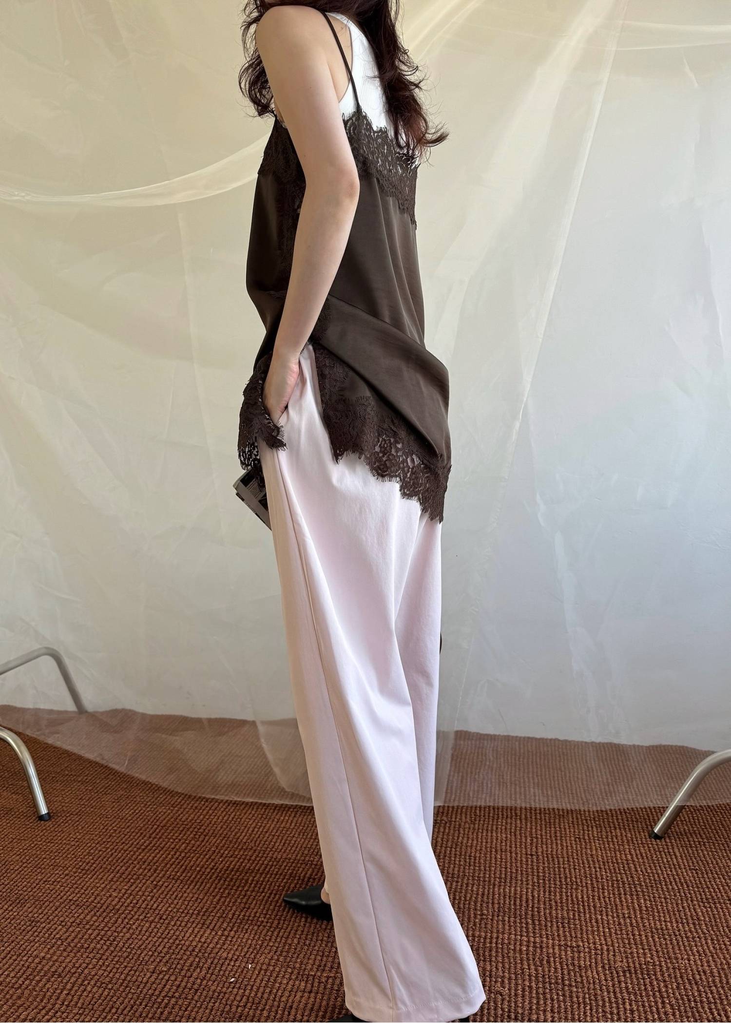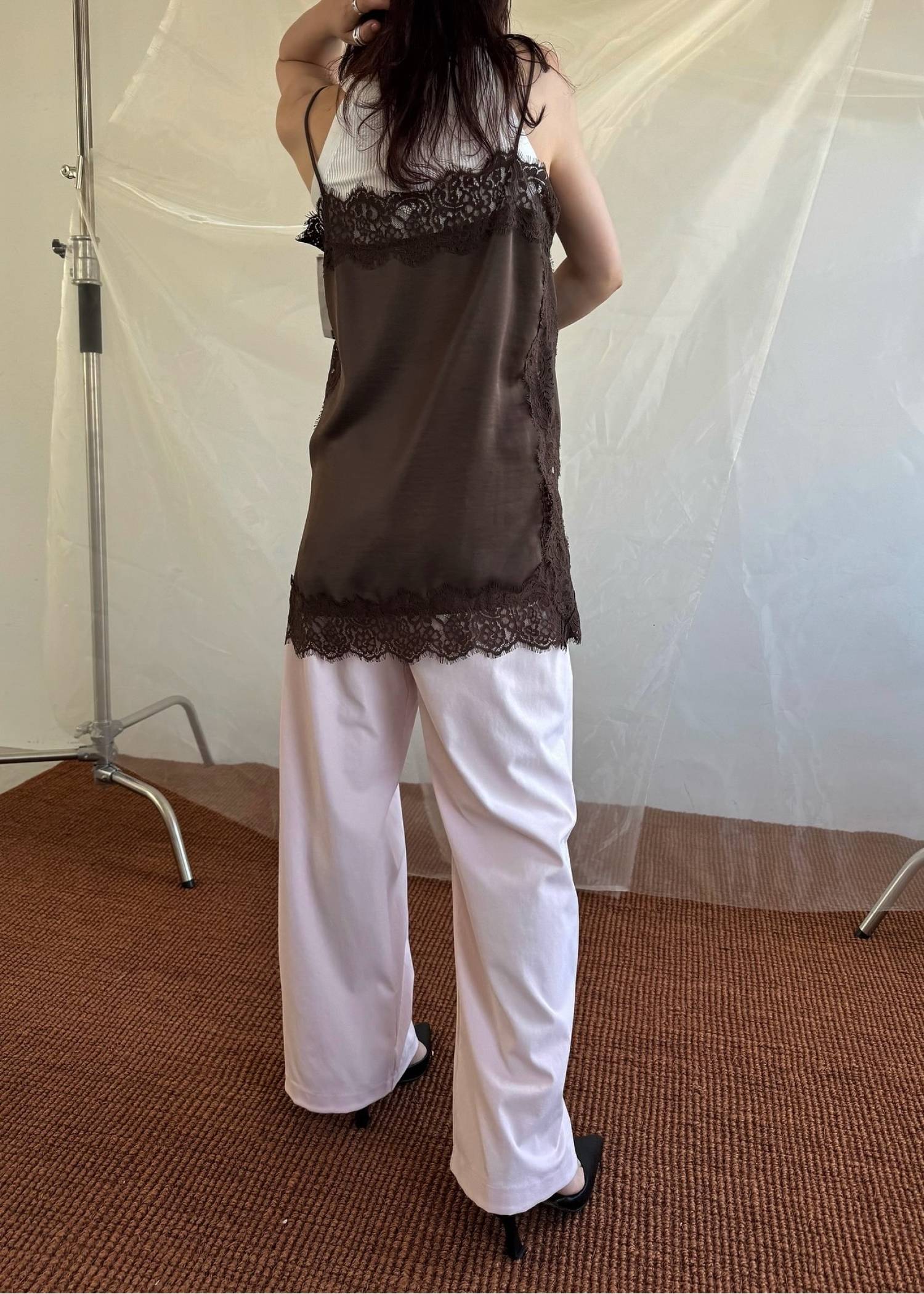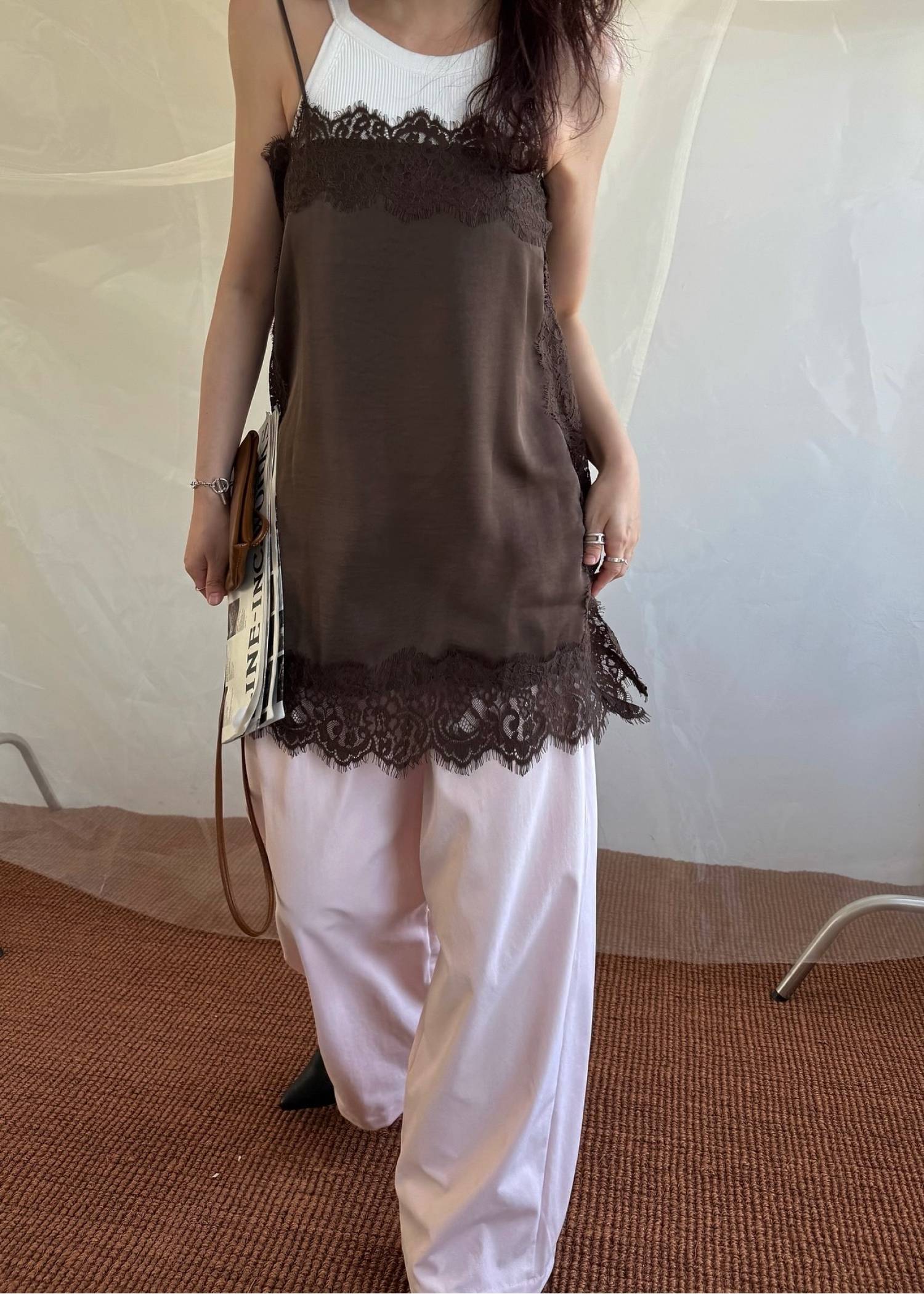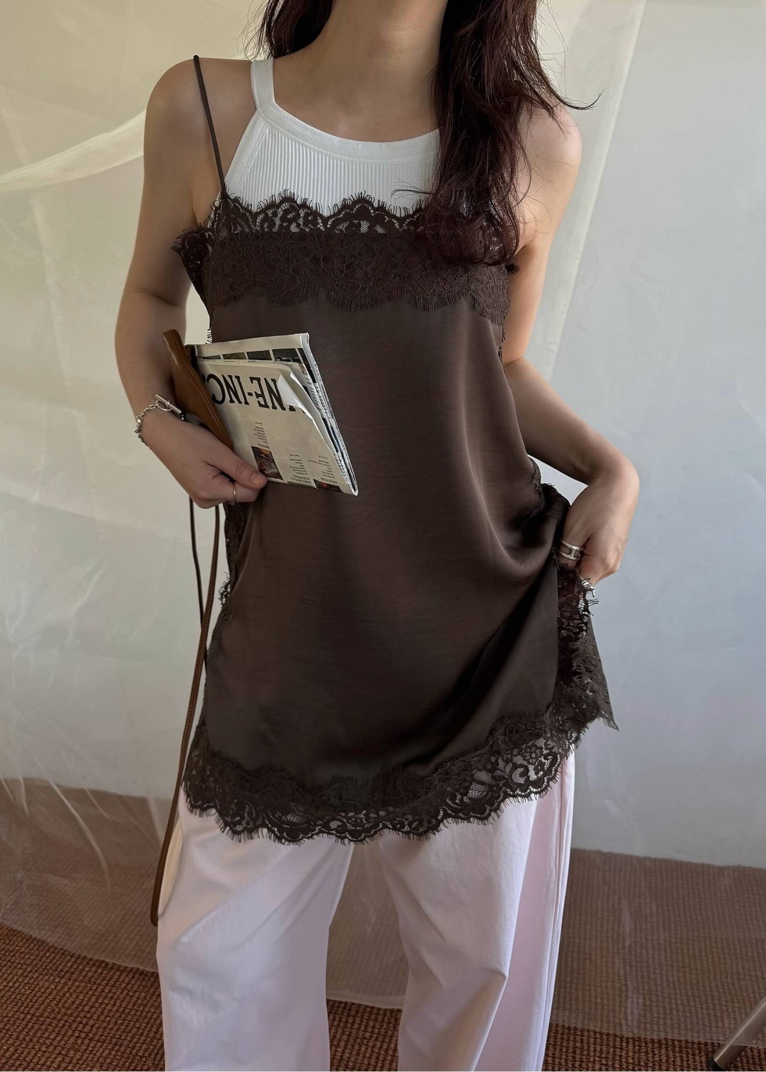 side lace satin square camisole