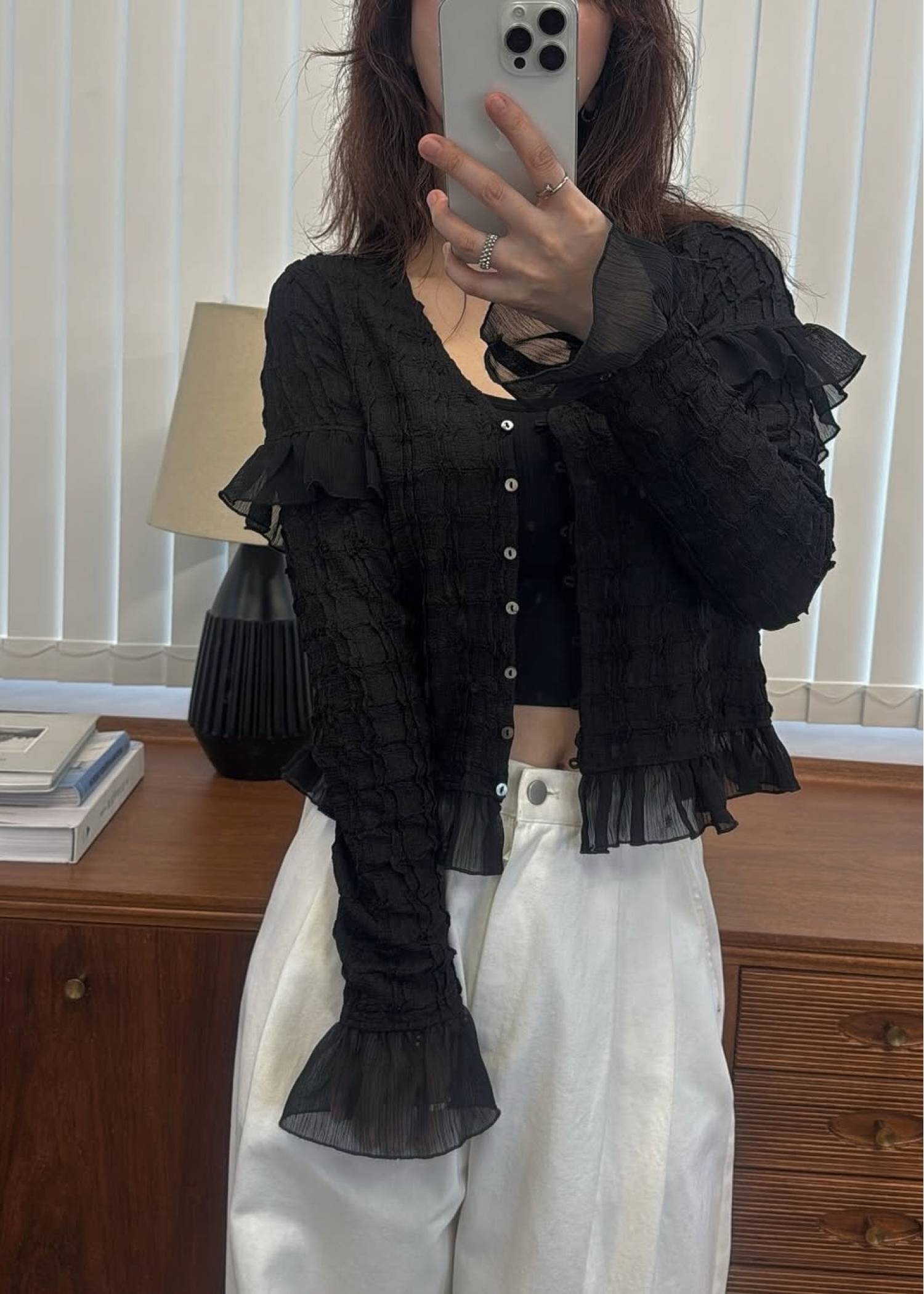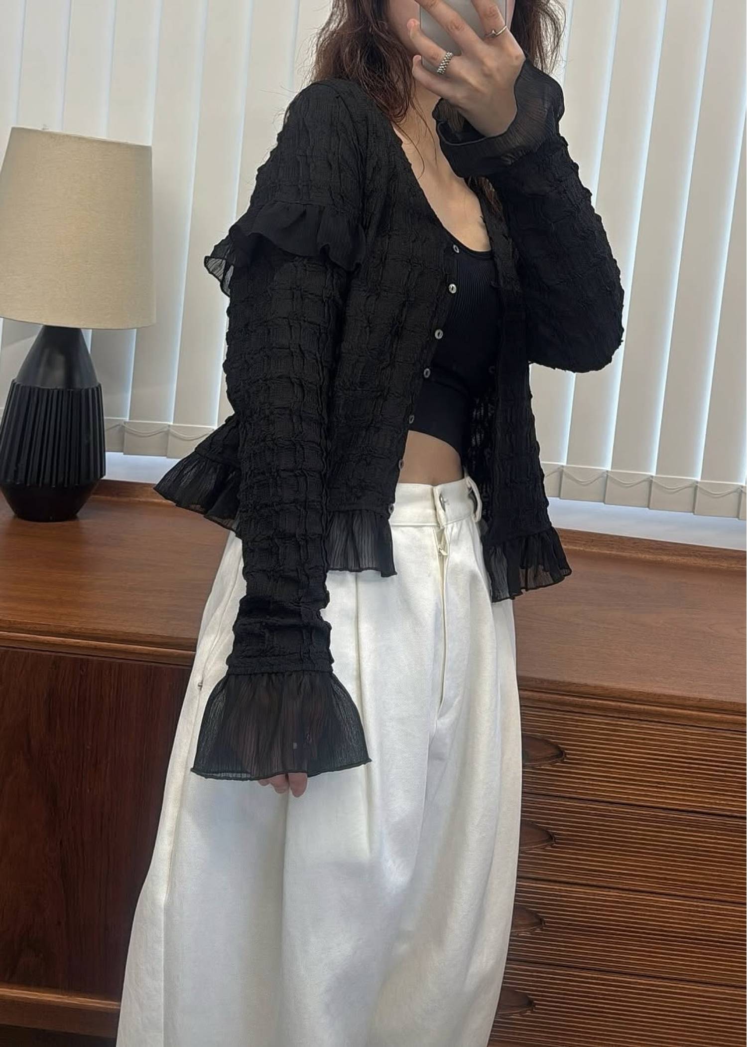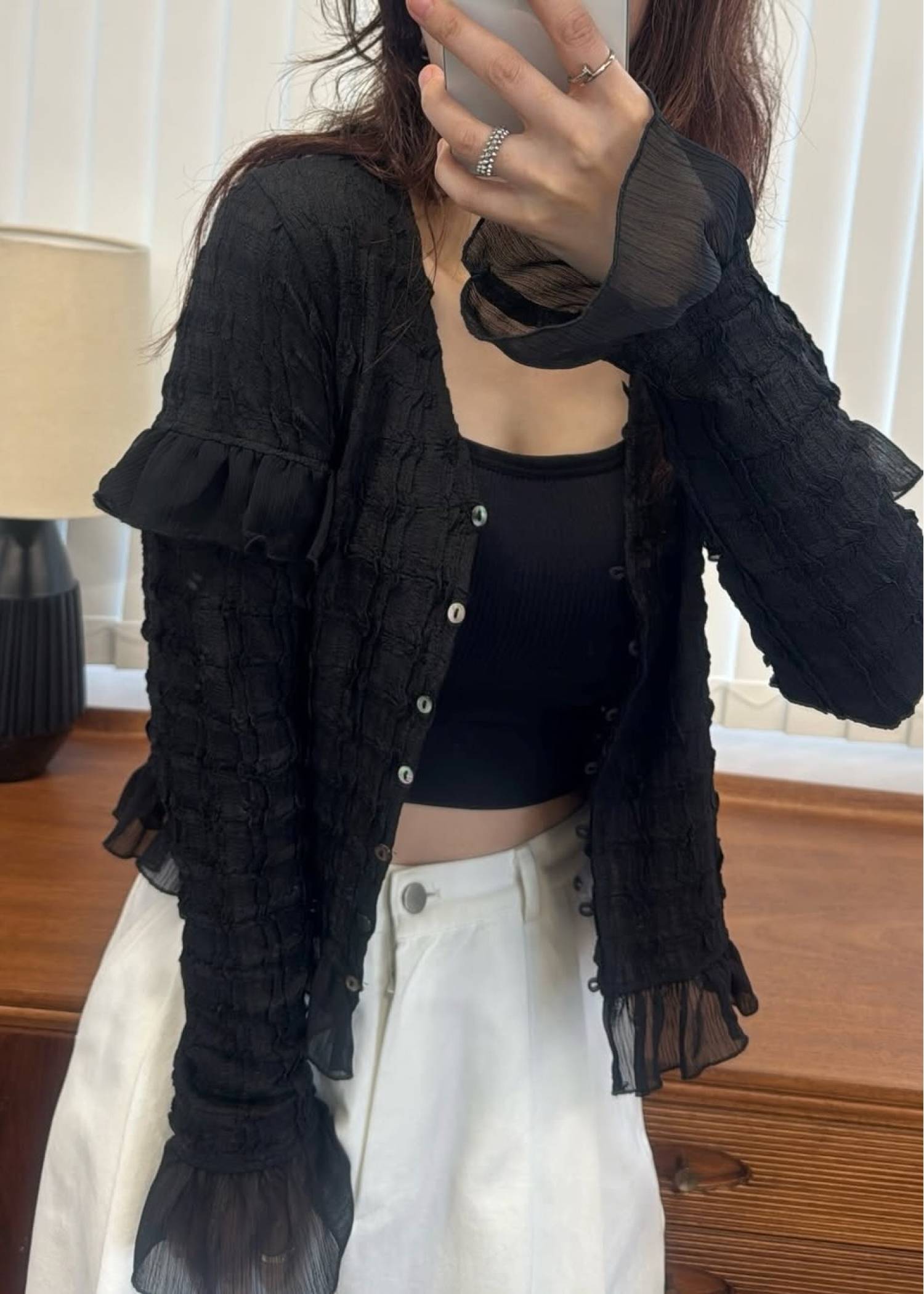 chiffon frill wave line shirring tops