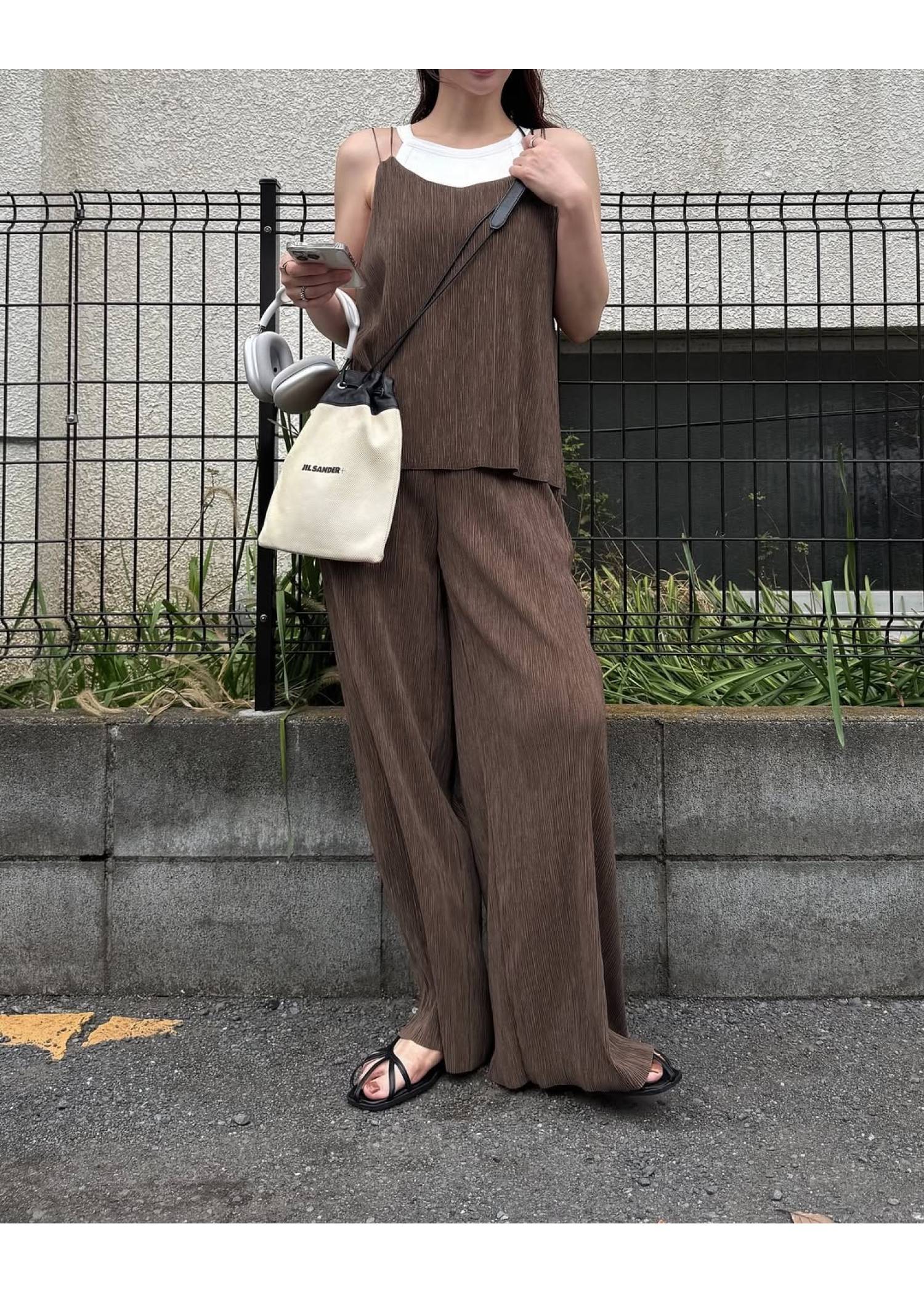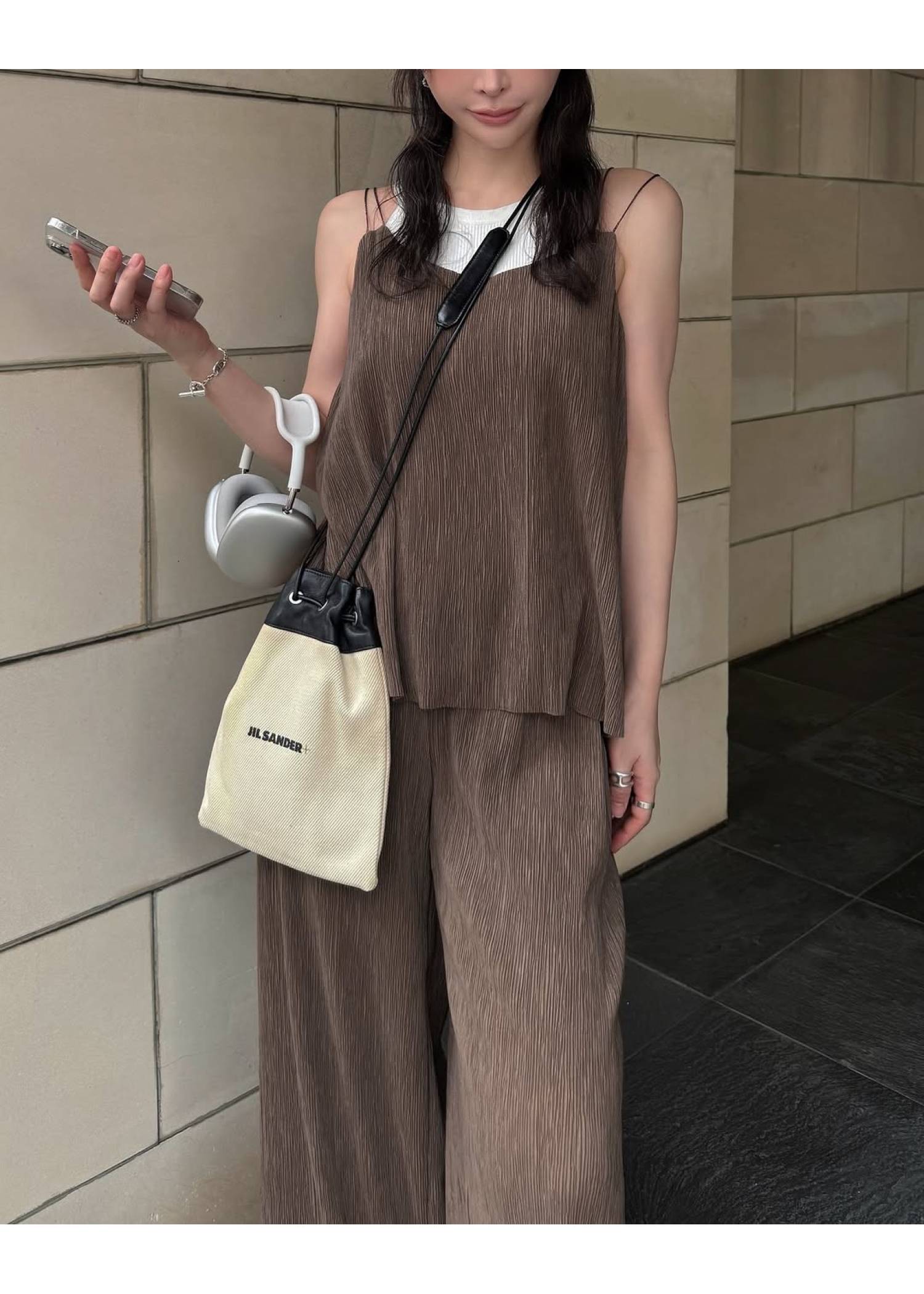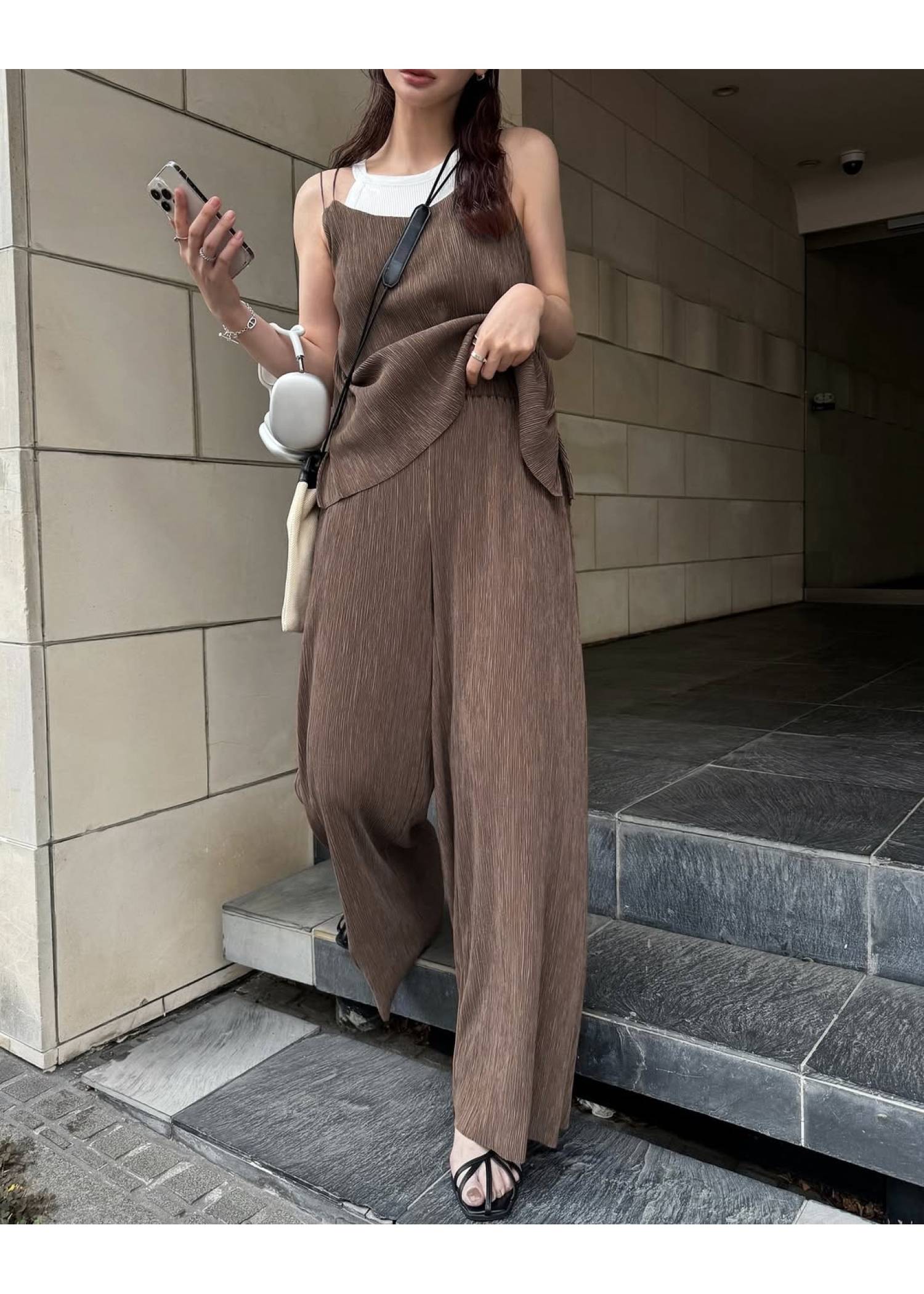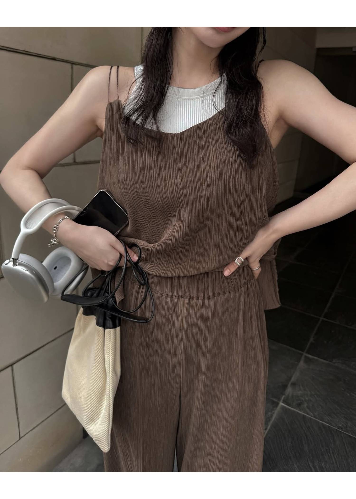 glitter cord flare pleats camisole
