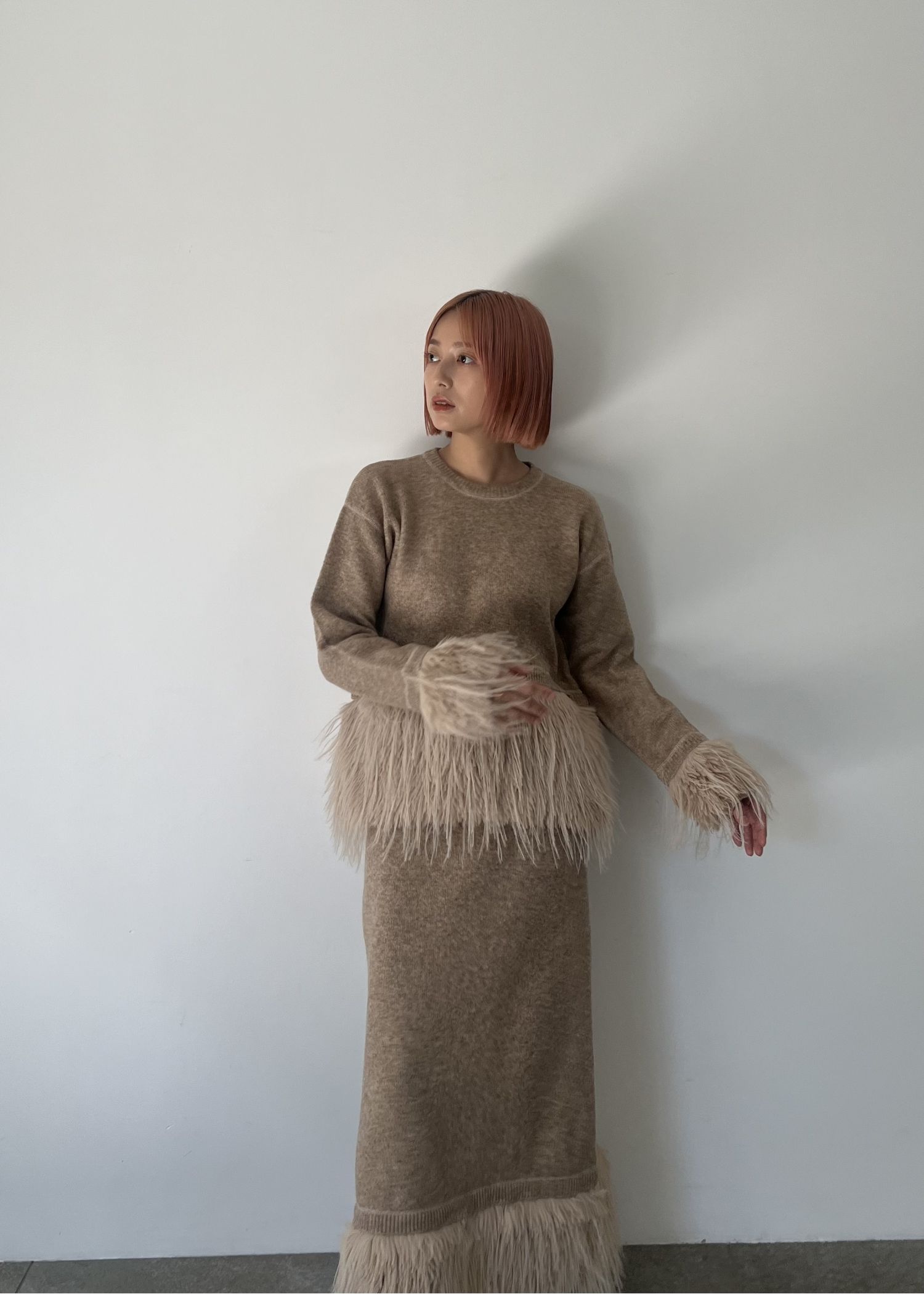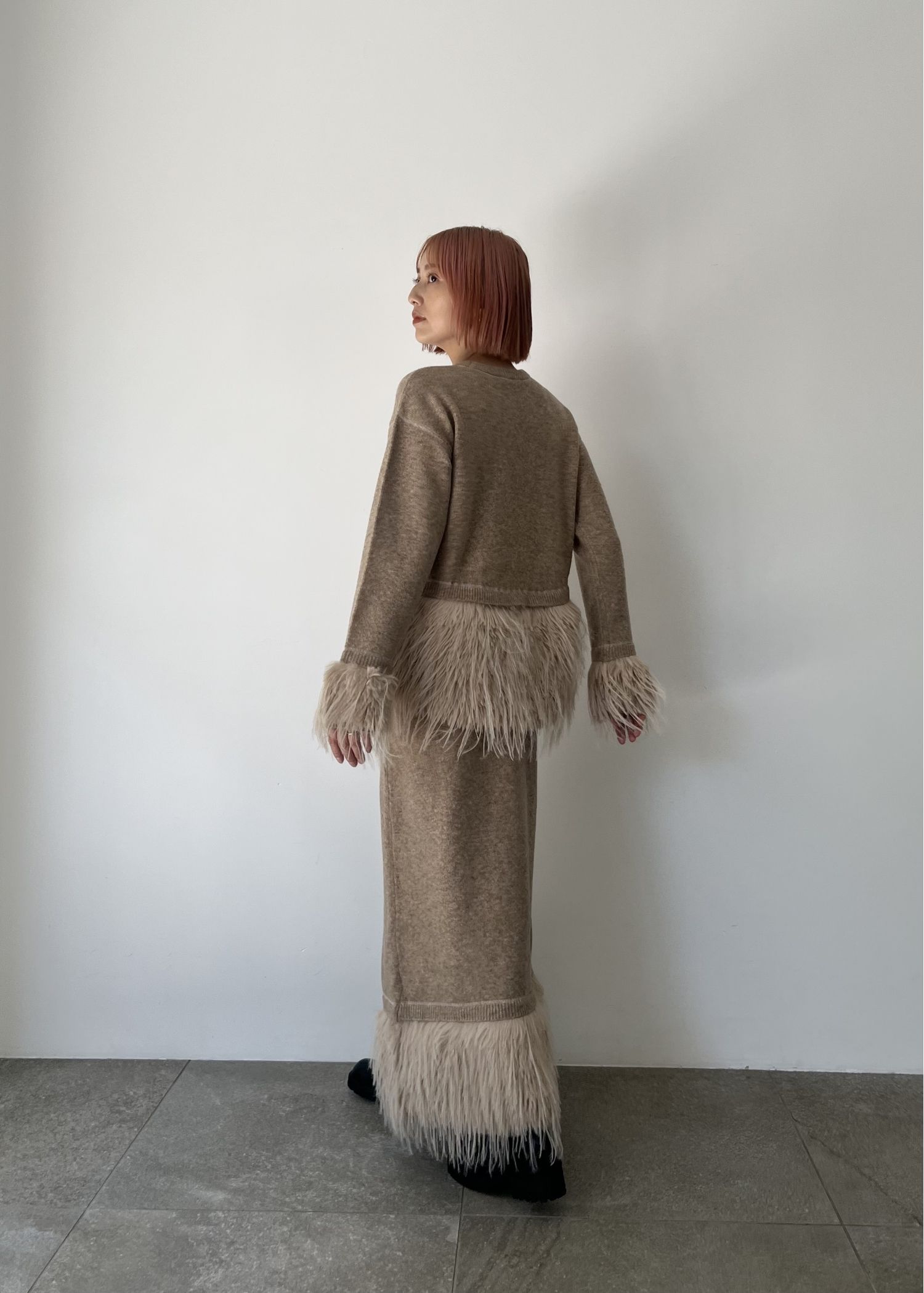 partial fur gently narrow knit SK