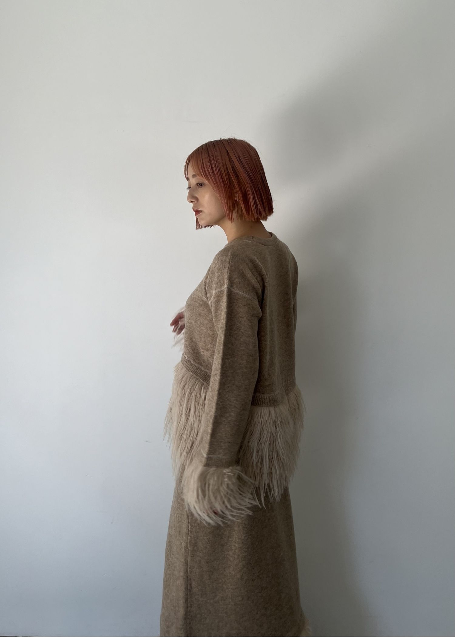 round hem partial fur gently knit