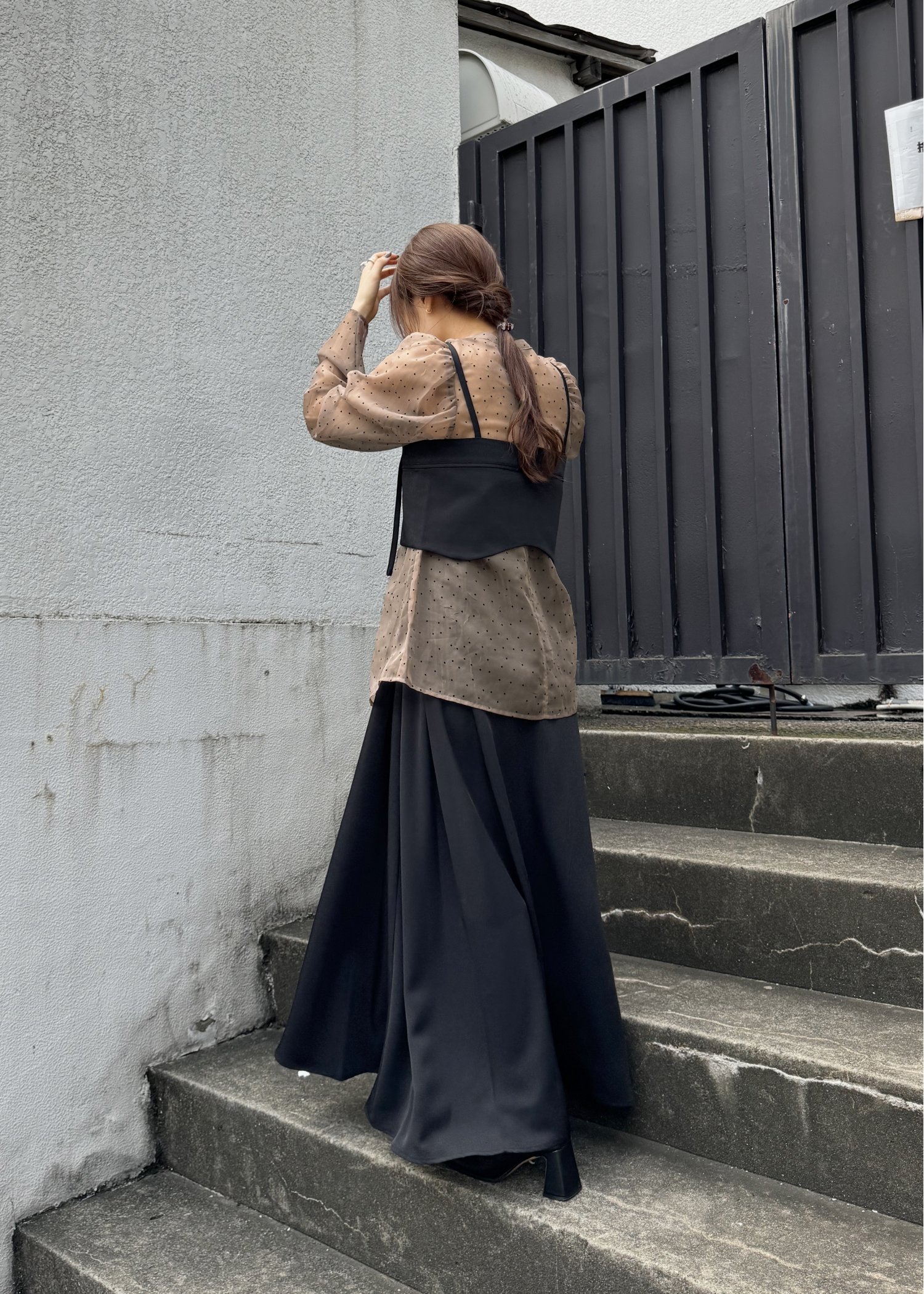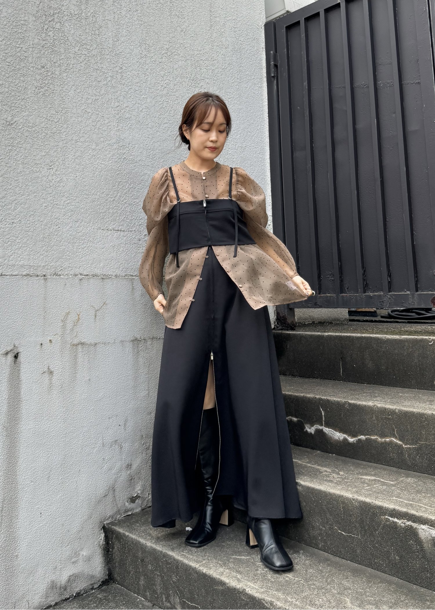 georgette bustier & side tuck skirt SET UP