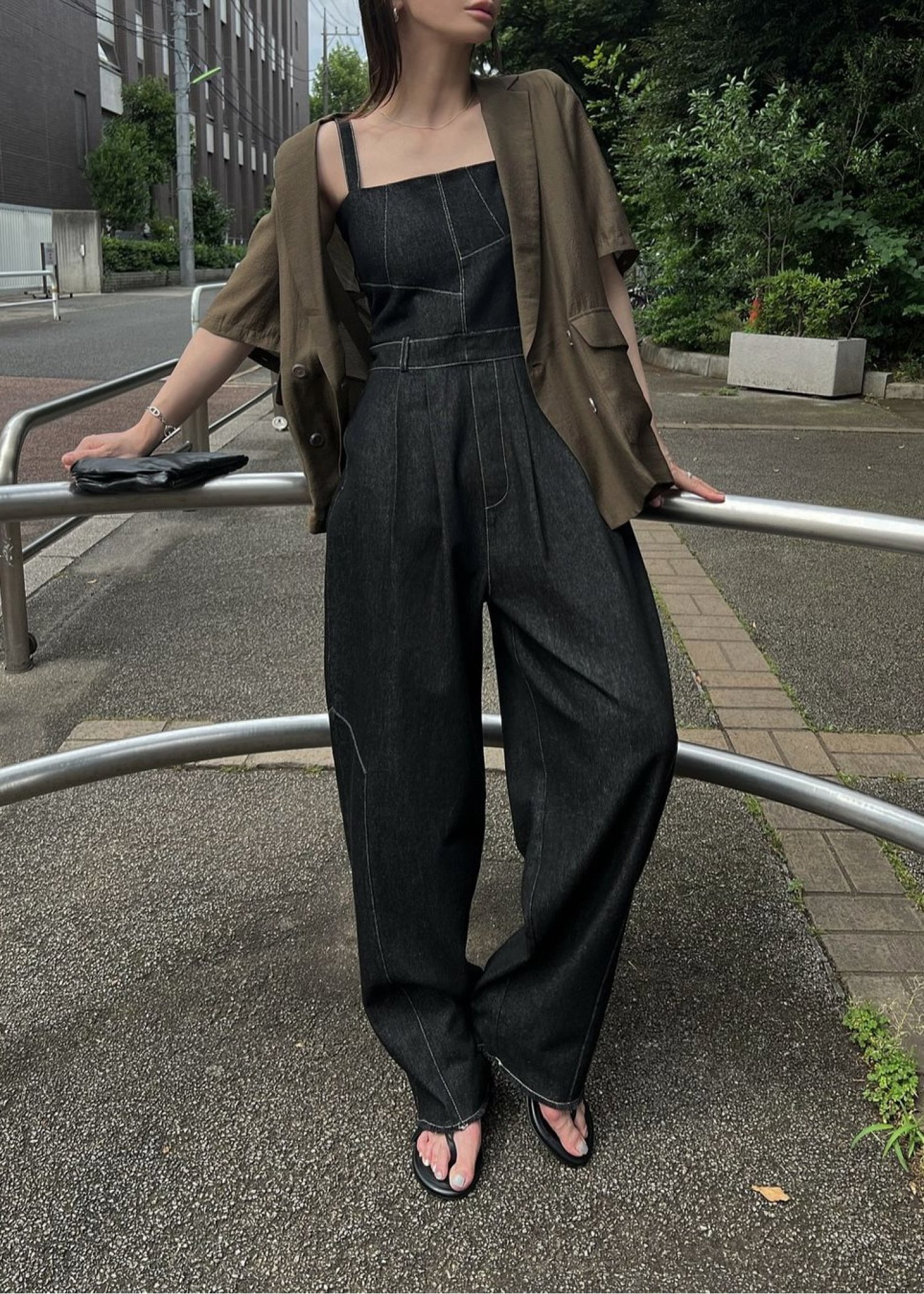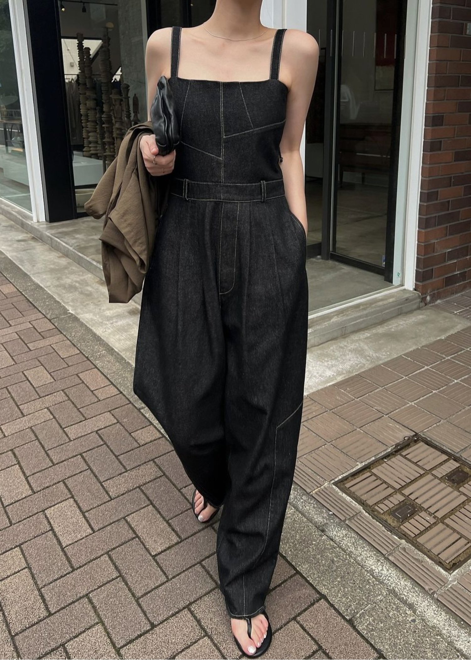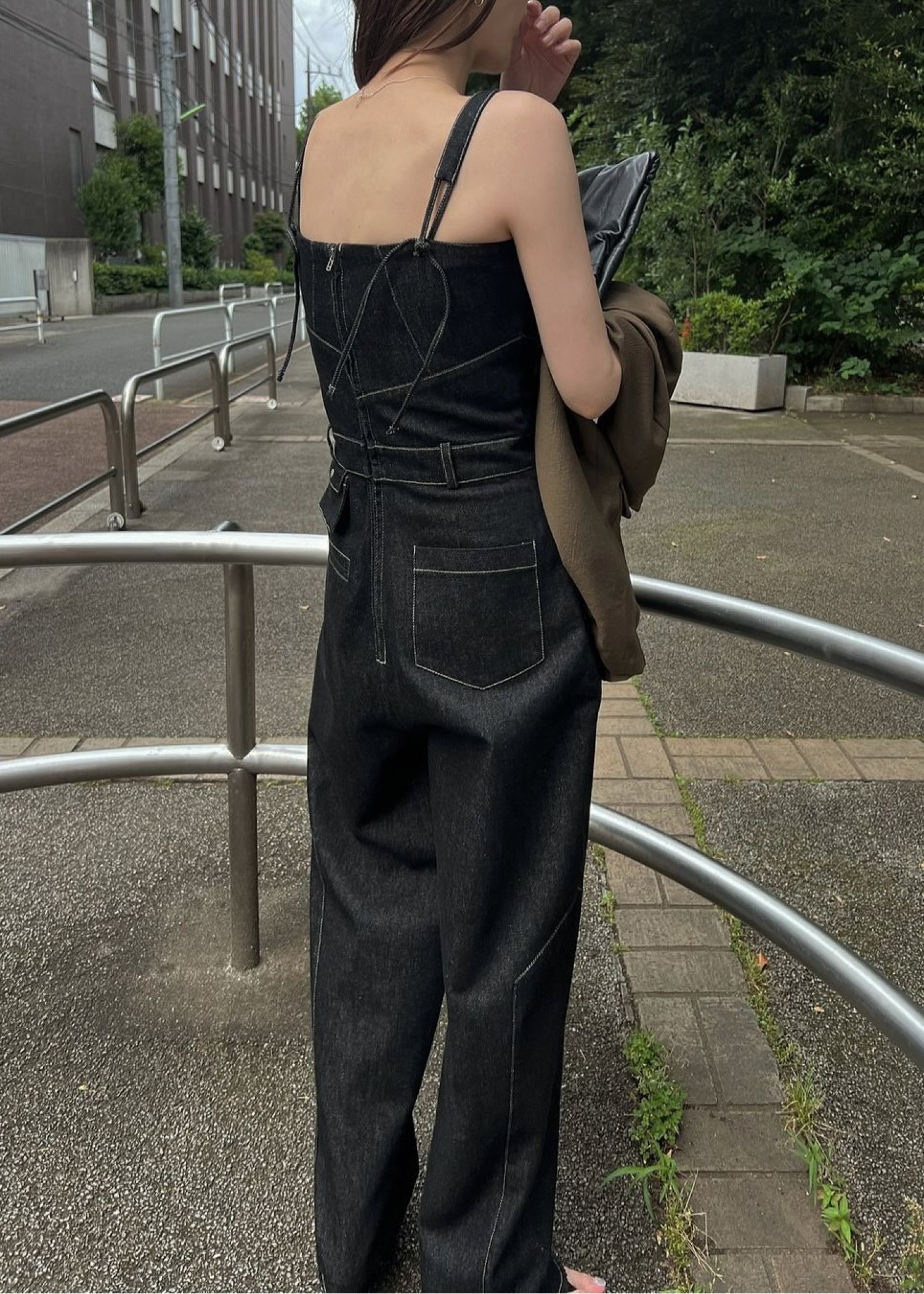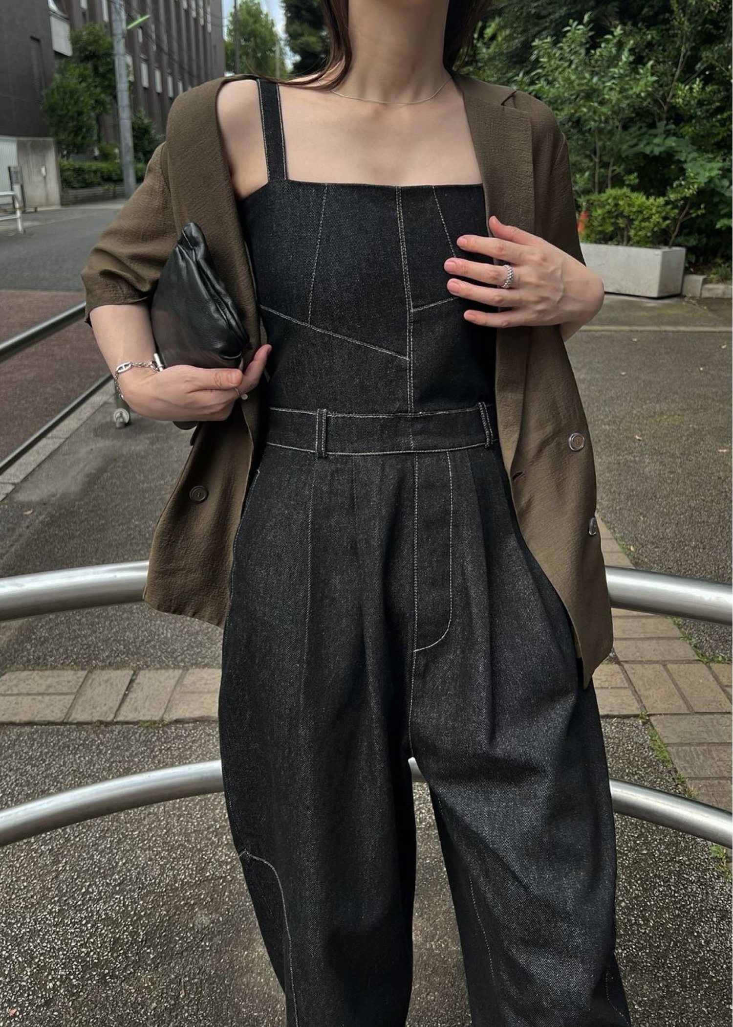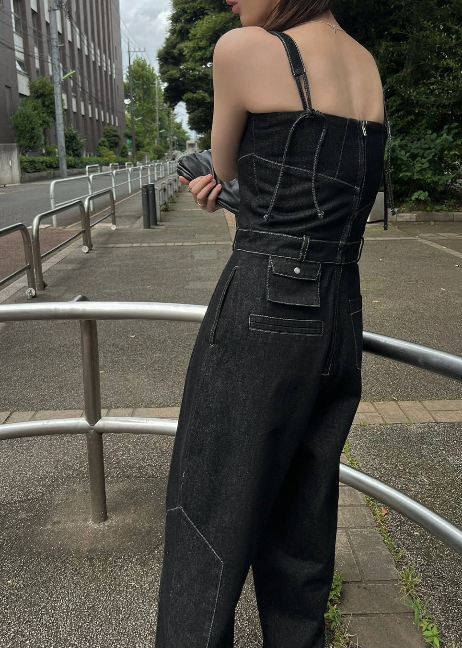 asymmetry patchwork denim all-in-one