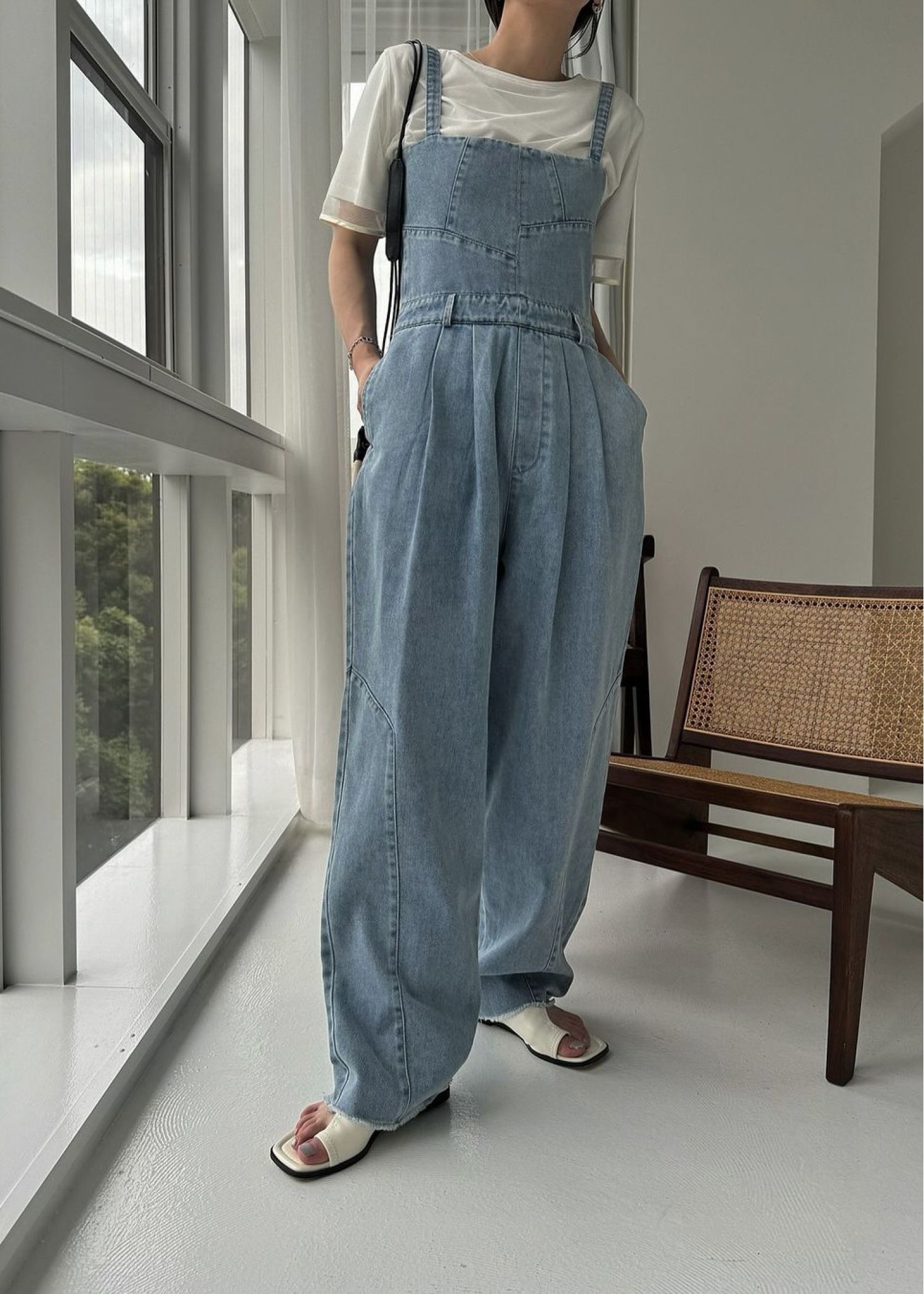 asymmetry patchwork denim all-in-one