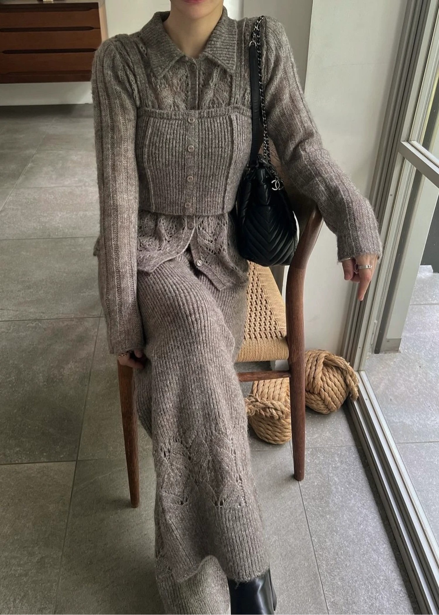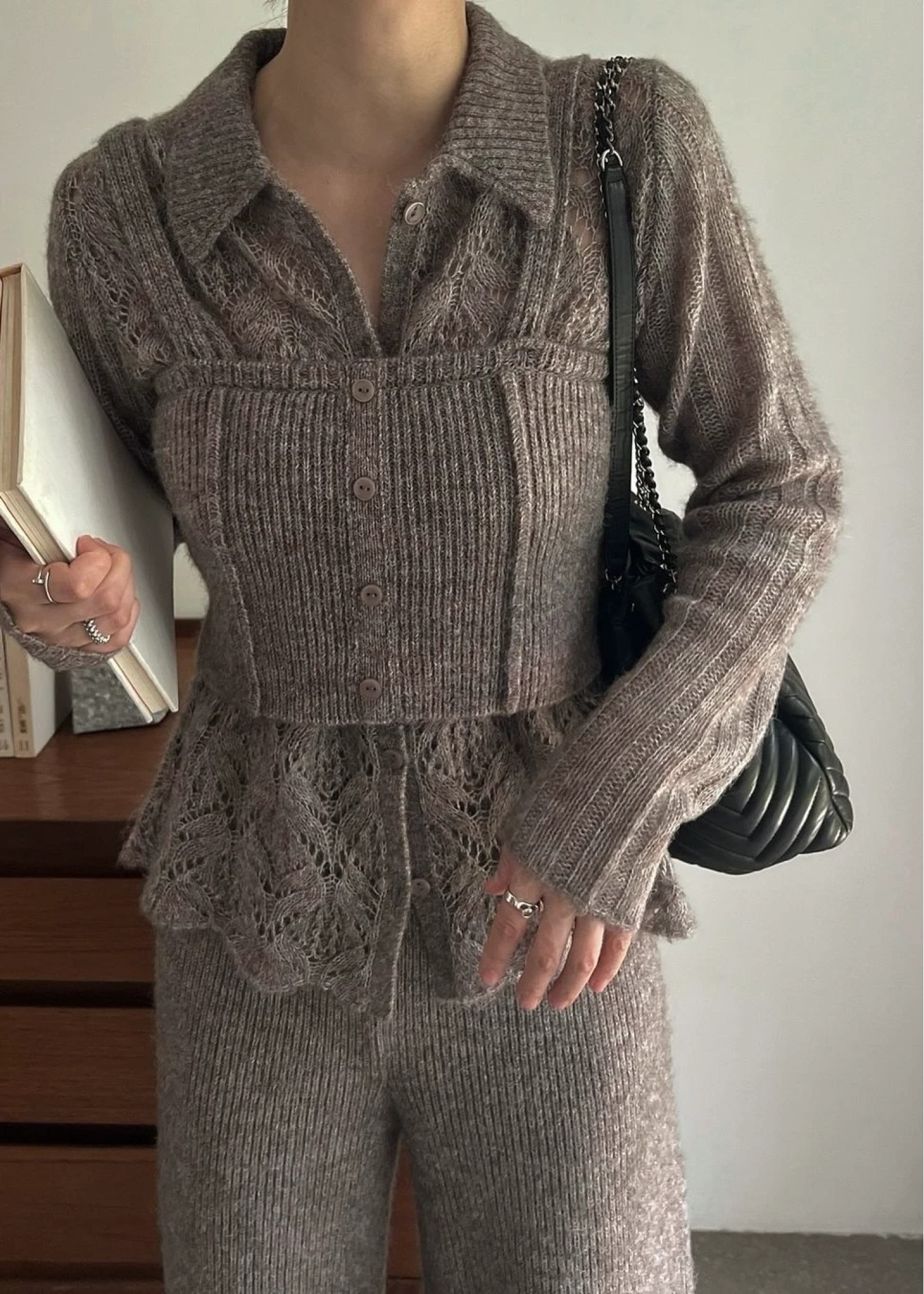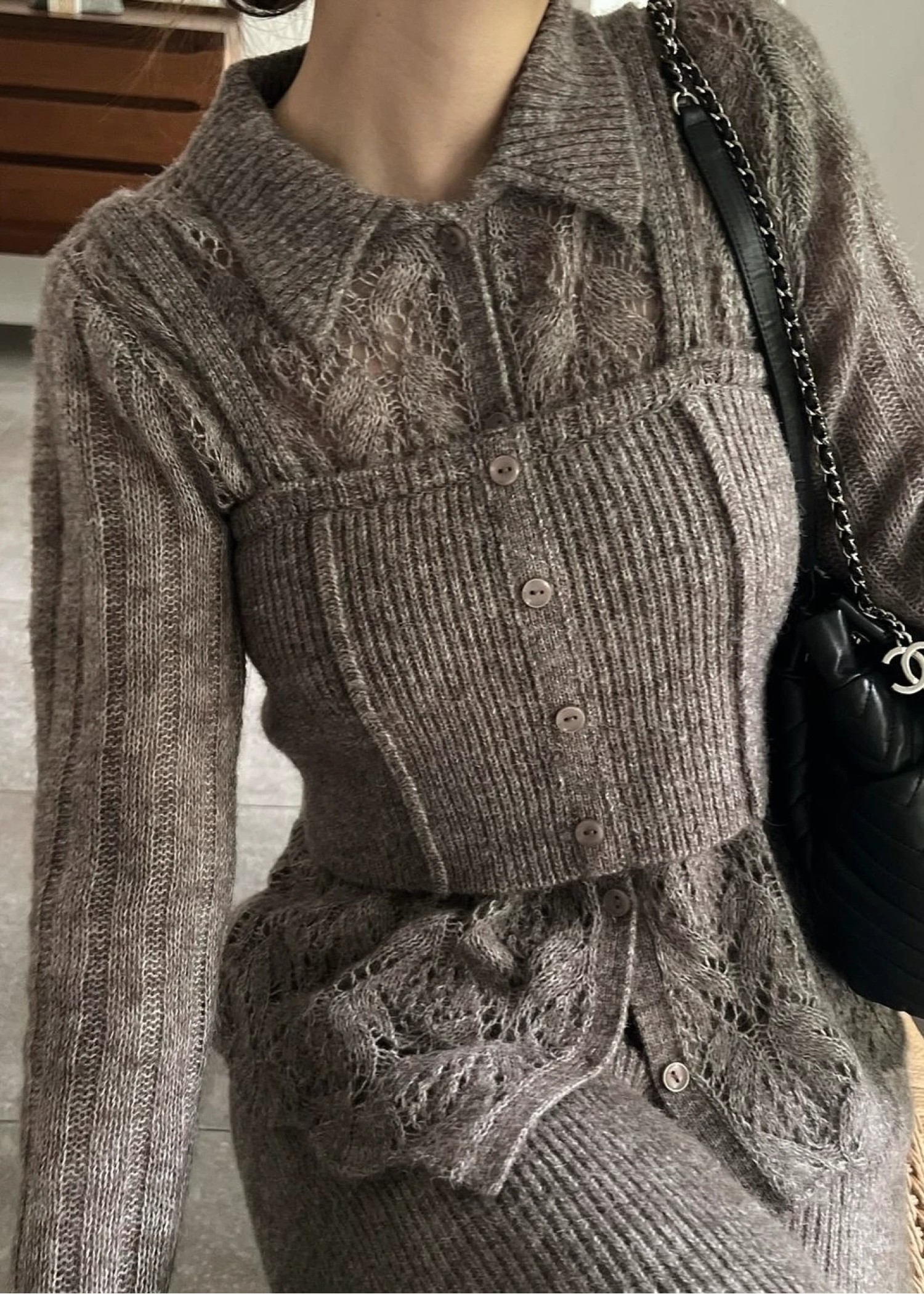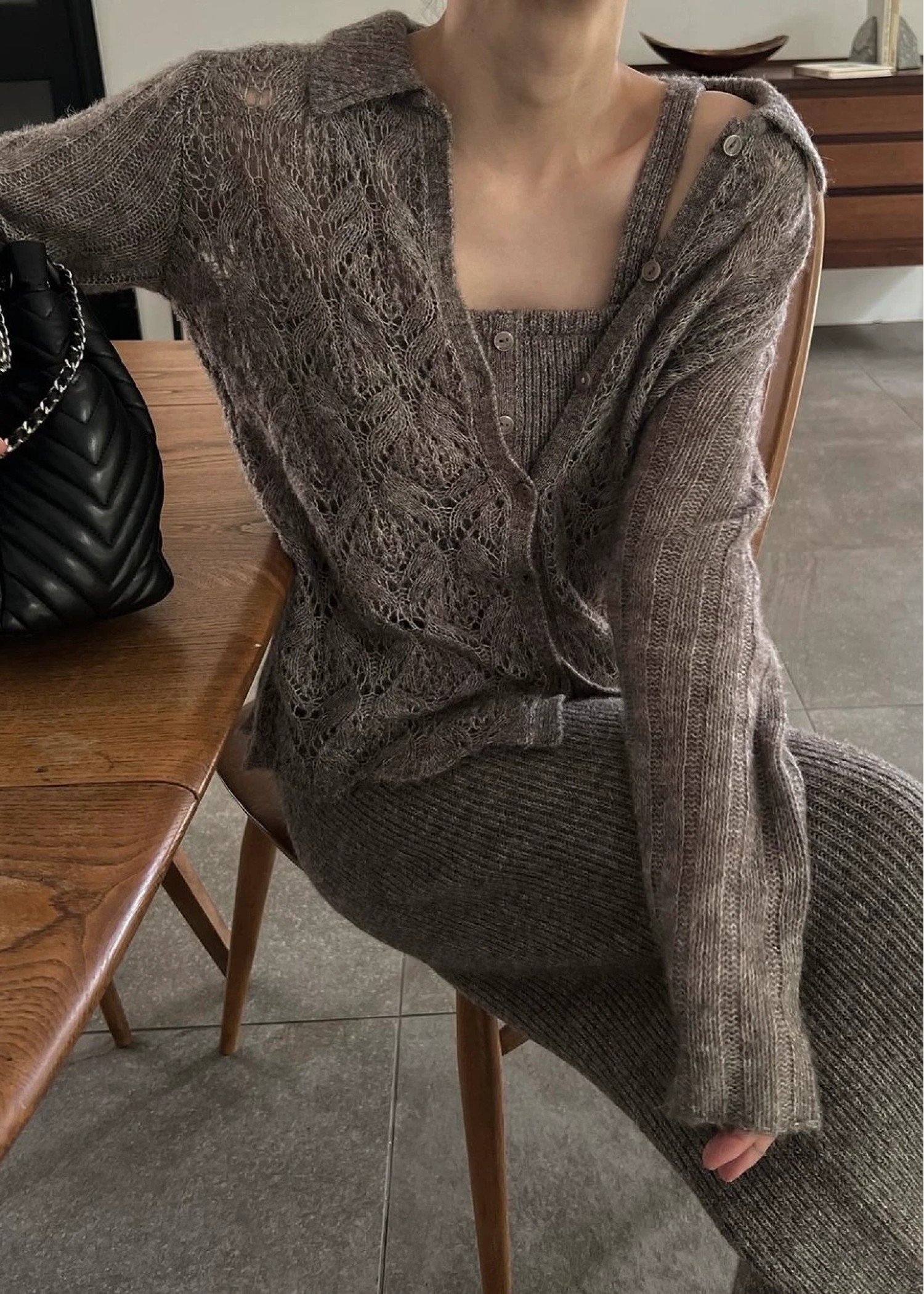switching hem sheer crochet knit PT