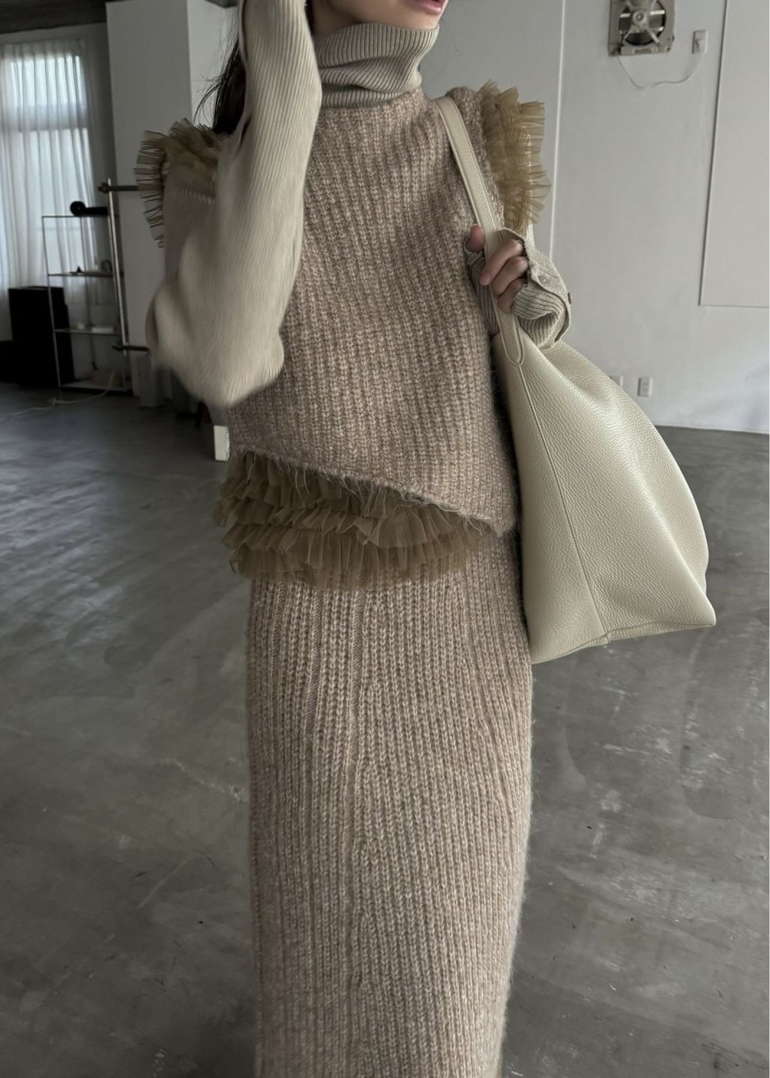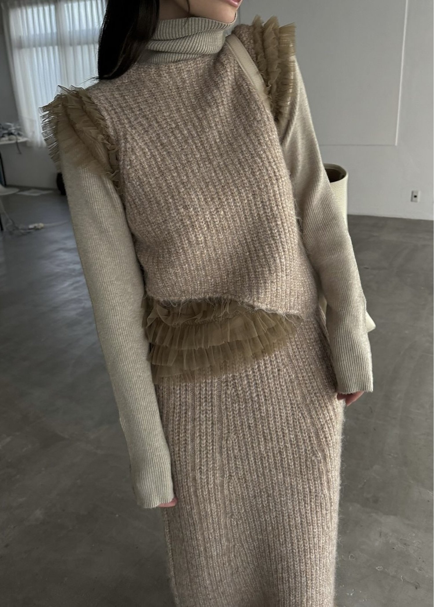 hem tulle frill meld knit SK