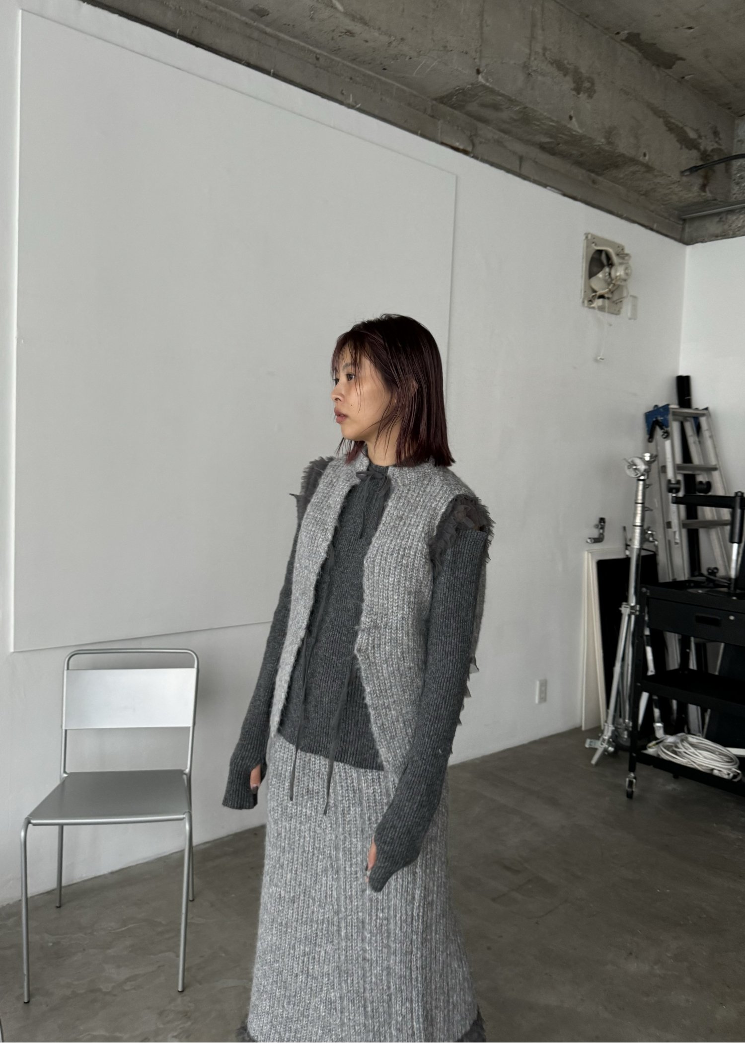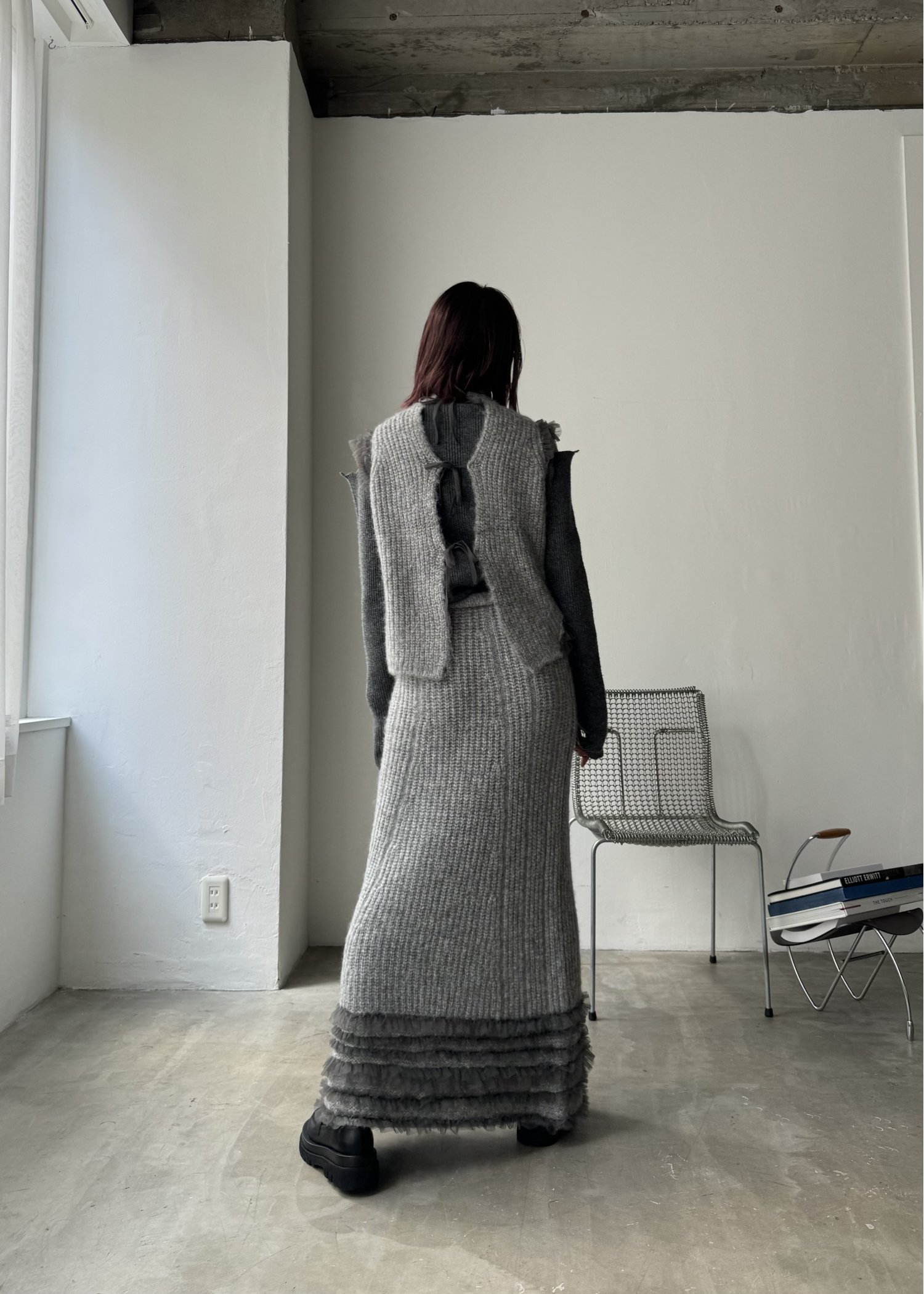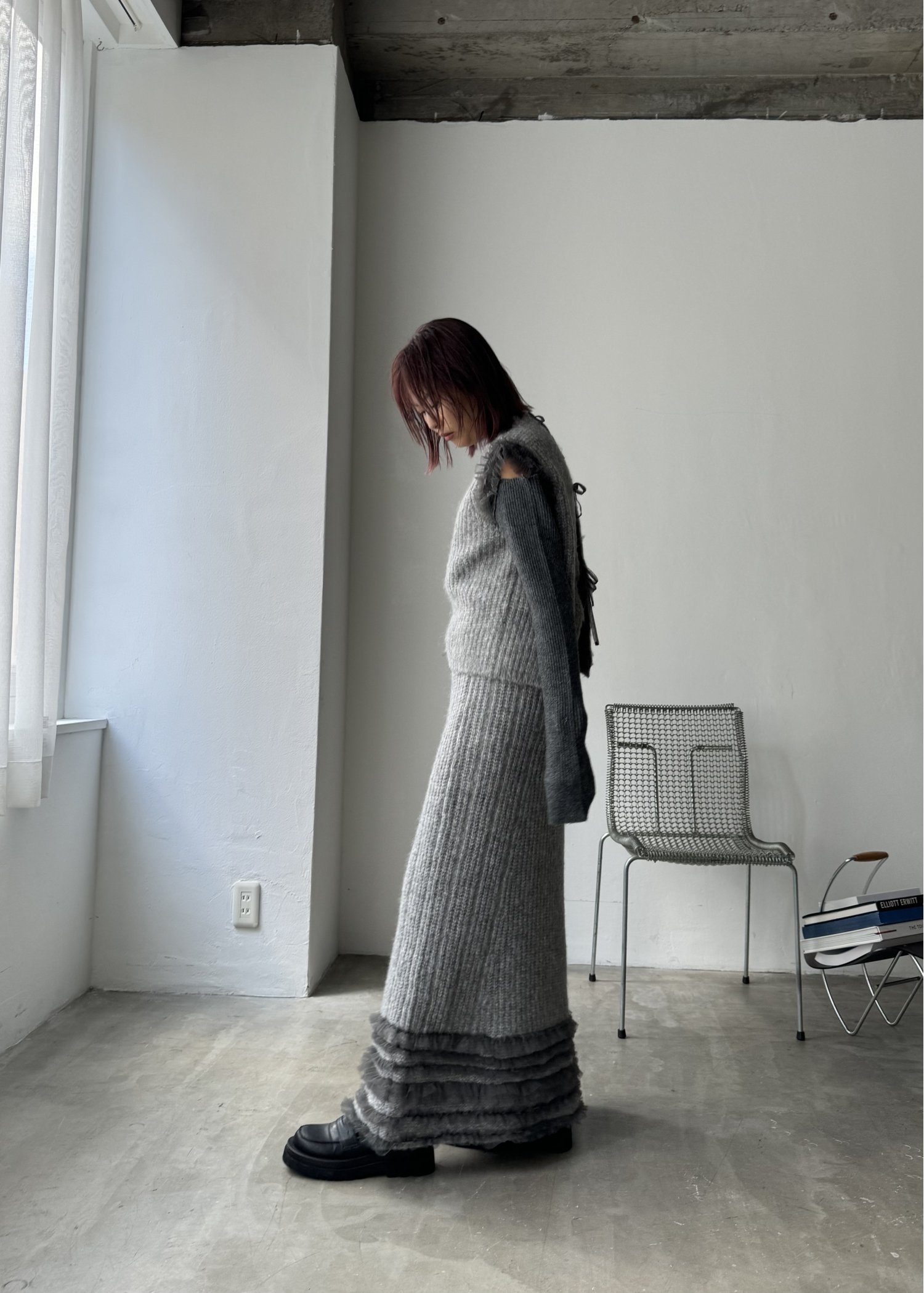 hem tulle frill meld knit SK
