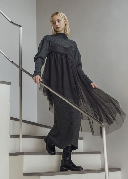 volume sleeve high neck rib OP