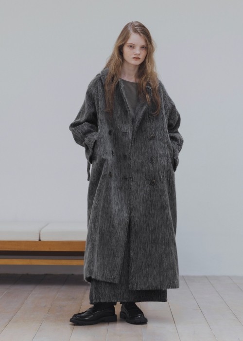 shaggy volume sleeve trench long coat