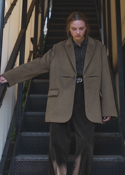 peaked lapel waist tuck oversize JK