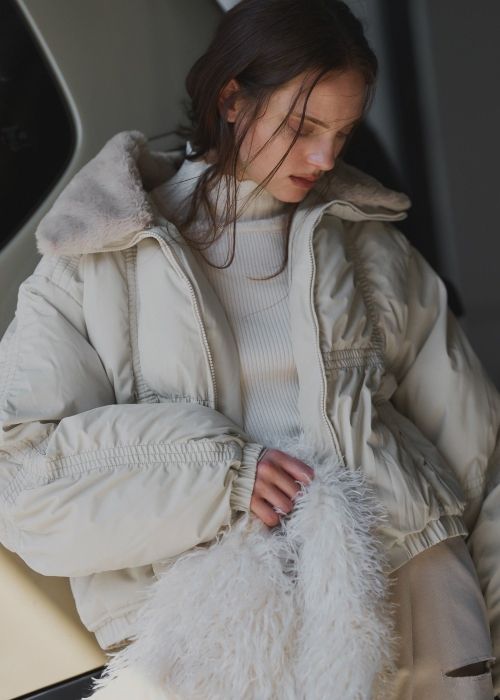 middle shaggy volume sleeve trench coat