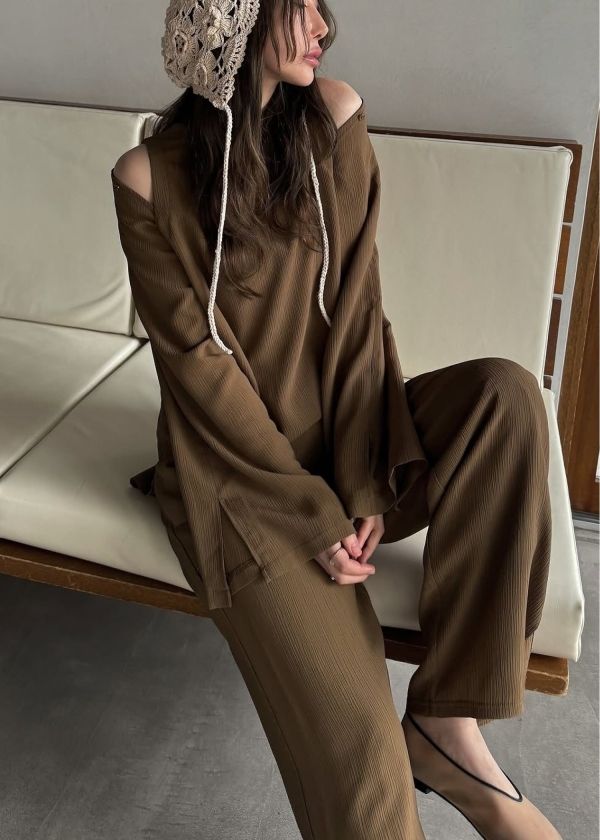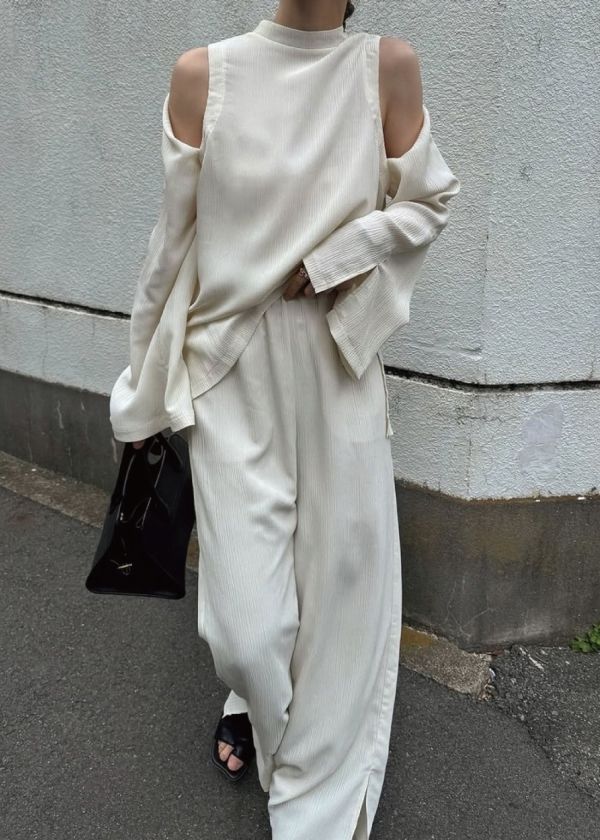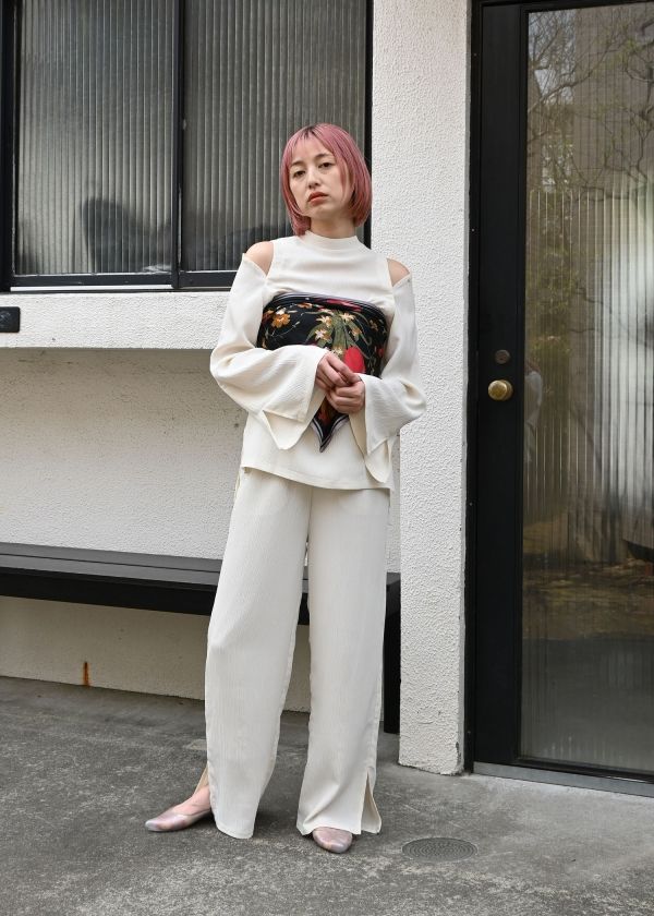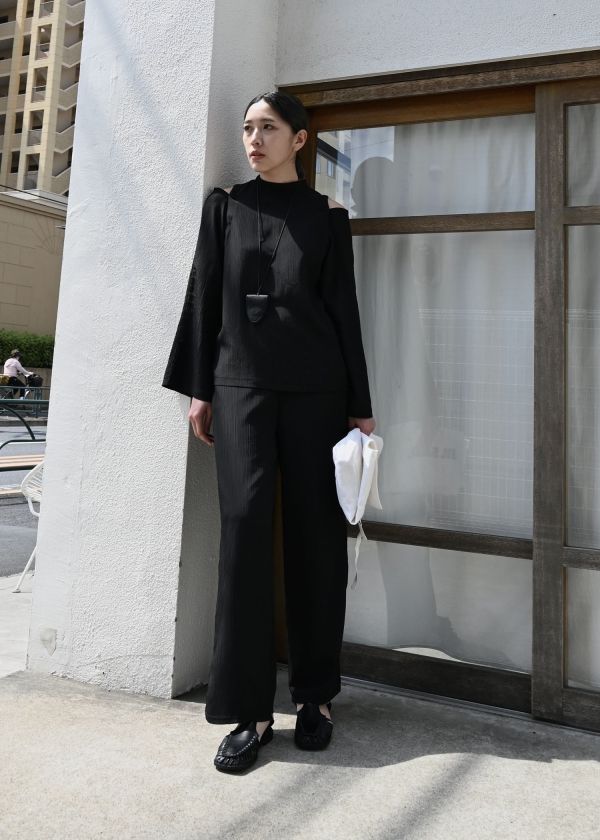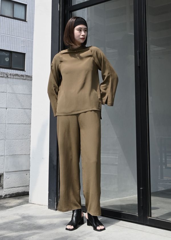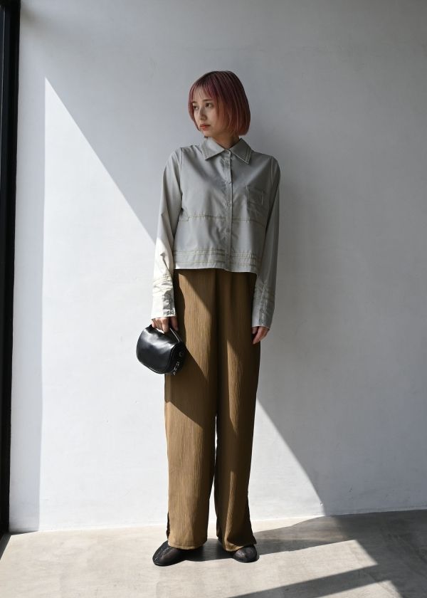 ・楊柳素材を使用した落ち感のあるリラックスパンツ
