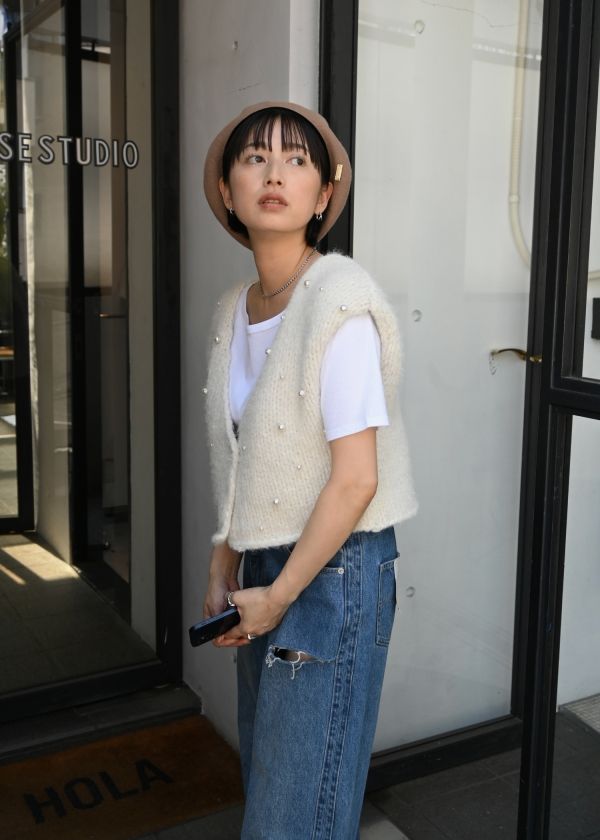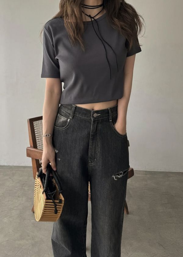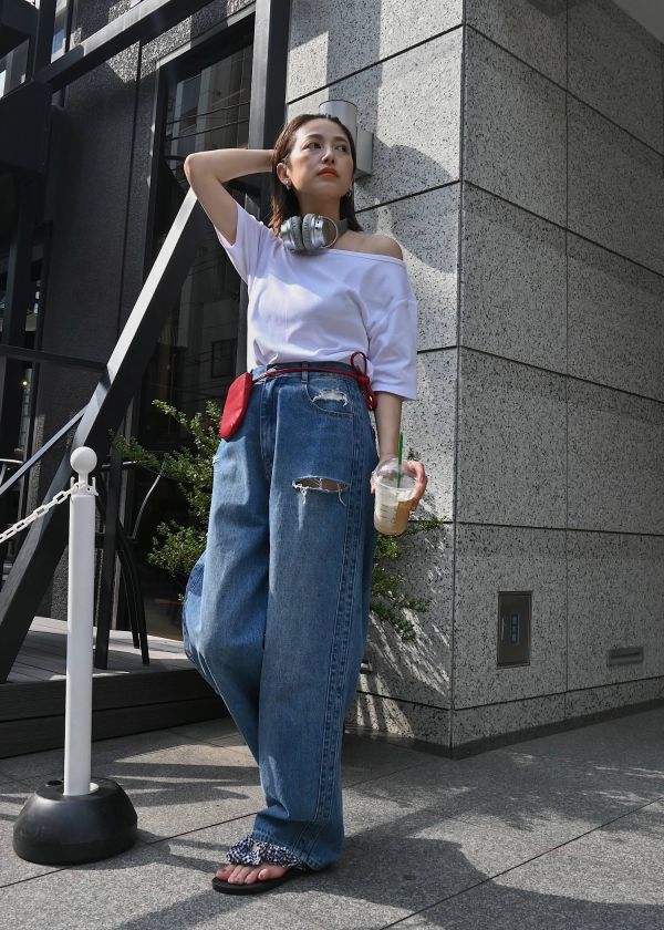 ・クラッシュ加工と切り込みで、よりカジュアル感をプラス