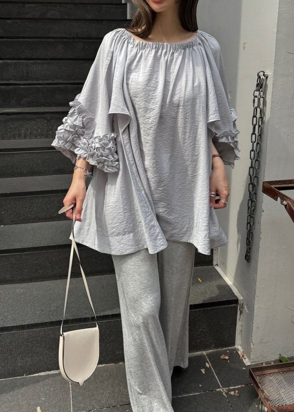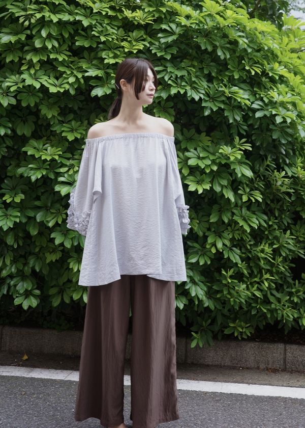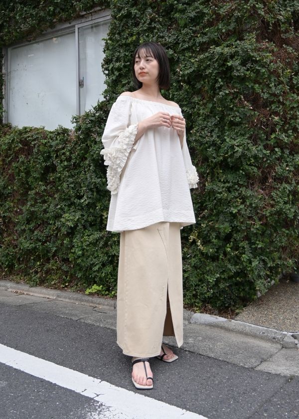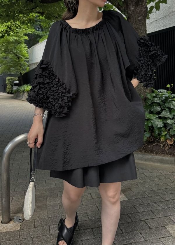 ・袖口ランダムフリルデザインのスリットスリーブチュニック